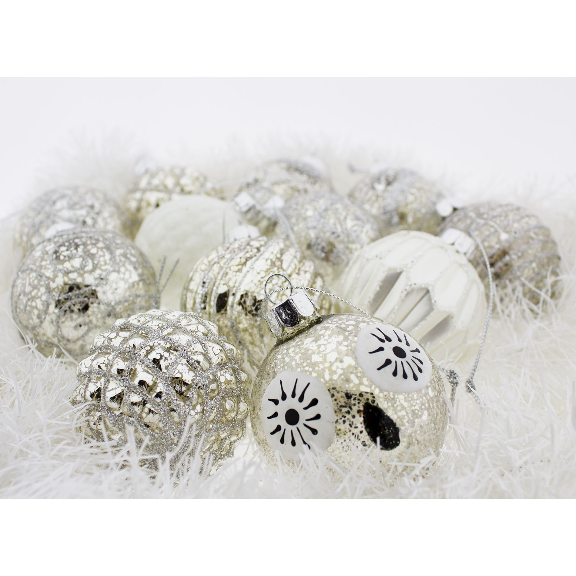 Hochwertiger Baumschmuck aus Glas in kunstvoller Ausführung für eine außergewöhnliches Ambiente in Ihrem schönen Zuhause. Die aufwendig gearbeiteten Weihnachtskugeln im Vintage-Look sind mit tollen Details und Ornamenten gearbeitet und werden so garantiert zum Eyecatcher.