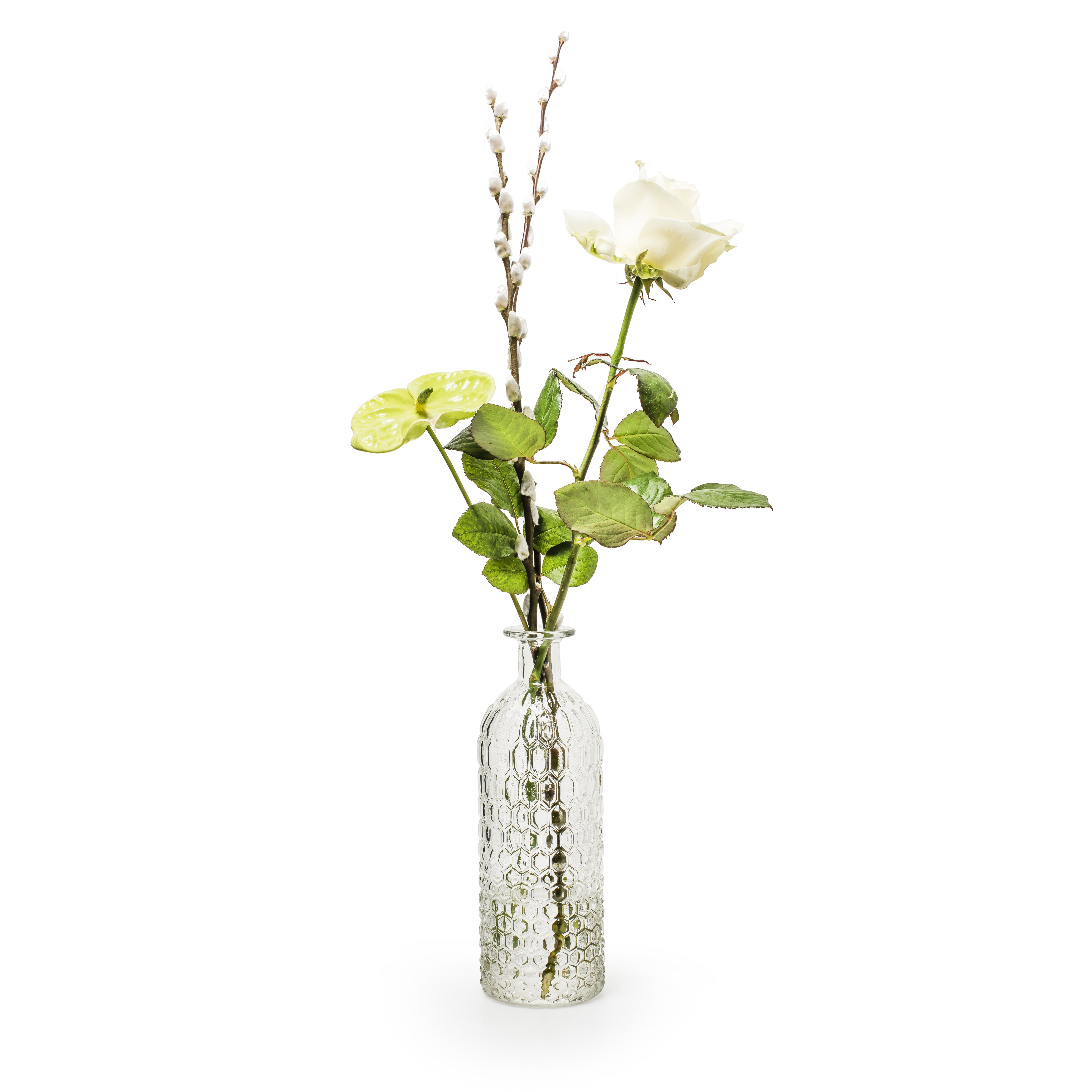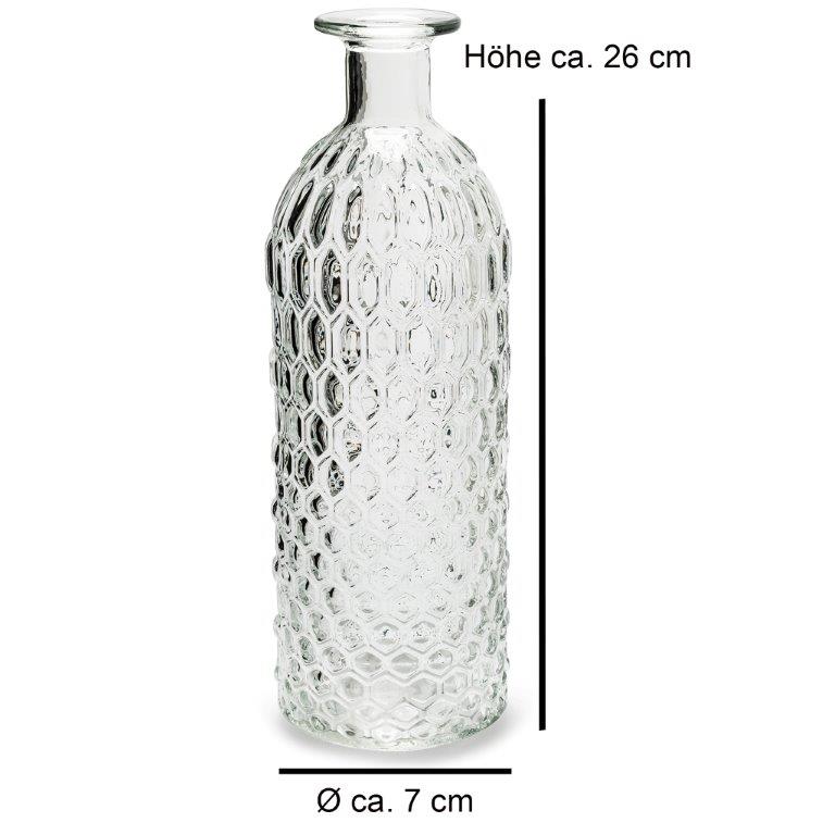 Unbeschreiblich schöne Vasen aus Glas im Vintage-Look mit herrlich schimmernder Glasmusterung, stilsicher und mondän für die Tischdeko. Ideal als einzigartige Vase bei Hochzeiten und vielen anderen Feierlichkeiten. Auch als Dekoflasche ein bezaubernder Blickfang.