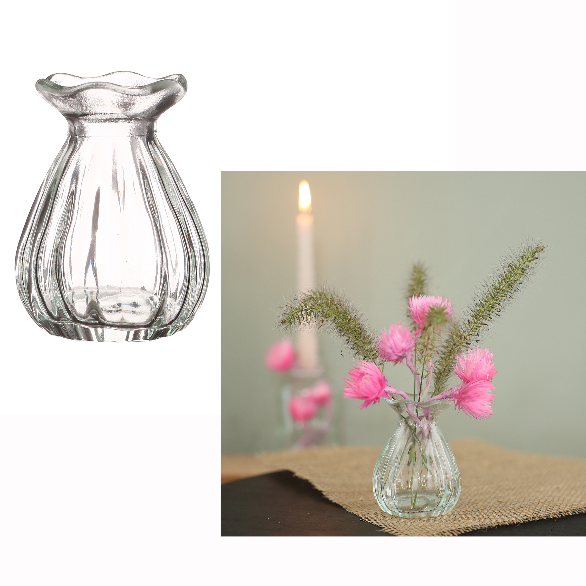 Diese stilvollen Glasvasen sind perfekt für eine schöne Tischdekoration. Die kleinen Vasen sind in verschiedenen Formen und Größen erhältlich, so dass Sie die richtige Blumenvase für Ihren persönlichen Geschmack wählen können. Alle Vasen sind formvollendet in ihrer Struktur, so daß Sie jede festliche Tafel schmücken können. Mit Ihren verschiedenen Formen und Größen sind sie ideal für Hochzeit, Geburtstag, Kommunion, Feiern oder jede andere Gelegenheit. So schaffen Sie im Handumdrehen eine schöne Atmosphäre im Vintage-Look.