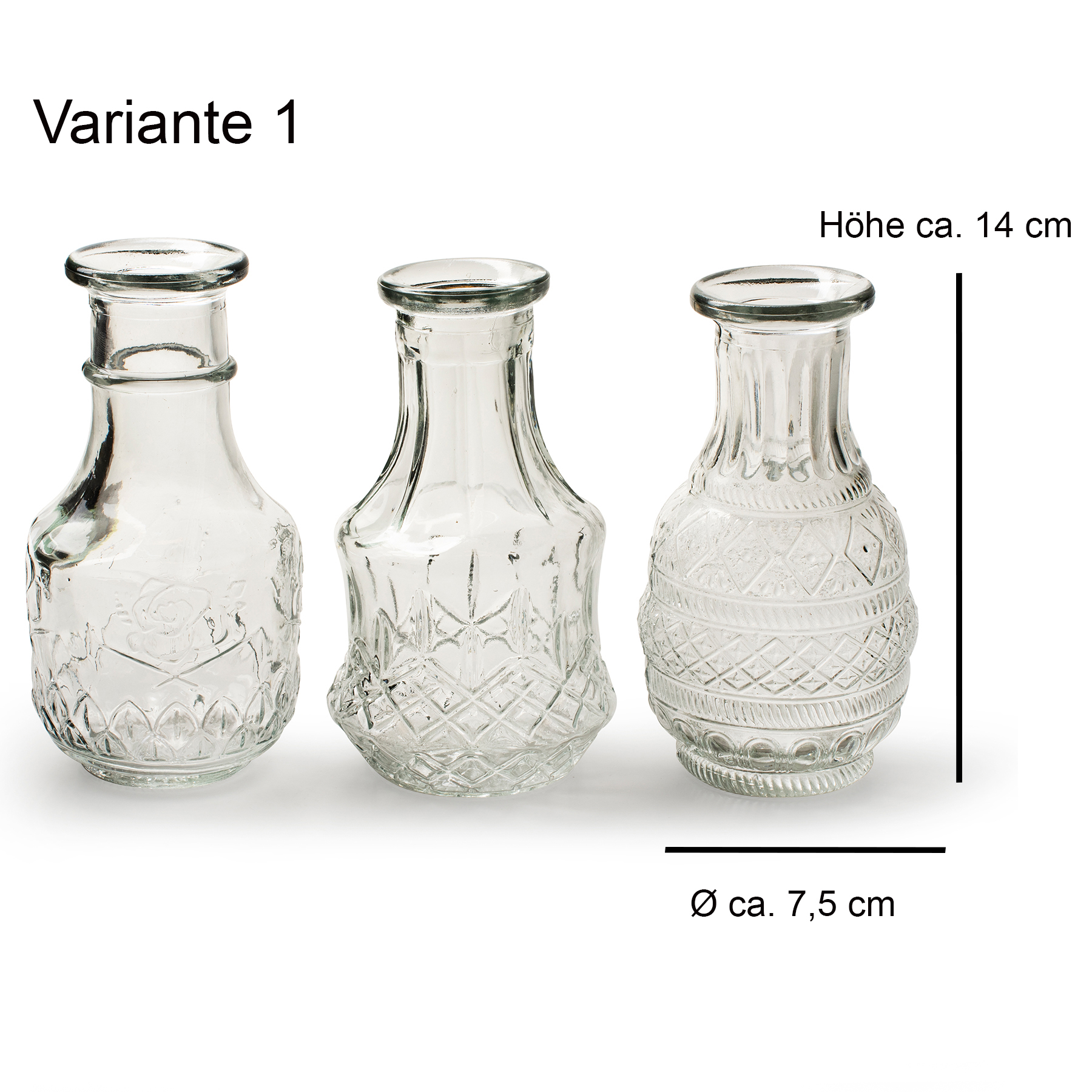 Produktinformationen "12 x kleine Vasen aus Glas Vintage in zauberhaften Designs"
