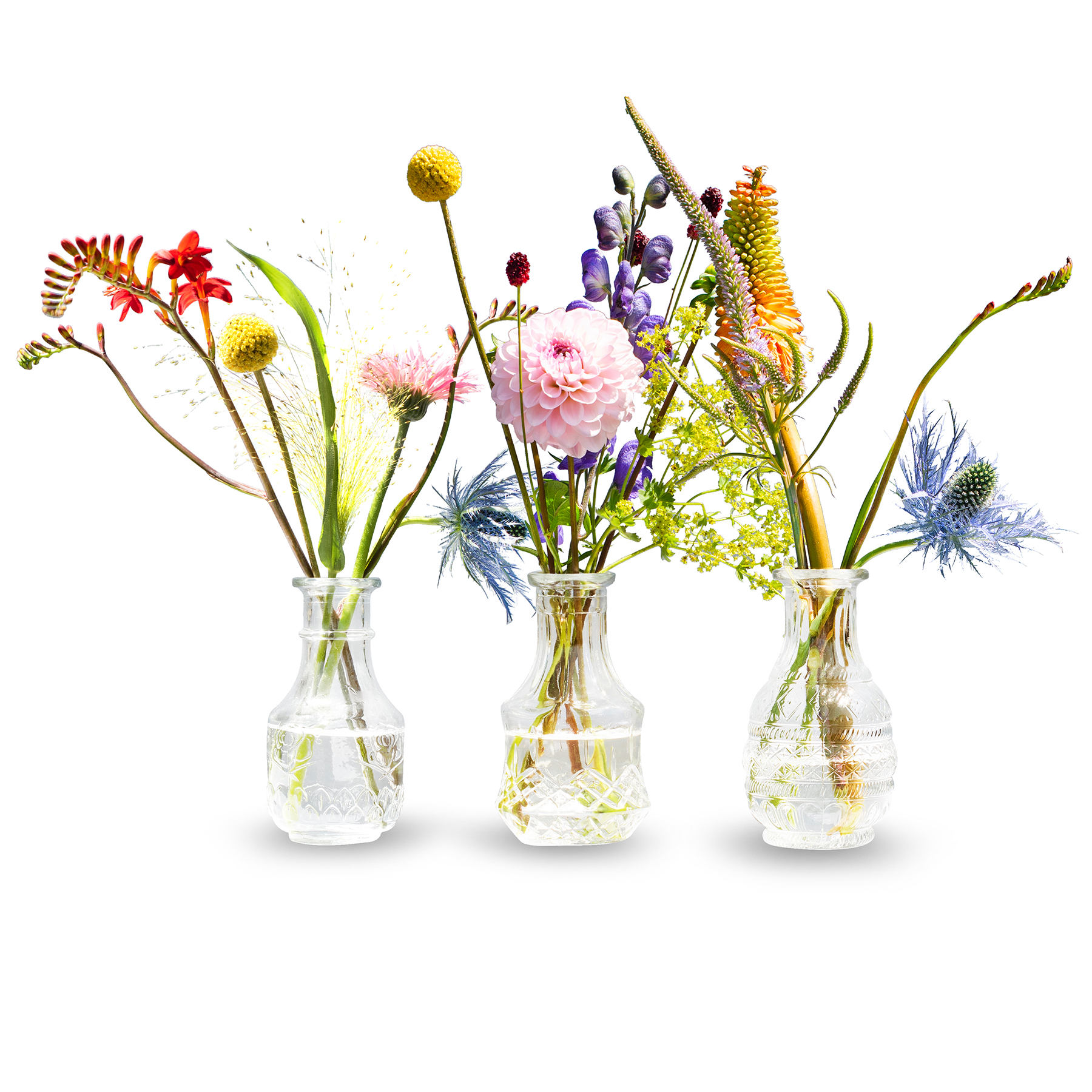 12 x kleine Vasen aus Glas Vintage in zauberhaften Designs