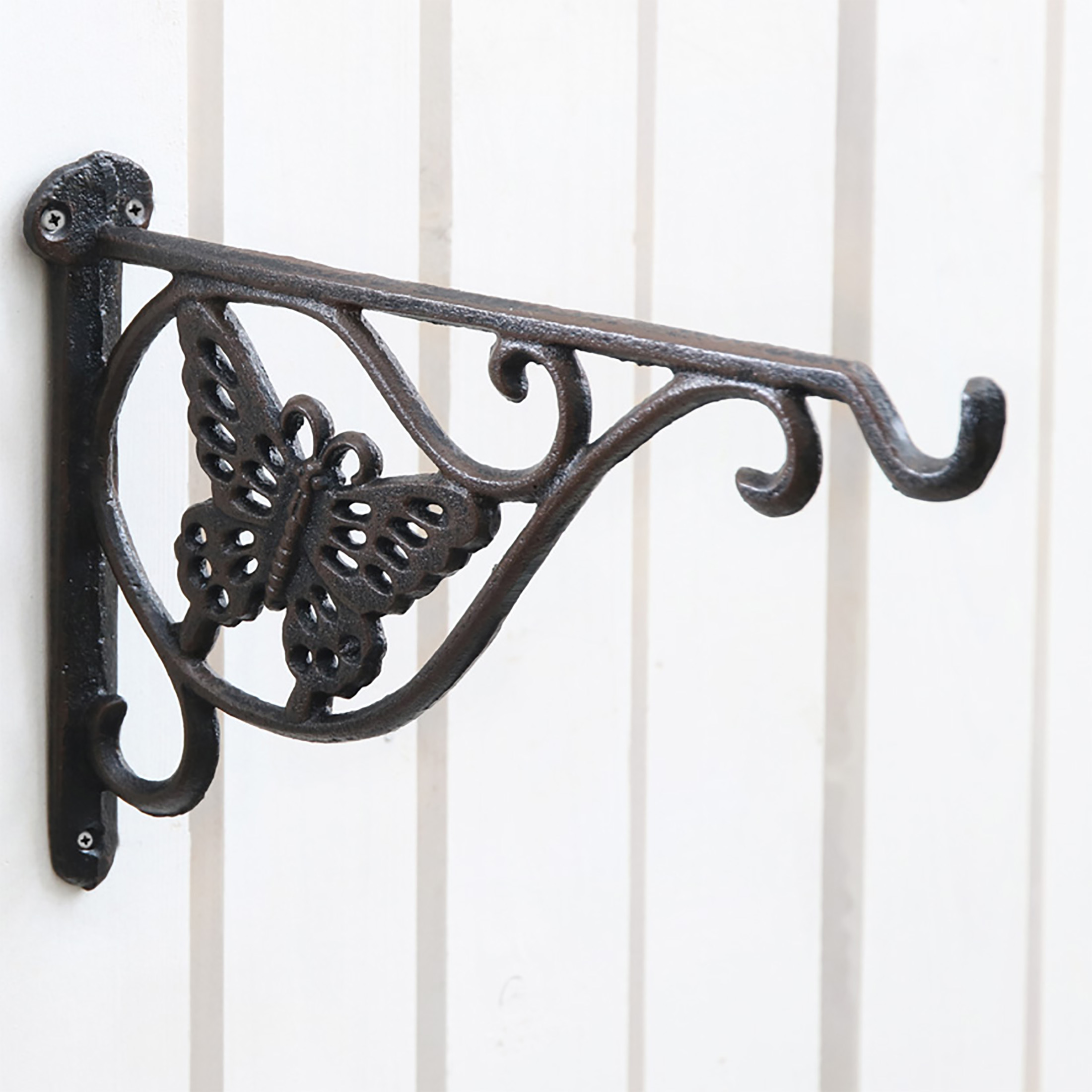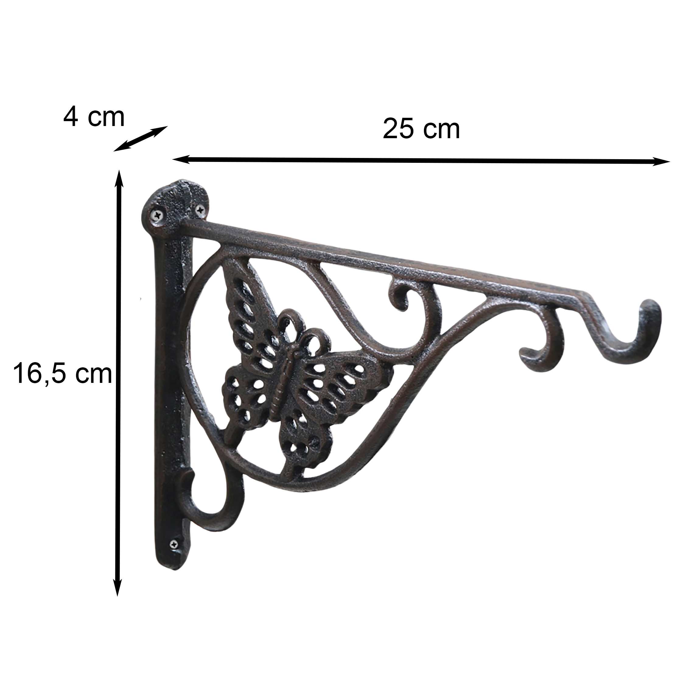 Wenn Sie auf der Suche nach stilvollen Regalhalterungen sind, die nicht nur funktional sind, sondern auch als Blickfang dienen sollen, dann sind die beiden gusseisernen Regalhalterungen im rustikalen Antik-Stil genau das Richtige für Sie. Mit ihren dekorativen Verzierungen und barocken Ornamenten verleihen sie Ihren Wänden einen nostalgischen Vintage-Look und ziehen garantiert alle Blicke auf sich. Die zusätzliche Stabilität wird durch die Verbindung der Streben mittels der Verzierungen gewährleistet. Dank des Hakens können Sie zudem wunderschöne Blumenarrangements, Girlanden und andere Dekostücke daran befestigen. Gönnen Sie sich diese einzigartigen Regalhalterungen, die nicht nur praktisch sind, sondern auch eine charmante Ästhetik in Ihre Wohnräume bringen. Sie können die Konsolen auch gerne als Halterung für Blumenampeln zweckentfremden, egal wie Sie diese einsetzen, ein Eyecatcher sind diese allemal.