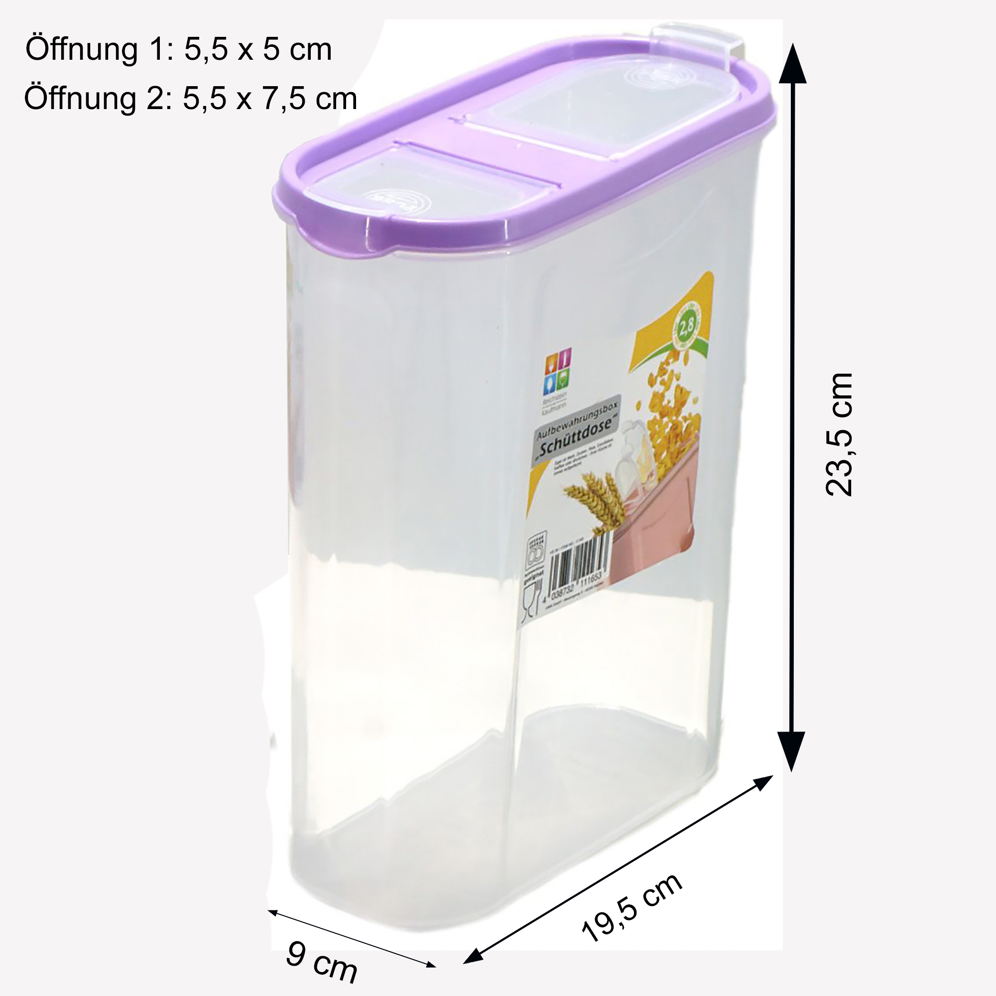 Unsere Schüttdosen eignen sich wunderbar für größere Mengen Lebensmittel. Egal ob Mehl, Zucker, Reis, Cornflakes, Kaffee oder ähnliches. Ihr Vorräte sind somit immer luftdicht und ordentlich verstaut und griffbereit. Die Streudosen sind stapelbar und dank des transparenten Behälters erkennen Sie sofort den Inhalt. Dosen, die gerade nicht gebraucht werden, können einfach platzsparend ineinander gestapelt und verräumt werden. Der Deckel sitzt fest auf den Dosen und bietet zwei Öffnungen zum Schütten. Kombinieren Sie unsere verschiedenen Größen nach Ihrem Bedarf.