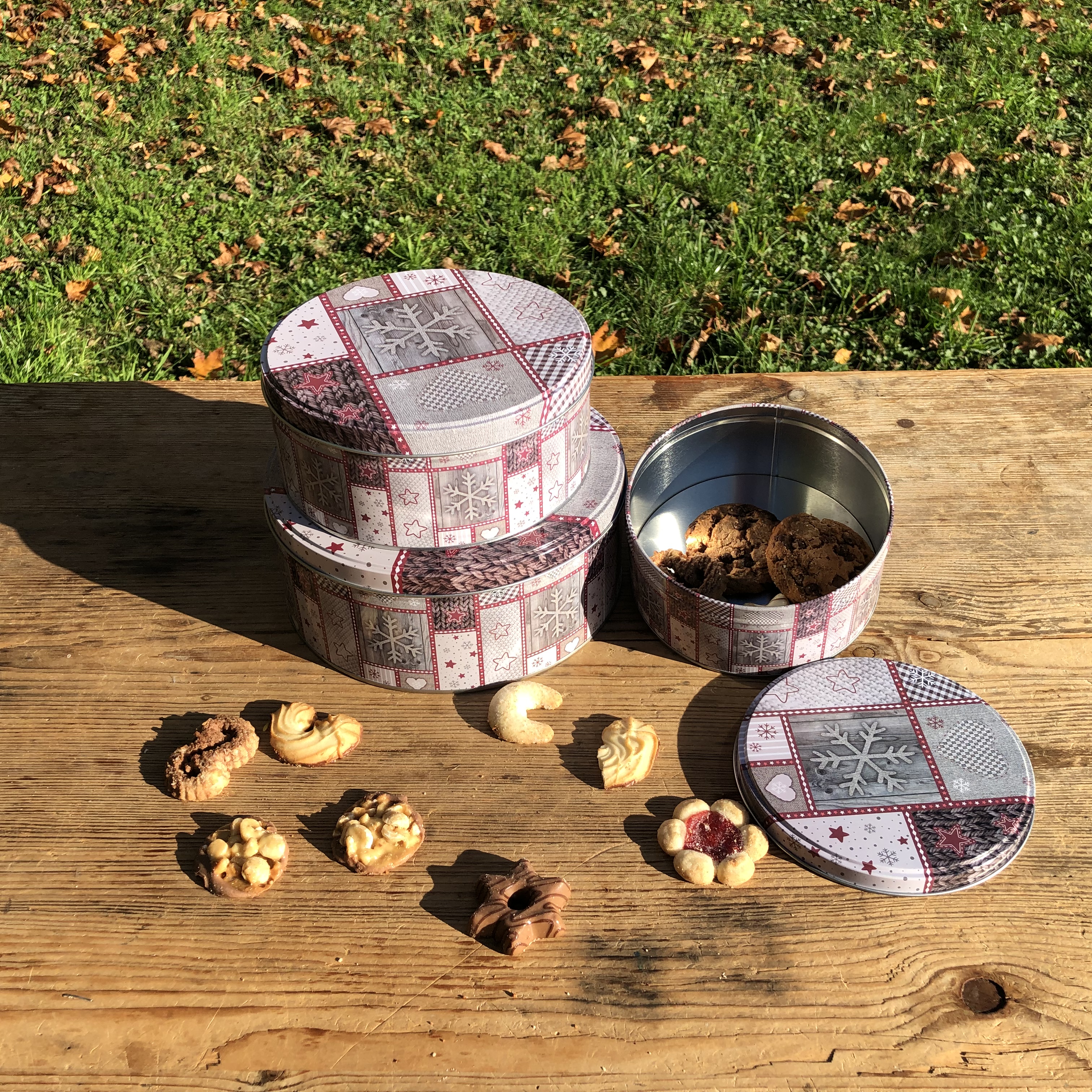 Zauberhafte Metalldosen als 3-tlg. Set zur Aufbewahrung von Gebäck und Weihnachtsplätzchen. Die Gebäckdosen verbreiten durch Ihre weihnachtlichen Motive eine stimmungsvolle Atmosphäre. Die ideale Aufbewahrung für Ihre leckeren Weihnachtsplätzchen, damit diese lange frisch bleiben.