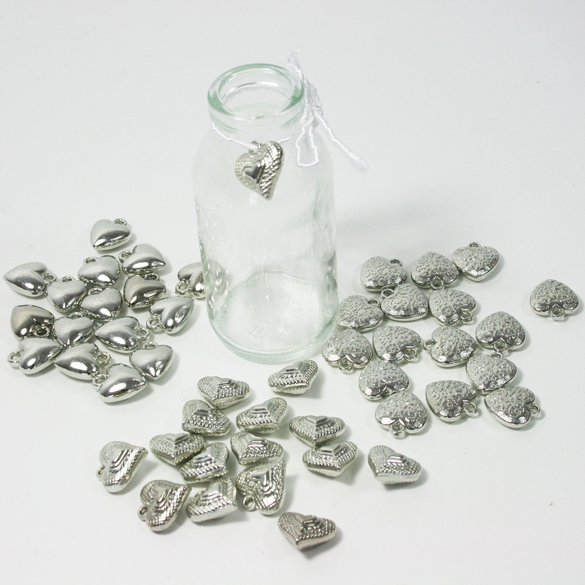 Bezaubernde Herzen mit Öse, stilvoll in edel-silberfarben zum Hängen. Zauberhafte Deko an Windlichtern, Geschenken, Zweigen und vielem mehr. Durch die Öse spielend leicht anzubringen. Für unzählige Dekorationen einzusetzen, als Streudeko ein Hingucker oder auch als Gastgeschenk und Anhänger an Tischkarten ideal. Die Form ist voluminös und gewölbt gearbeitet.