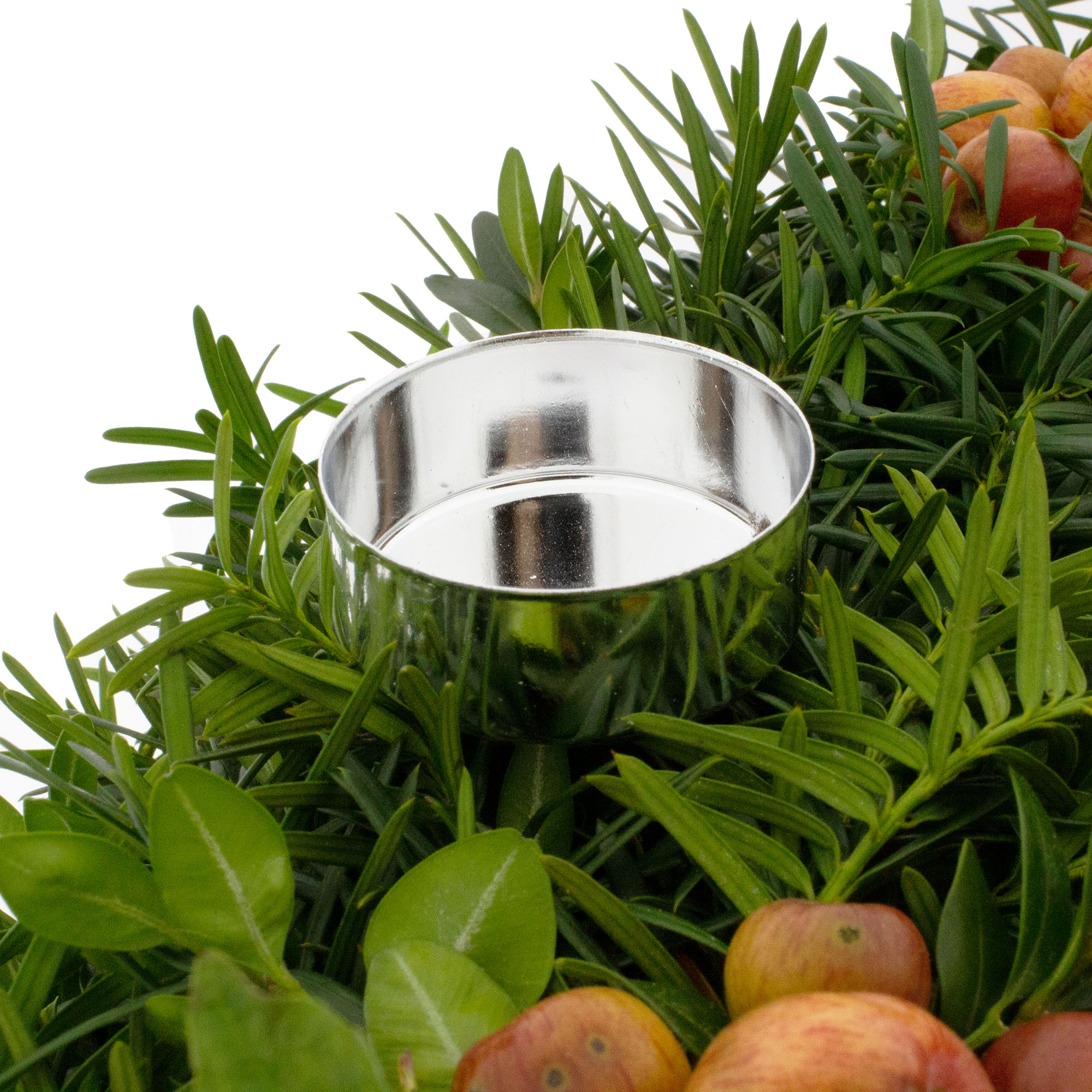 Stilvolle Teelichthalter aus Glas oder Metall zum Einstecken in den Adventskranz. Der Pick ist aus Metall und wird einfach in den Kranz gesteckt. So machen Sie im Handumdrehen aus Ihrem Kranz eine stimmungsvolle Beleuchtung in der Adventszeit.
