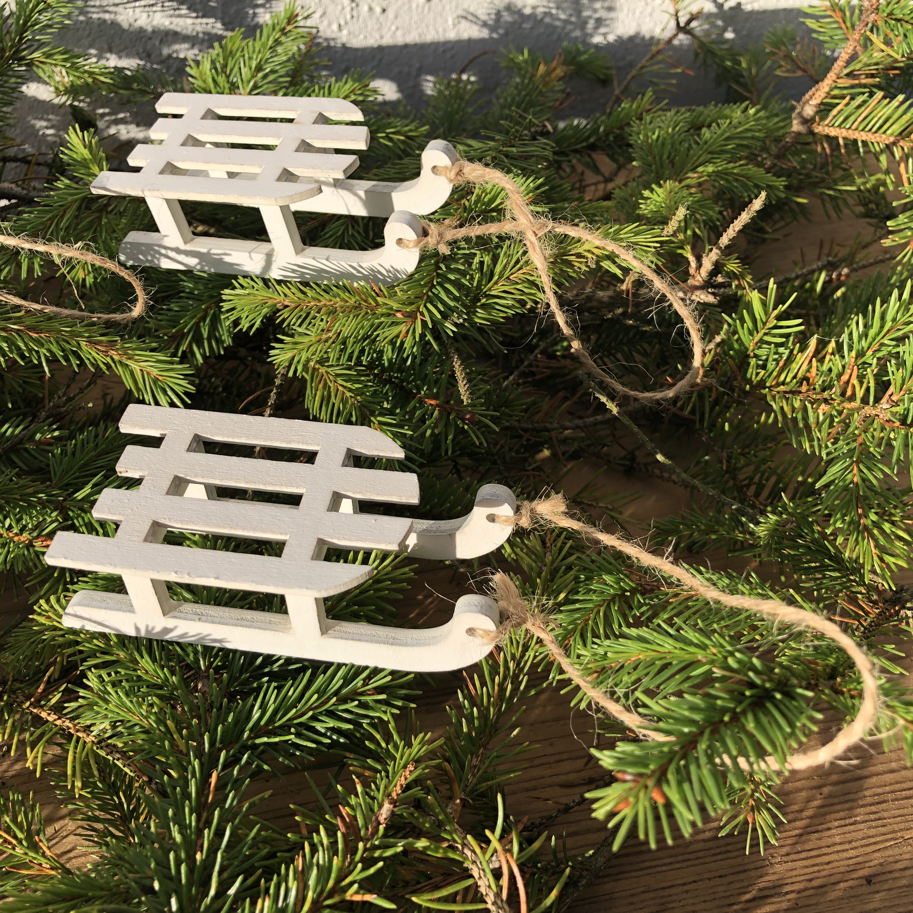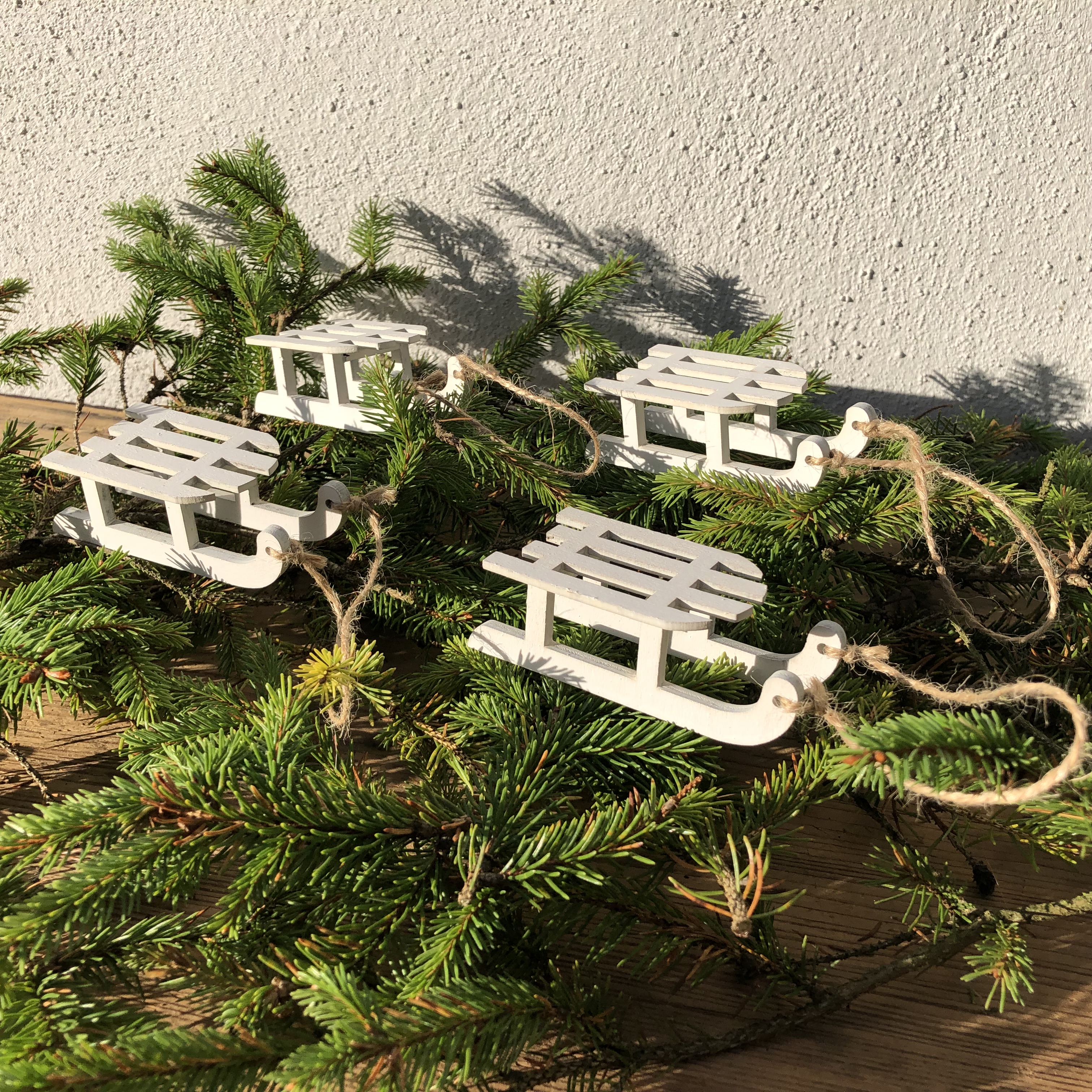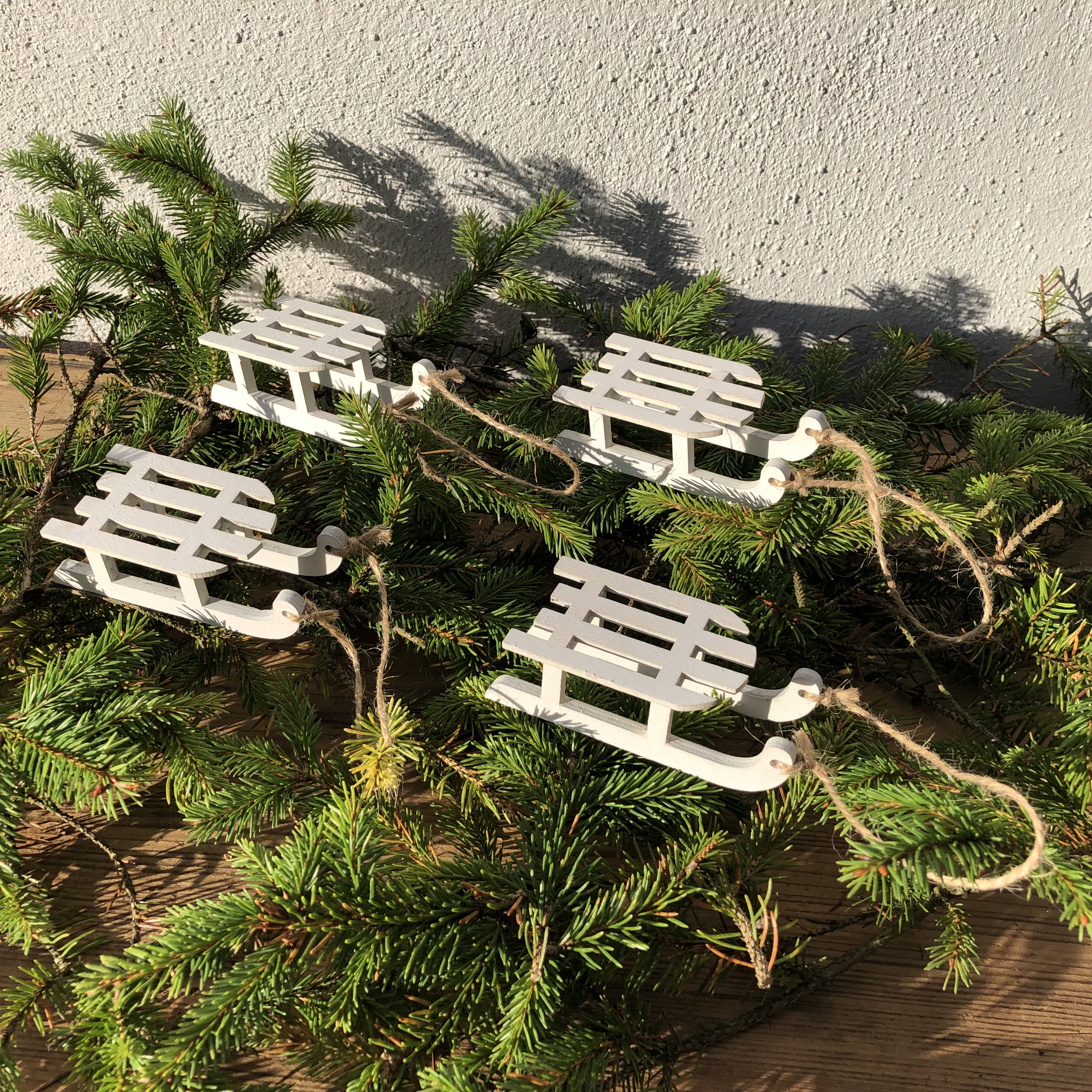 Zauberhafte kleine Holzschlitten aus Holz mit Schnur zum Hängen. Stimmungsvolle Deko an Weihnachten und sehr variabel einsetzbar. Süß als Fensterdeko, Geschenkanhänger, dekorativ auf Fenstersimsen und Regalen oder auch klassisch als Baumschmuck im nostalgischen Look.