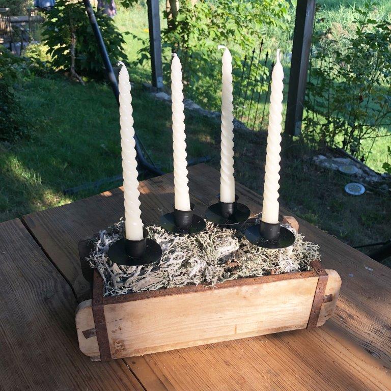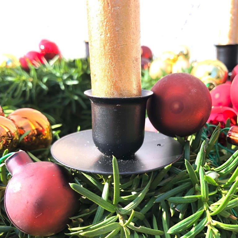 Damit Sie Ihren Adventskranz in vollen Zügen genießen können, ist nicht nur die Dekoration wichtig, sondern auch die richtige Kerzenunterlage. Unsere äußerst stabilen, für den Adventskranz unverzichtbaren Kerzenhalter, sorgen mit einer langen Nadel ud dem nach oben gebogenen Rand des Kerzentellers für einen absolut sicheren Halt der Kerzen in Ihrem Adventskranz oder Gesteck. Auch schweren und hohen Kerzen wird somit sicherer Halt gegeben. Die Kerzen sitzen fest auf den Adventskranzsteckern. Die Adventskranzkerzenhalter im praktischen 4er Pack lassen sich durch die lange Nadel sicher im Kranz fixieren und bieten mit einem Durchmesser von 6 cm bis 8 cm allen handelsüblichen Kerzen den perfekten Halt. Das neutrale Schwarz ist mit jeglicher Farbe kombinierbar. Die außergewöhnlich stabilen Kerzenhalter lassen sich immer wieder verwenden, entwender für den selbstgestalteten Adventskranz an Weihnachten oder im Frühling, Sommer oder Herbst für ein saisonales Tischgesteck.