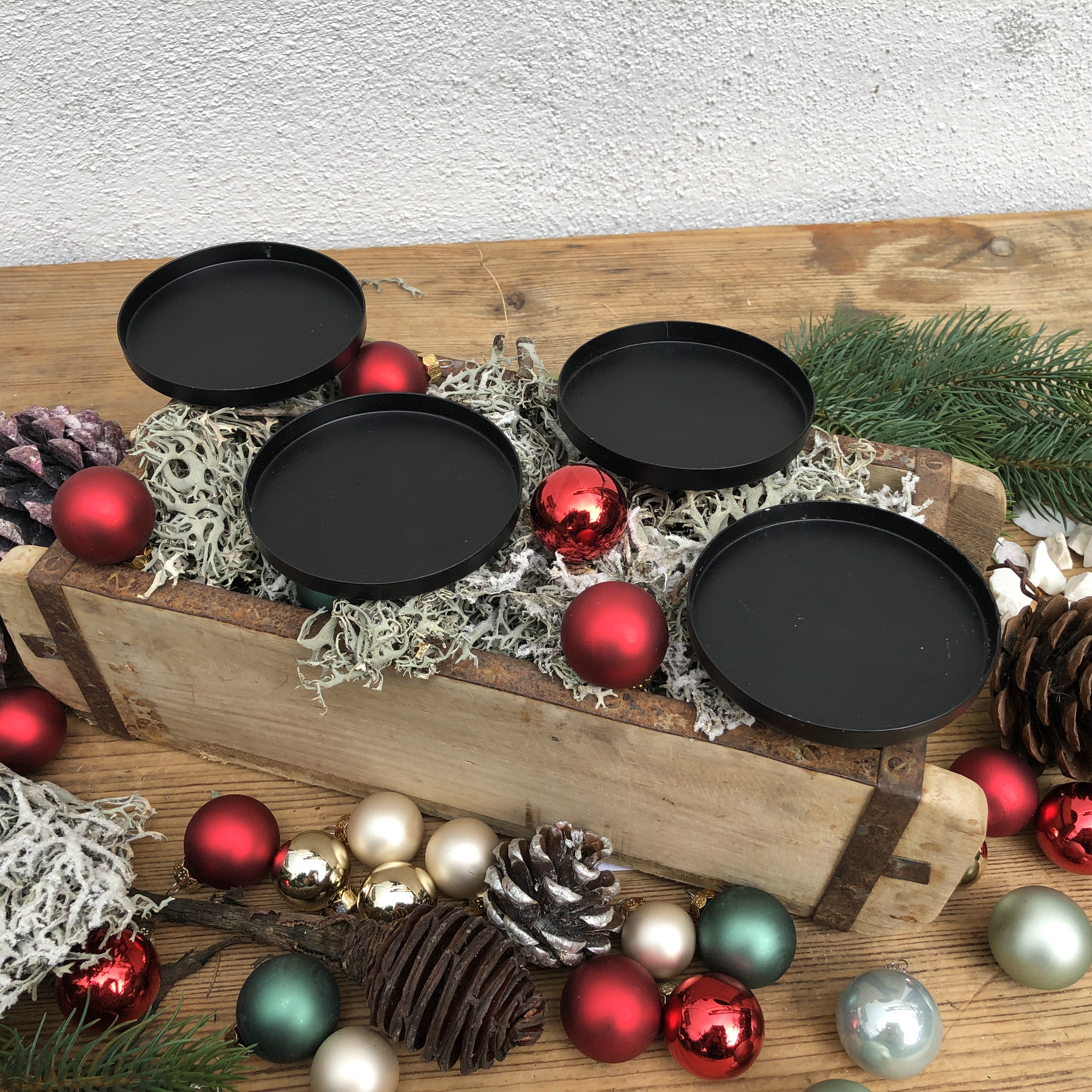 Damit Sie Ihren Adventskranz in vollen Zügen genießen können, ist nicht nur die Dekoration wichtig, sondern auch die richtige Kerzenunterlage. Unsere äußerst stabilen, für den Adventskranz unverzichtbaren Kerzenhalter, sorgen mit einer langen Nadel ud dem nach oben gebogenen Rand des Kerzentellers für einen absolut sicheren Halt der Kerzen in Ihrem Adventskranz oder Gesteck. Auch schweren und hohen Kerzen wird somit sicherer Halt gegeben. Die Kerzen sitzen fest auf den Adventskranzsteckern. Die Adventskranzkerzenhalter im praktischen 4er Pack lassen sich durch die lange Nadel sicher im Kranz fixieren und bieten mit einem Durchmesser von 6 cm bis 8 cm allen handelsüblichen Kerzen den perfekten Halt. Das neutrale Schwarz ist mit jeglicher Farbe kombinierbar. Die außergewöhnlich stabilen Kerzenhalter lassen sich immer wieder verwenden, entwender für den selbstgestalteten Adventskranz an Weihnachten oder im Frühling, Sommer oder Herbst für ein saisonales Tischgesteck.