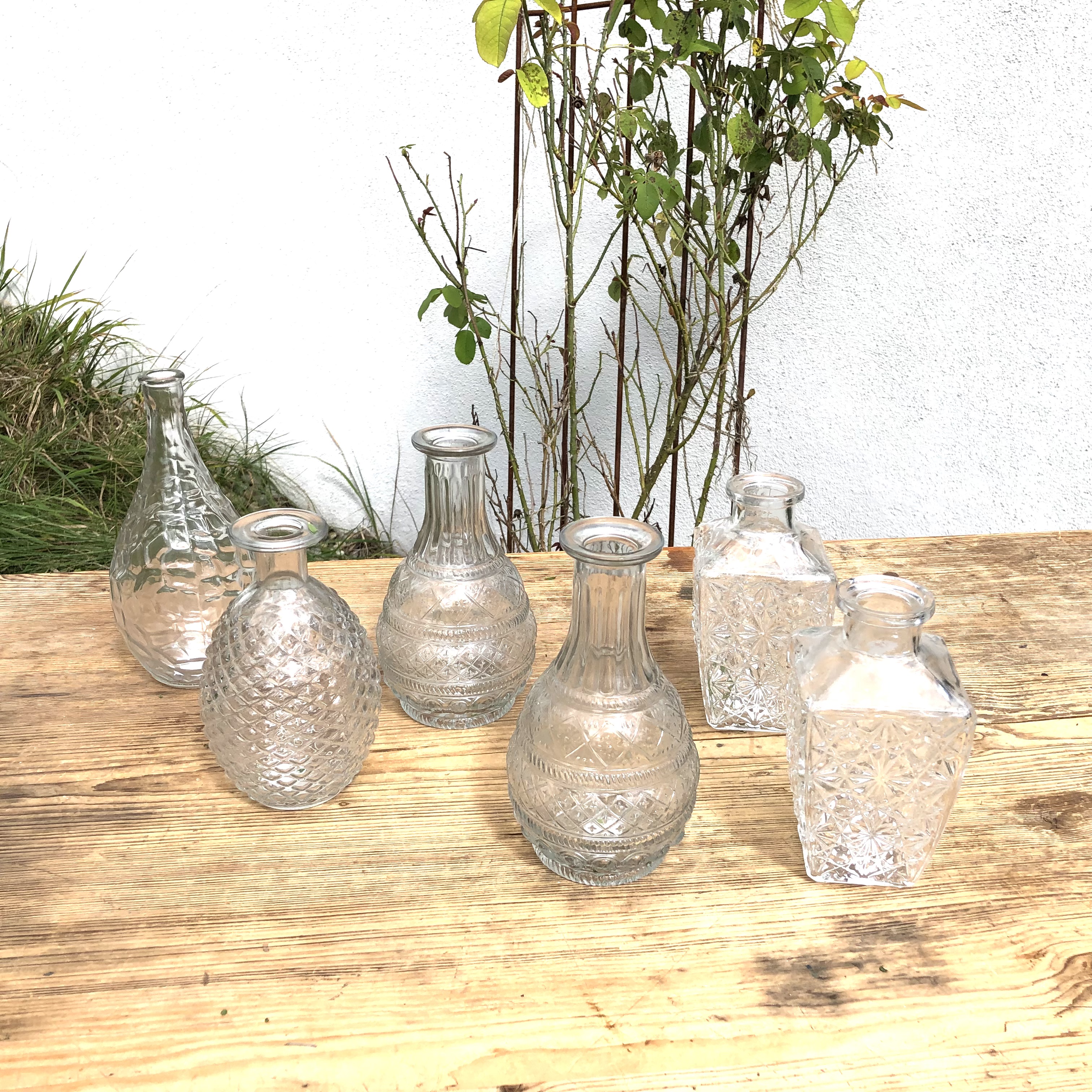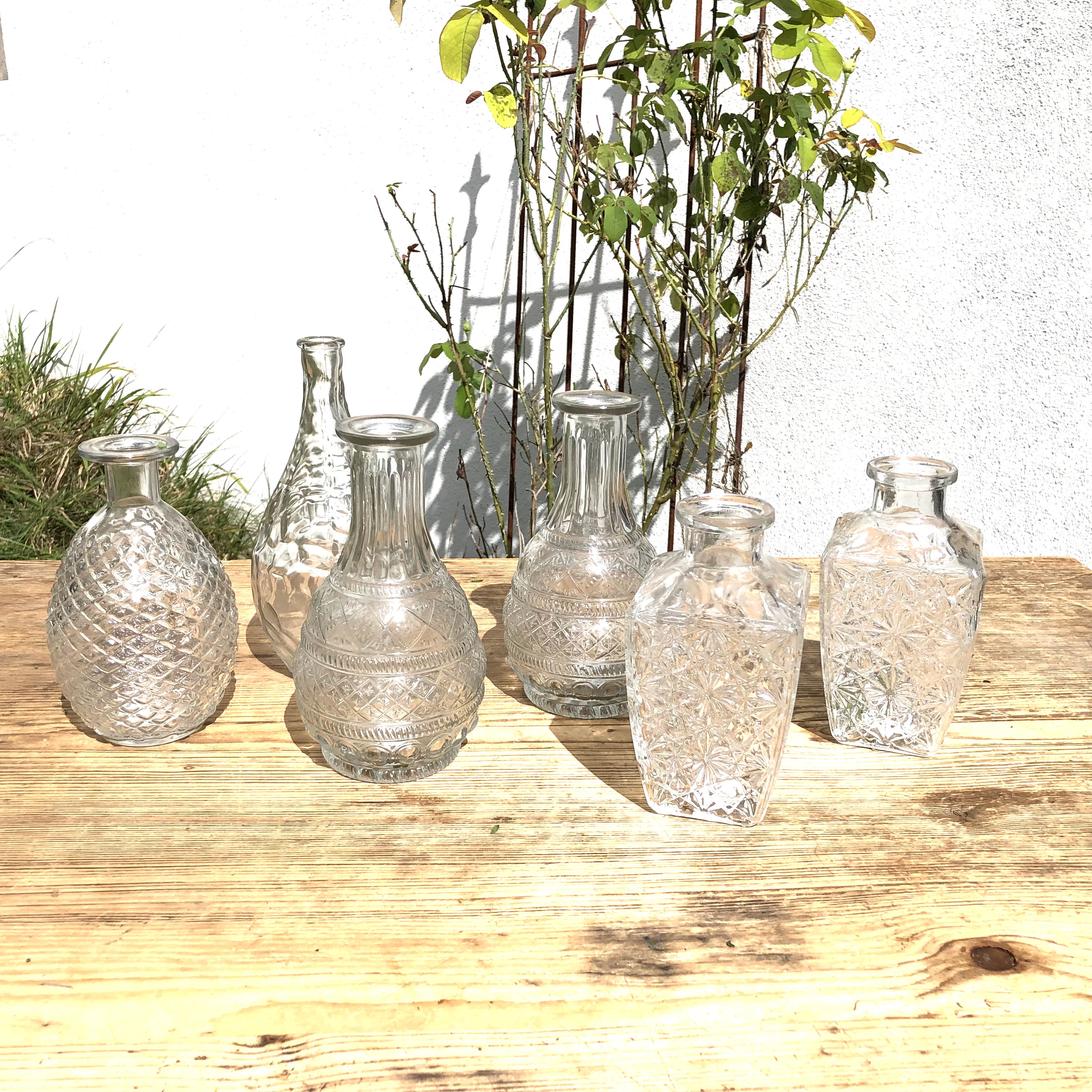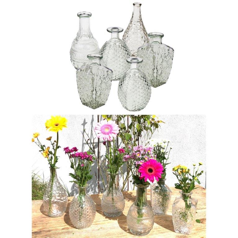 6-tlg. Set Vasen aus Glas im Vintage Look in verschiedenen Größen erhältlich