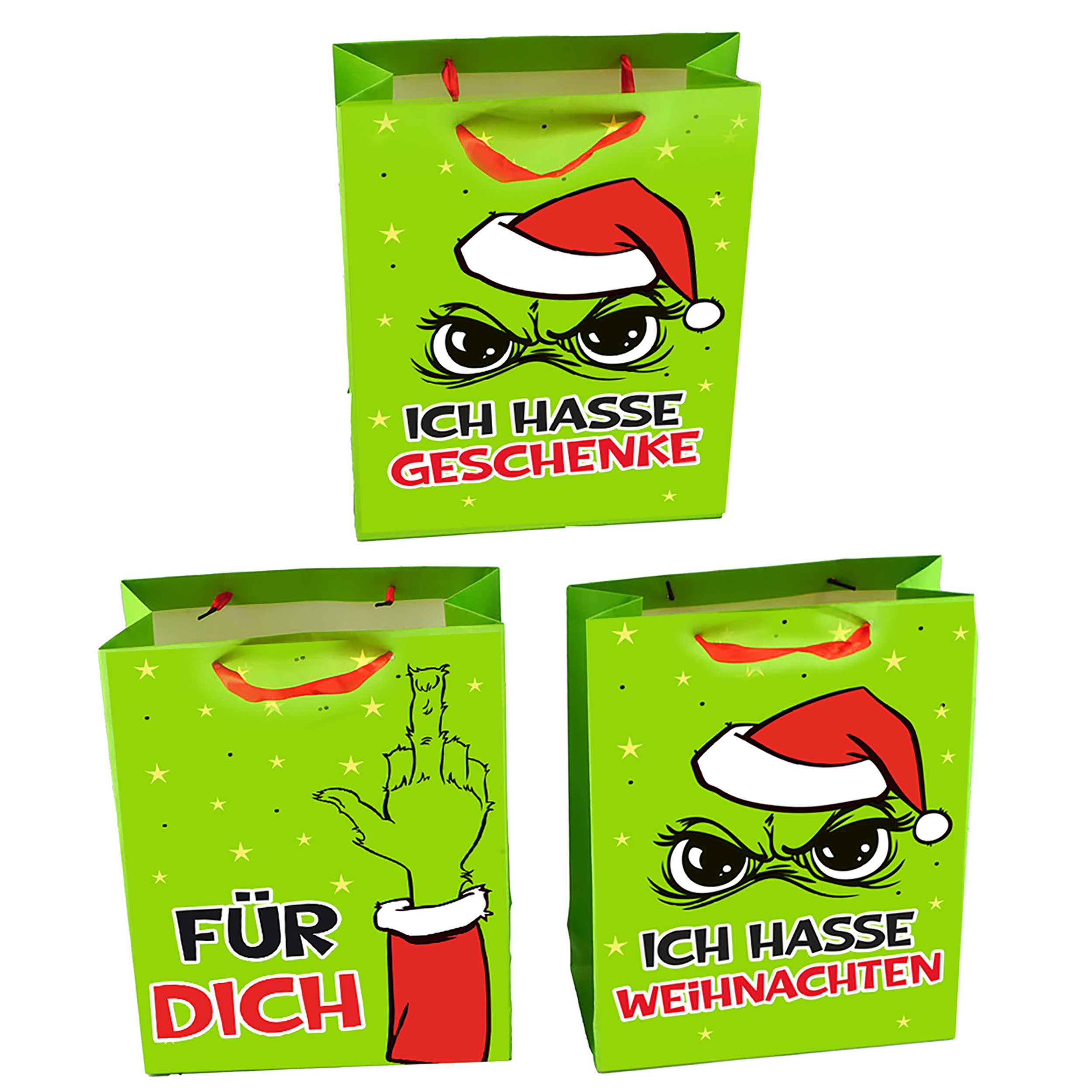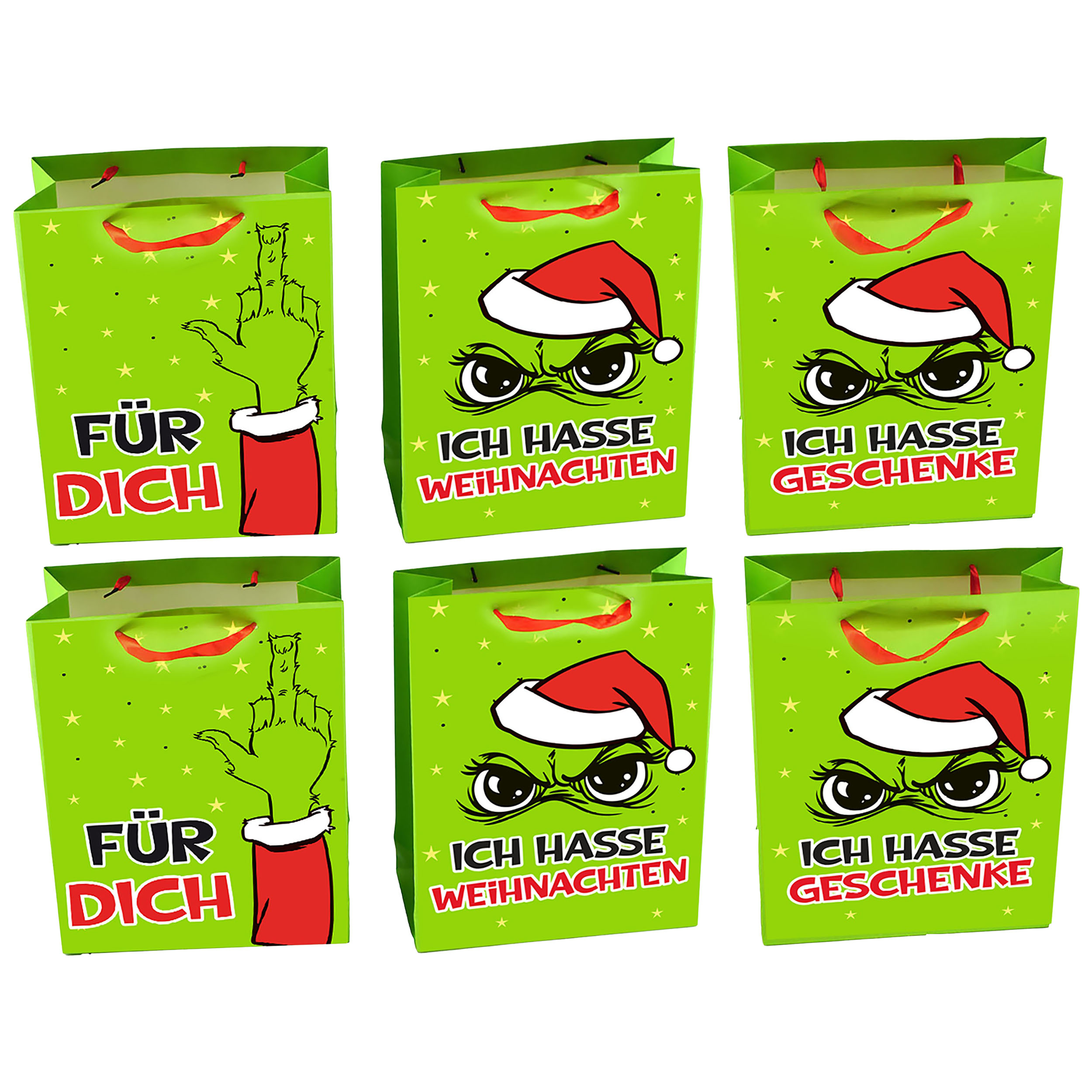 Entdecke unsere frechen Geschenktaschen "Festtags-Muffel", die perfekte Lösung für alle, die Weihnachten mit einem Augenzwinkern betrachten. Mit ihrem humorvollen Anti-Weihnachts-Design bringen sie nicht nur ein Lächeln auf dein Gesicht, sondern auch auf das deiner Beschenkten. Diese originellen Tüten aus grünem Papier sind in mehreren witzigen Modellen erhältlich und machen das Schenken zu einem unvergesslichen Erlebnis. Zeige deinen Freunden und Verwandten, dass du auch in der besinnlichsten Zeit des Jahres deinen Humor bewahrst. Die "Festtags-Muffel" sind nicht nur eine lustige Verpackung, sondern auch ein Statement – ideal für alle, die den Weihnachtsstress mit einem Scherz entgegentreten möchten. Mit einer Bestellung erhältst du sechs Stück in zwei verschiedenen Designs, die für jeden Anlass und jede Stimmung passen. Nutze die Geschenktaschen für alles von kleinen Aufmerksamkeiten bis hin zu größeren Gaben und sorge dafür, dass deine Geschenke schon beim Überreichen für Lacher und gute Laune sorgen. Vertrauen kannst du auf die hochwertige Verarbeitung und das ansprechende Material, das deine Überraschungen sicher umhüllt. Warte nicht länger! Hol dir jetzt deine "Festtags-Muffel" Geschenktaschen und bringe frischen Wind in die Weihnachtszeit.