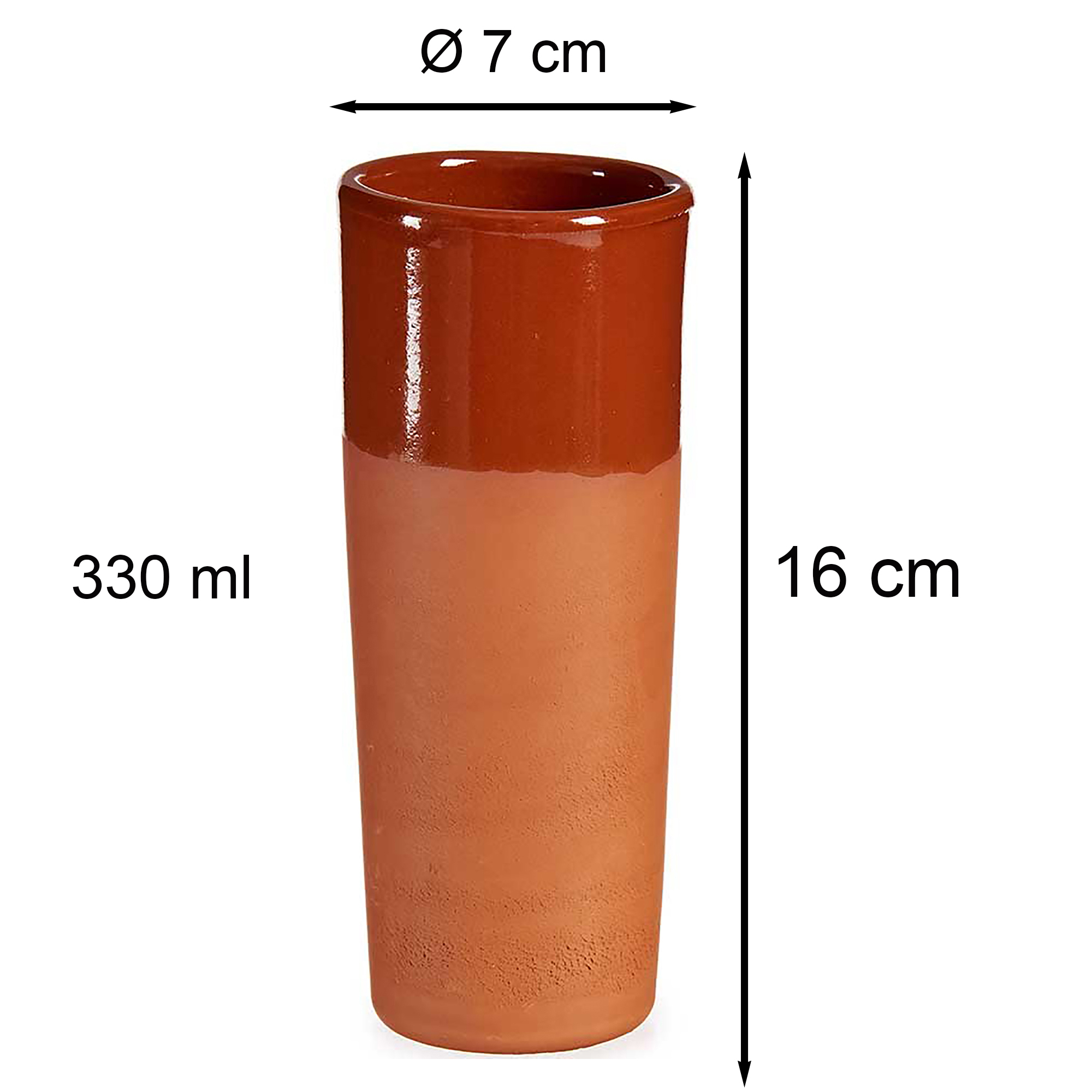 Weinbecher aus Ton als Highlight mit besonderem Flair. Die Tonbecher sind in Handarbeit endveredelt und gibt es in zwei Größen. Kleine Unebenheiten sowie Farbunterschiede sind keinesfalls Mängel sondern spiegeln die Einzigartigkeit dieses Produkt wieder – Jedes Stück ist ein einmaliges Unikat. Aufgrund der Ursprünglichkeit auch beliebt auf Mittelalterfesten, Jahrmärkten oder Wikingerfesten. Die Becher sind teilglasiert und können die Temperatur des Getränks sehr lange halten. Der ursprüngliche Tonkrug mit 1,0 Liter ist ebenfalls teilglasiert und hat die gleiche Beschaffenheit. Das Set aus Tonkrug und Becher beinhaltet 6 x Becher mit 250 ml.