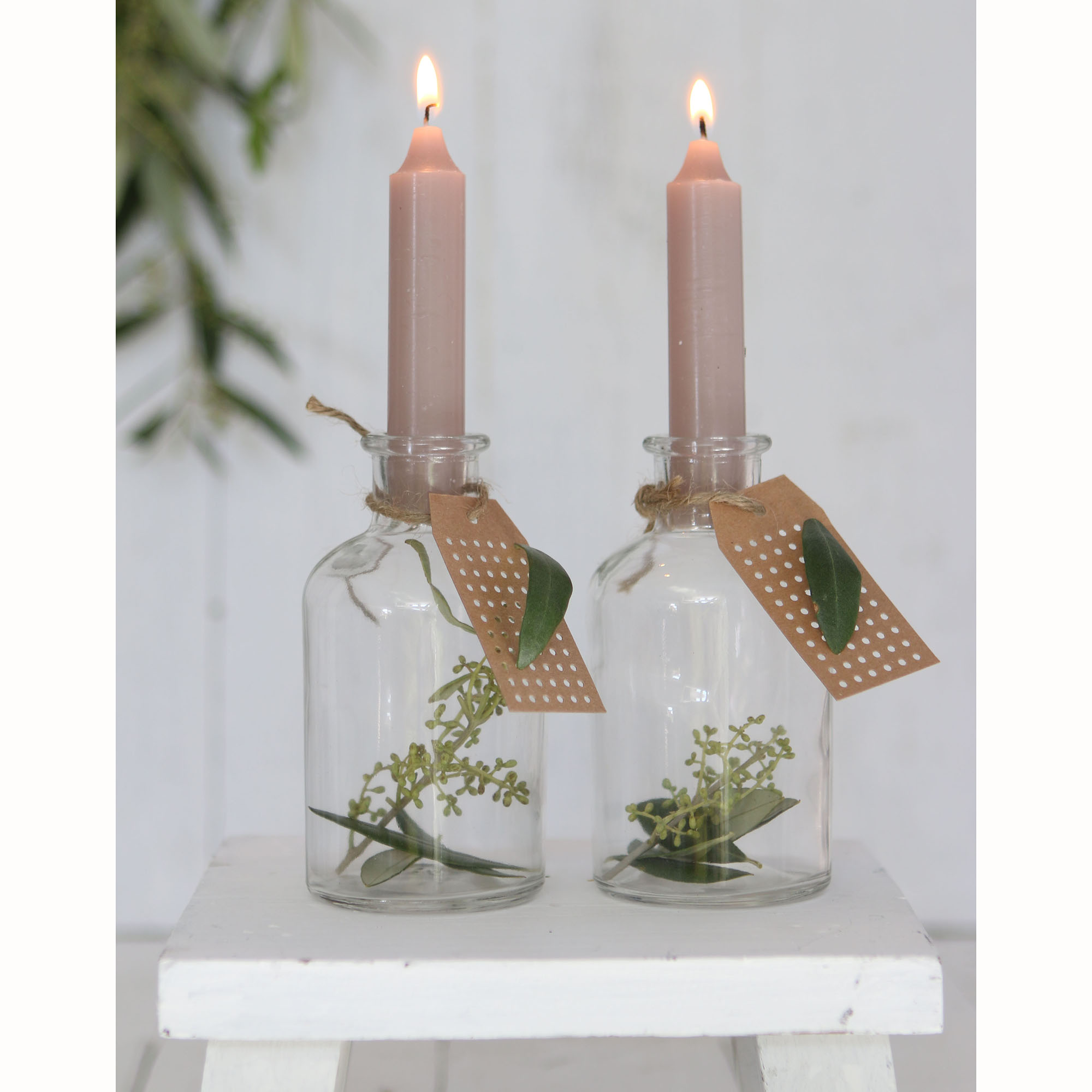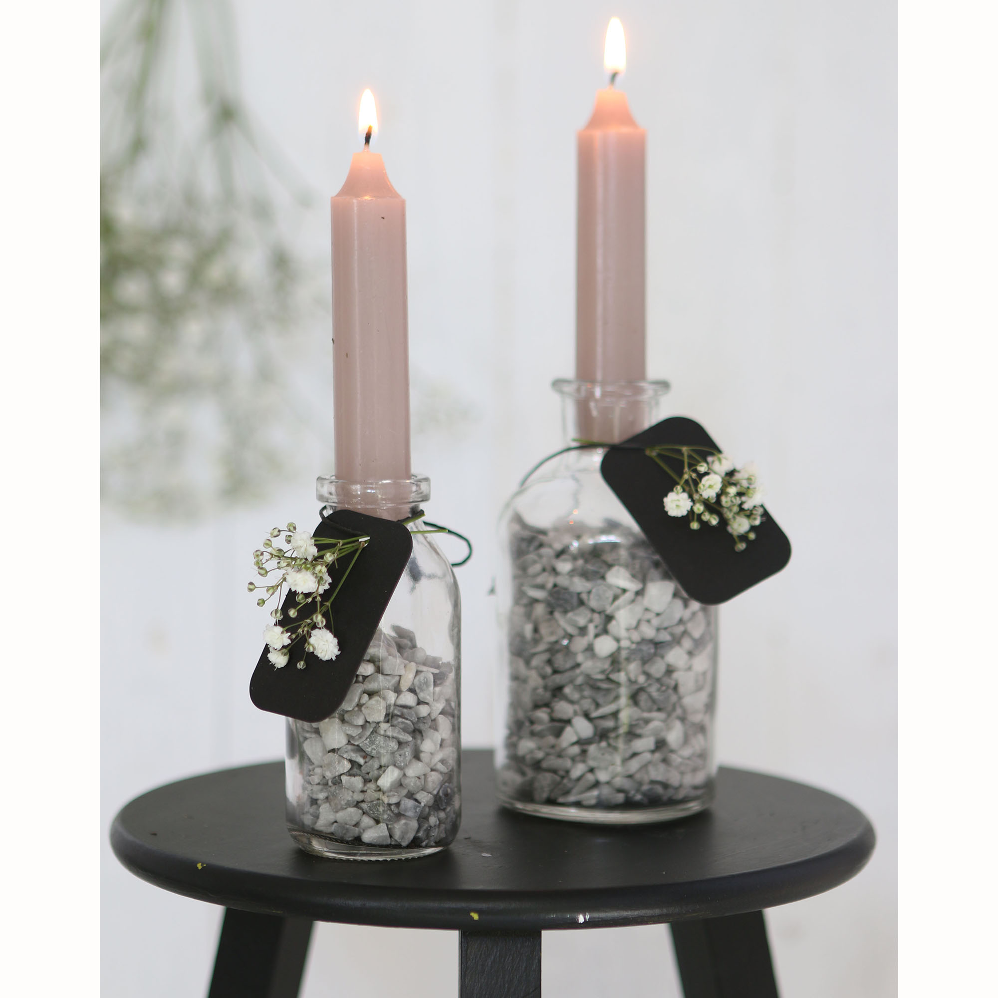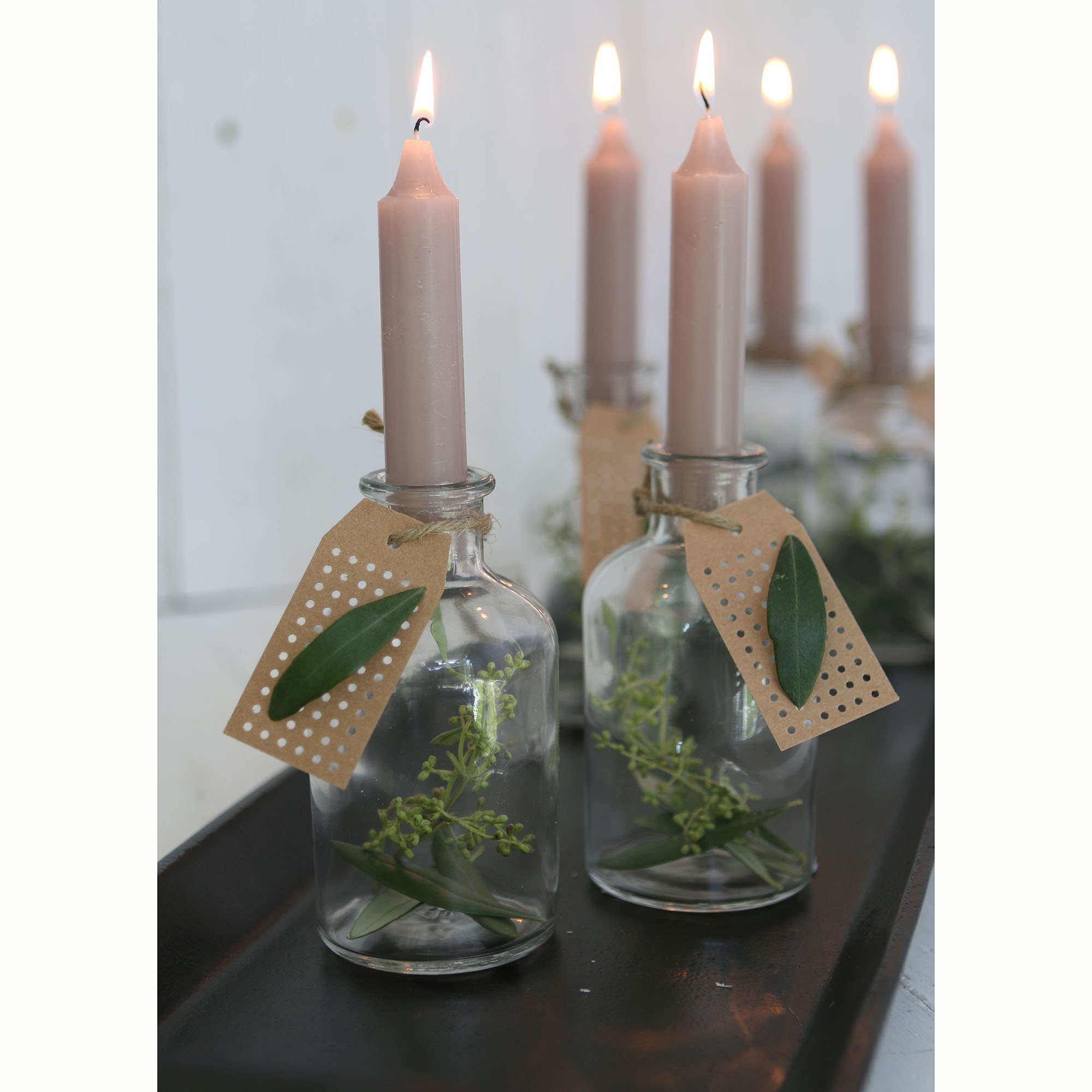 Zauberhafte Kerzen speziell hergestellt als Dekoration auf kleinen Glasflaschen. So zaubern Sie im Handumdrehen aus kleinen Fläschchen eine außergewöhnliche Tischdeko, die Sie sehr variabel einsetzen können. Hübsch als Deko bei Festlichkeiten oder einfach als Tischdeko. Die kleinen Kerzen haben eine Brenndauer von 5 Stunden, sind annähernd rußfrei und brennen sauber ab ohne jegliches Herunterlaufen von Kerzenwachs.
