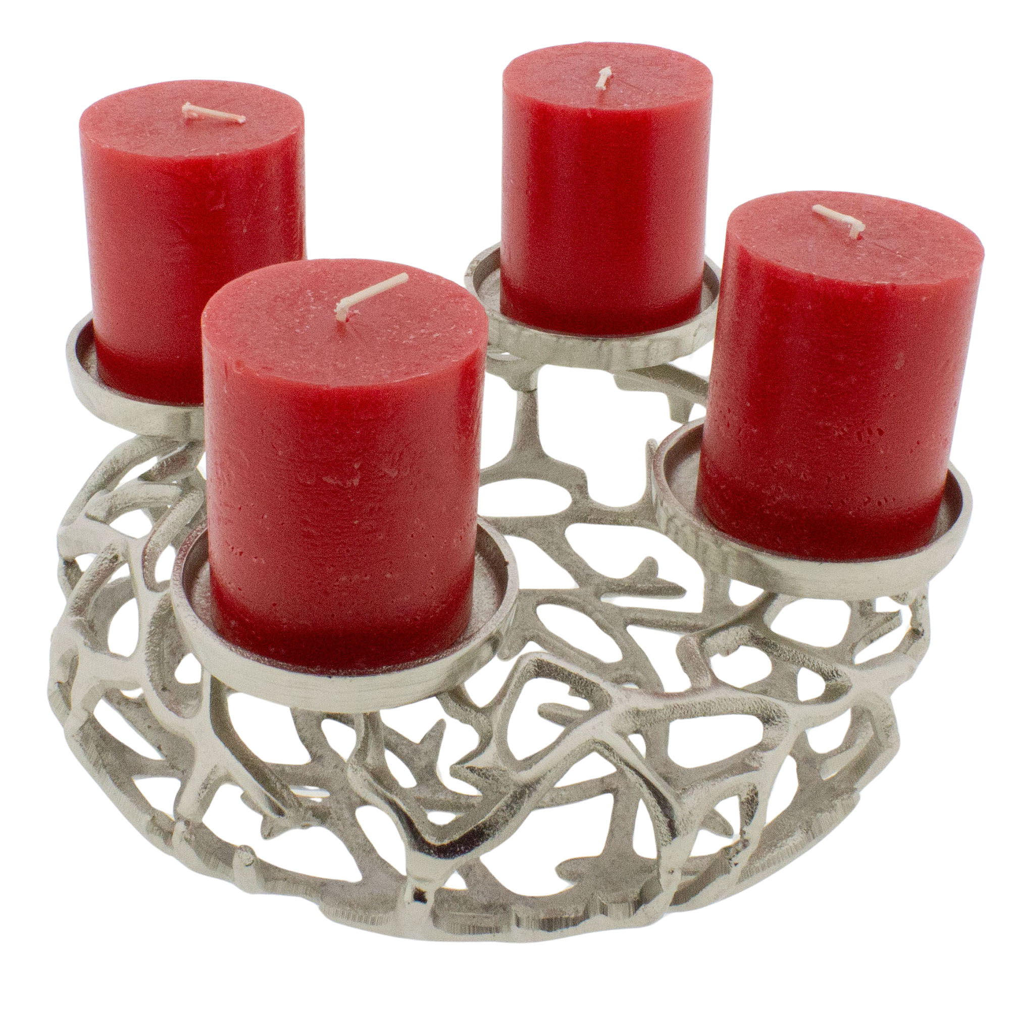 Der moderne und handgearbeitet Adventskranz aus Aluminium eignet sich perfekt für individuelle Dekorationen im Haus. Das edle Design aus Aluminium versprüht zur Adventszeit einen ganz besonderen Charme. Es ist das Highlight einer jeden Tischdekoration. Seine Landlebigkeit ist aufgrund des robusten Materials garantiert.