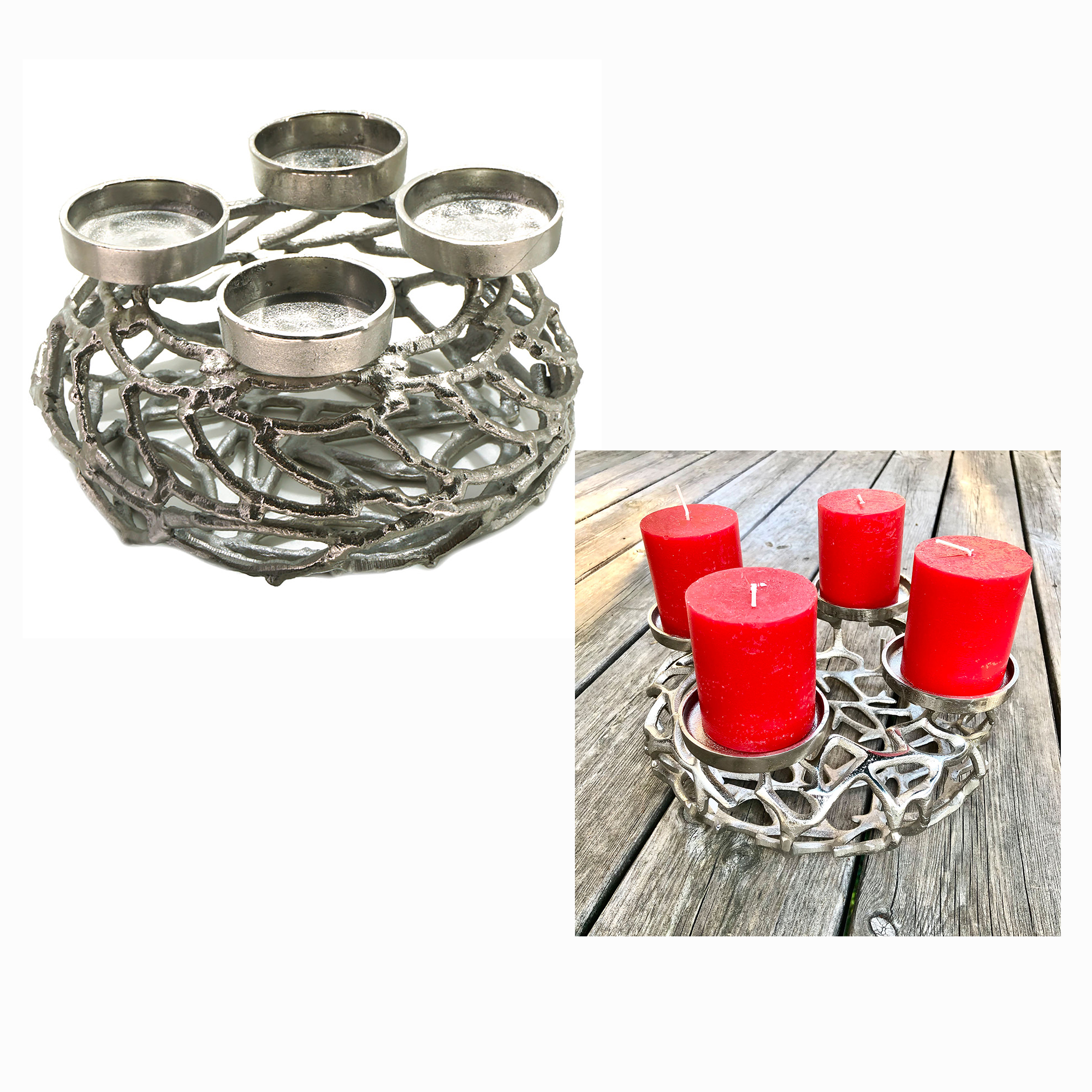 Adventskranz aus Aluminium in Handarbeit gefertig - für 4 Kerzen