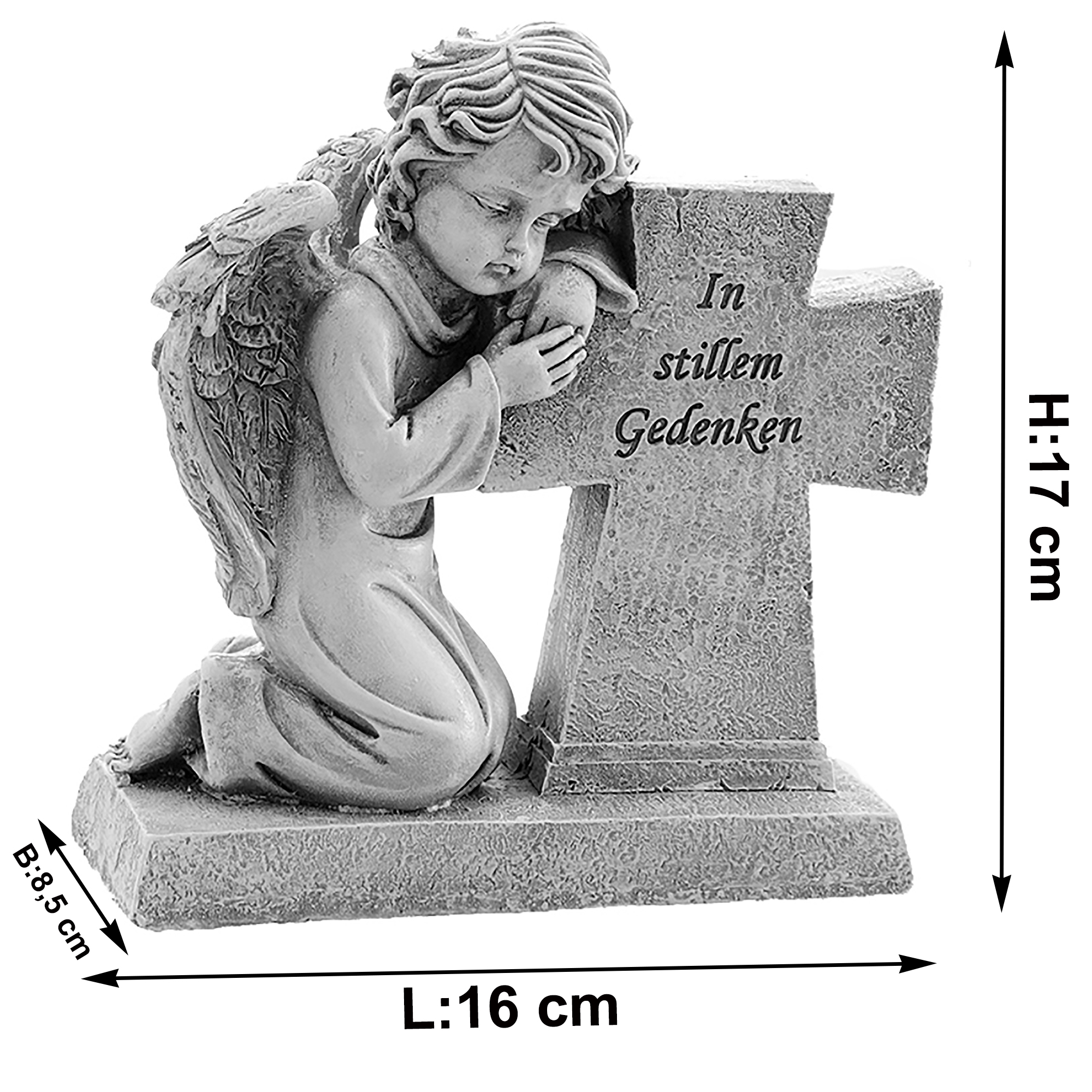 Grabdeko zum Gedenken an Ihre Liebsten aus Kunstharz, frostfest und witterungsbeständig. Die aparten Dekofiguren mit Engel für eine stilvolle Grabverzierung. Trauer-Deko, die sich auch als besinnlicher Grabstein für Ihre geliebten Vierbeiner eignet.