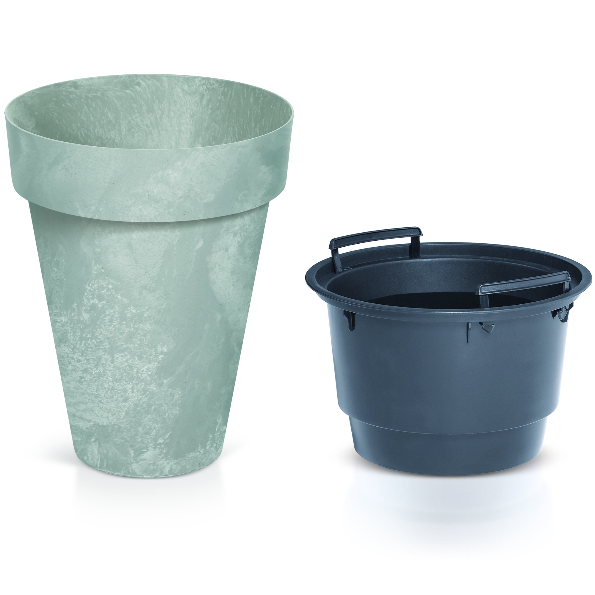Dank seines leichten Materials lässt sich der Pflanzkübel mühelos transportieren und flexibel platzieren. Ob auf dem Balkon, der Terrasse oder im Garten - dieser Blumentopf zieht alle Blicke auf sich. Die Beton-Optik verleiht ihm eine moderne und edle Ausstrahlung. Mit verschiedenen Formvarianten kann man den Kübel ganz nach seinem persönlichen Geschmack wählen und so das eigene grüne Paradies gestalten. Der Kunststoff sorgt dafür, dass der Pflanzkübel sowohl drinnen als auch draußen verwendet werden kann. Er ist wetterfest sowie UV-beständig und behält somit seine schöne Optik über einen langen Zeitraum hinweg bei. Mit einer passenden Untersetzung bietet er zudem optimalen Schutz für empfindliche Oberflächen wie Holz oder Fliesen vor Feuchtigkeitsschäden durch überschüssiges Gießwasser. Egal ob prachtvolle Blumenarrangements, duftende Kräuterbeete oder kleine Gemüsepflanzen - in diesem stilvollen Pflanzgefäß kommen sie perfekt zur Geltung. Der großzügige Durchmesser ermöglicht ausreichend Platz für die Wurzeln Ihrer Lieblingspflanzen, sodass diese gesund wachsen können. Überzeugen Sie sich selbst von diesem leichtgewichtigen Hingucker mit betörender Betonoptik! Bringen Sie Stil in Ihren Außenbereich und setzen Sie Ihre grünen Schätze gekonnt in Szene – mit dem leichten Pflanzkübel in schicker Beton-Optik