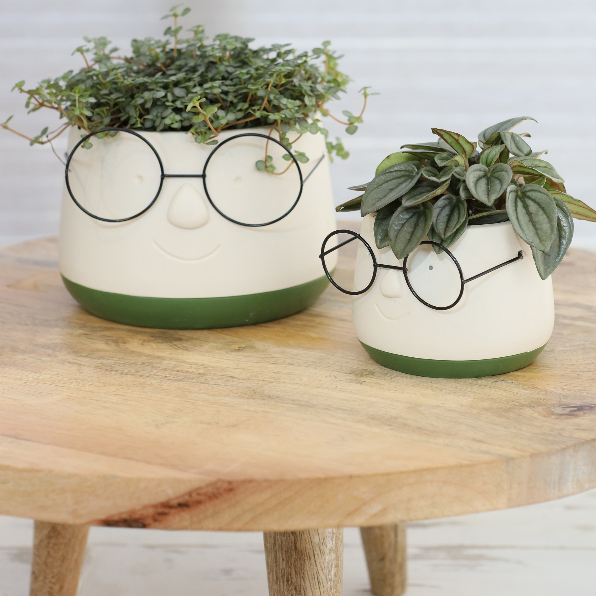 Blumenübertöpfe "Frieda" aus Keramik mit Brille