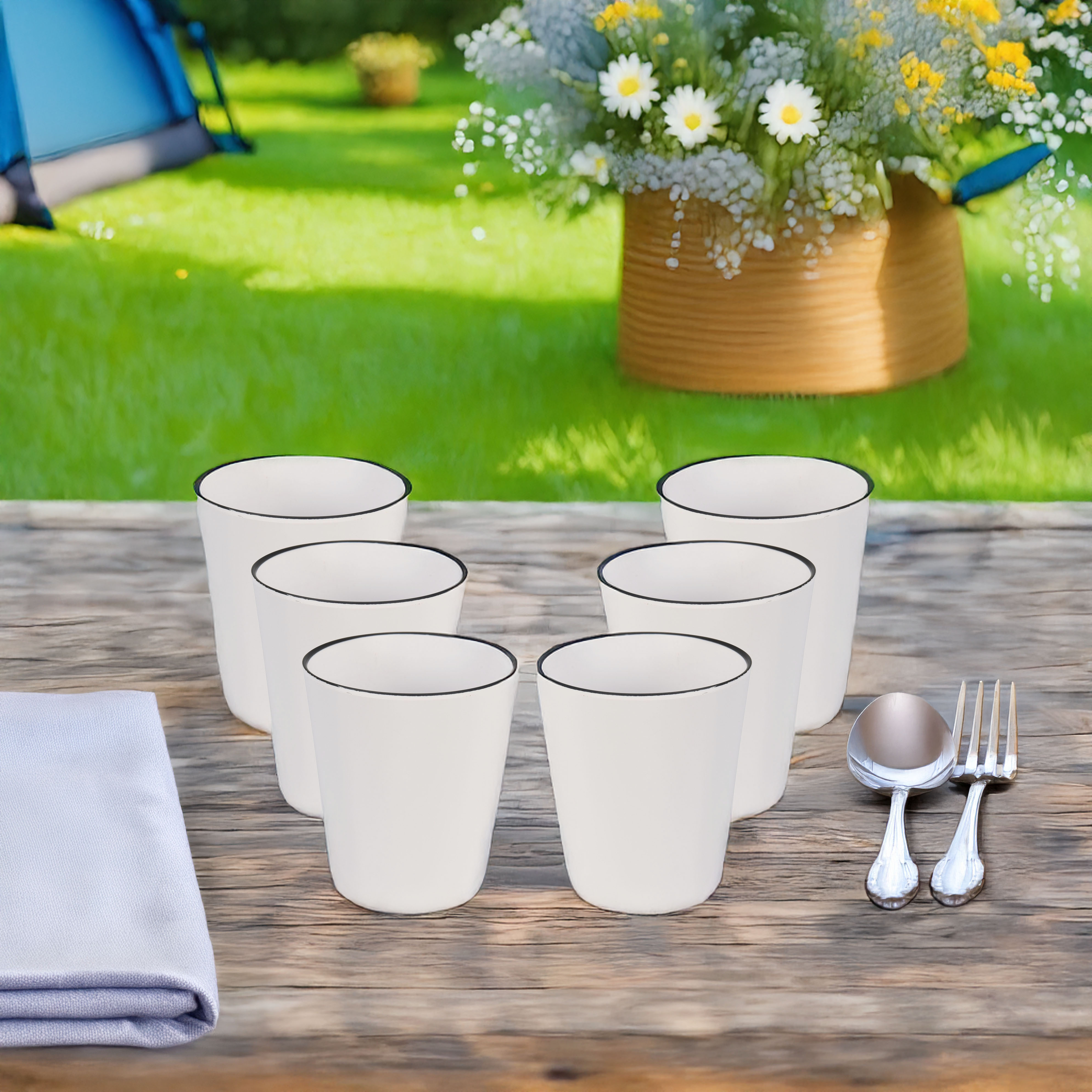 Camping-Geschirr-Set aus Melamin - immer wieder verwendbar - spülmaschinengeeignet