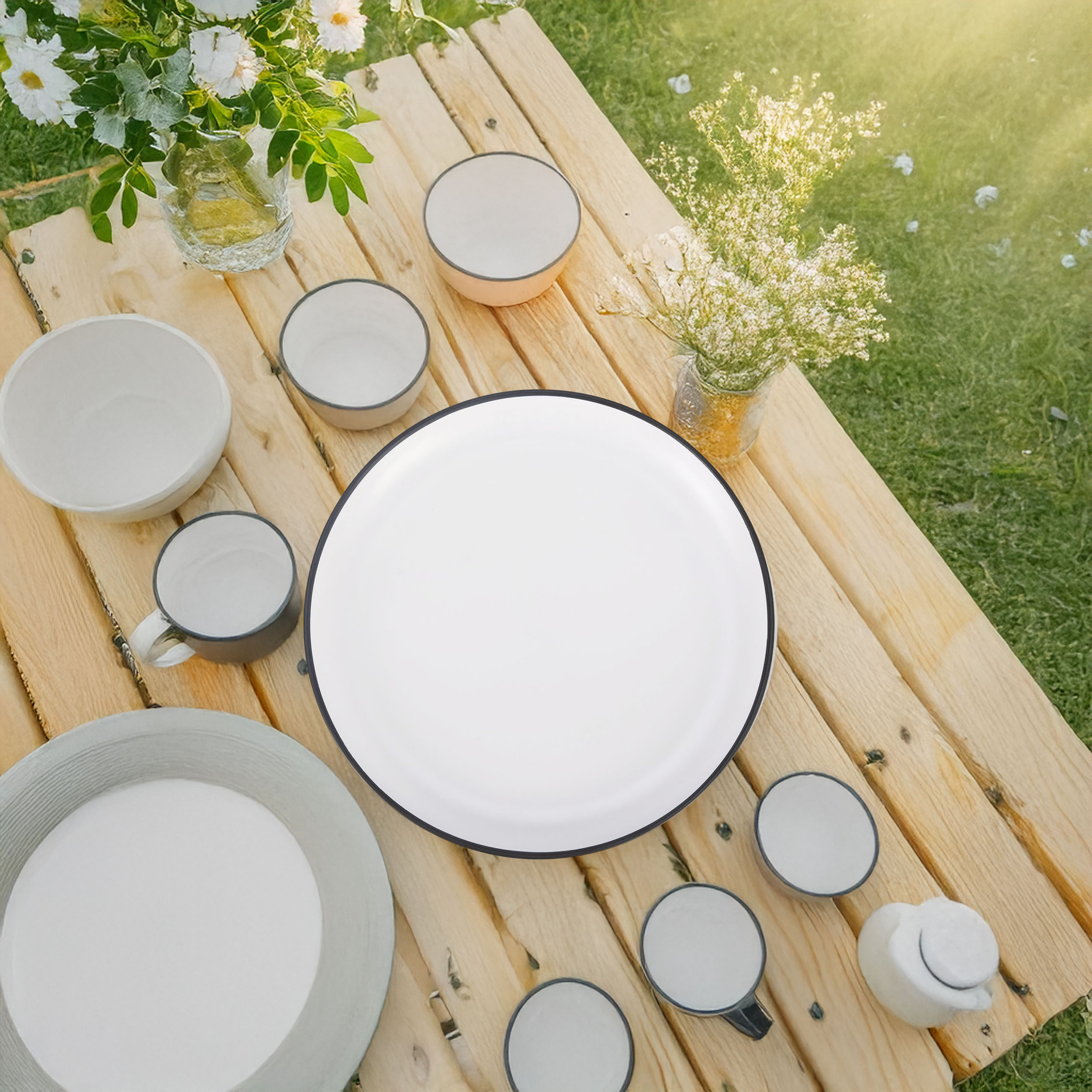 Camping-Geschirr-Set aus Melamin - immer wieder verwendbar - spülmaschinengeeignet