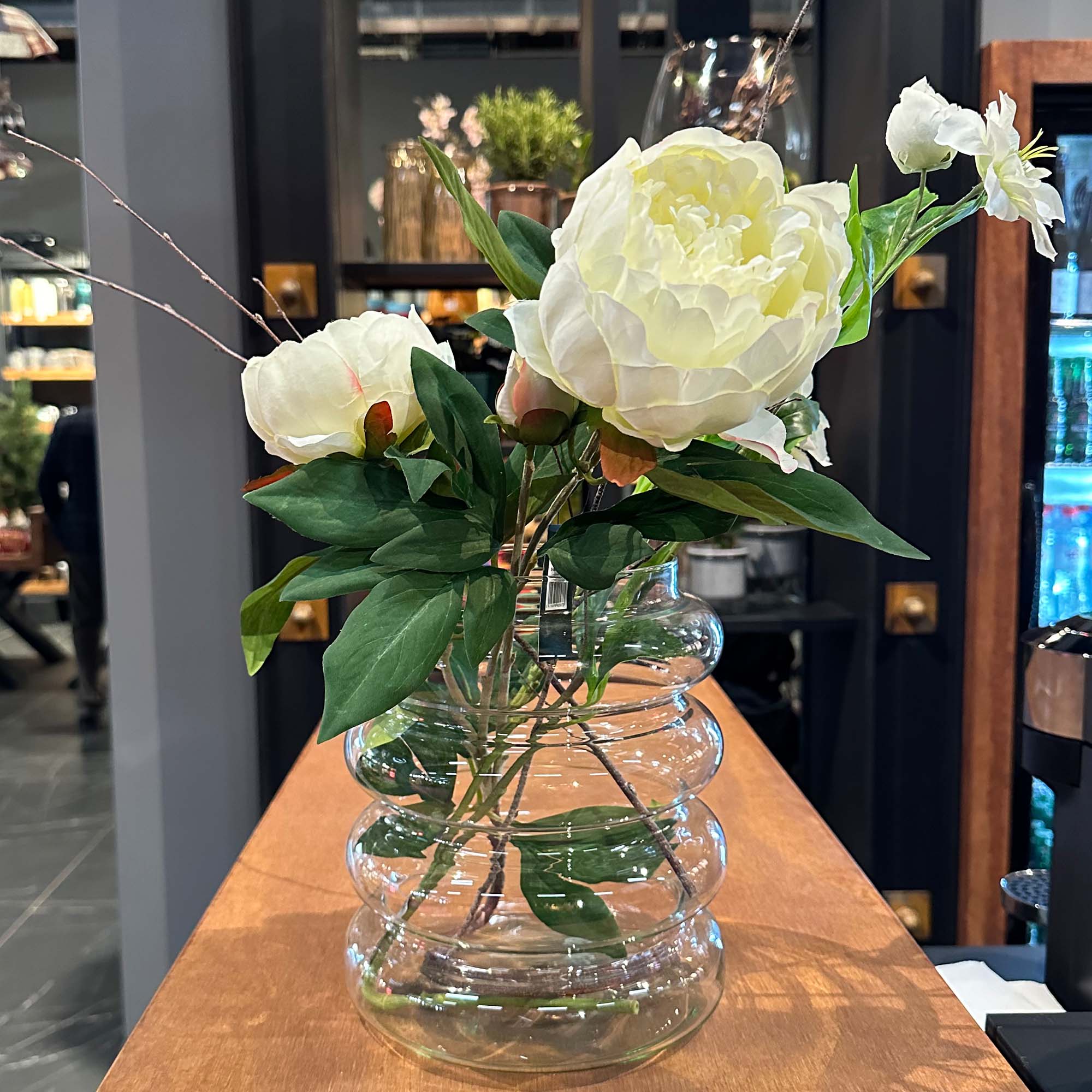 Mit ihrem modernen Design und der einzigartigen Ringoptik sind diese trendigen Glasvasen in verschiedenen Größen und Designs nicht nur praktische Gefäße für Ihre Blumen, sondern auch echte Kunstwerke. Sie verleihen jedem Raum eine stilvolle Note und ziehen alle Blicke auf sich. Egal ob Sie sie zu Hause als dekoratives Element verwenden möchten oder im Büro einen Hauch von Eleganz schaffen wollen - mit diesen außergewöhnlichen Vasen setzen Sie immer das richtige Statement. Auch auf dem Empfangstresen werden sie zum absoluten Blickfang, denn ihre zeitlose Schönheit fasziniert jeden Betrachter. Die hochwertige Verarbeitung des Glases sorgt dafür, dass die Vasen robust und langlebig sind. So können Sie lange Freude an Ihrem floral gestalteten Ambiente haben. Die klare Transparenz des Materials lässt zudem jede einzelne Blume besonders strahlen und betont ihre natürliche Schönheit. Entdecke jetzt die Vielfalt unserer gläsernen Meisterwerke! Ob kleinere Variantion für einzelne Schnittblumen oder größere Modelle für üppig arrangierte Sträuße - wir bieten Ihnen eine breite Auswahl an Formaten, sodass garantiert jeder Geschmack bedient wird. Lassen auch Sie sich von unseren trendy Glasvasen begeistern! Setzen Sie Akzente in Ihrer Wohn- oder Arbeitsumgebung und verwandeln einfache Räume in wahre Wohlfühloasenen voller Ästhetik.