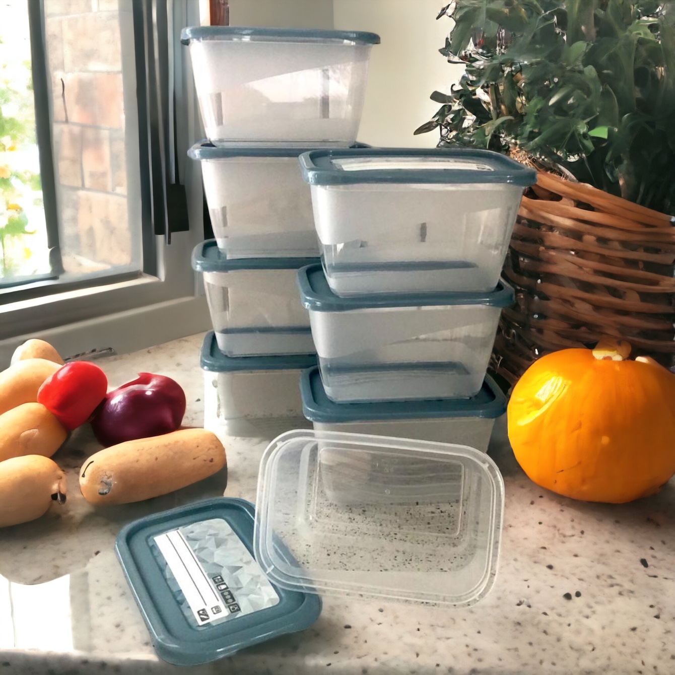 Hochwertige, ineinander stapelbare Tiefkühldosen zum Einfrieren von Lebensmiotteln von - 40 °C und gleichzeitig zum Auftauen und Erhitzen in der Mikrowolle bis + 95 ^C geeignet. Aus PBA-freiem Kunststoff Polyethylen. Die Gefrierdosen sind in verschiedenen Größen erhältlich und somit sehr variabel einsetzbar. Ideal zum Einfrieren auch von kleineren Portionen.