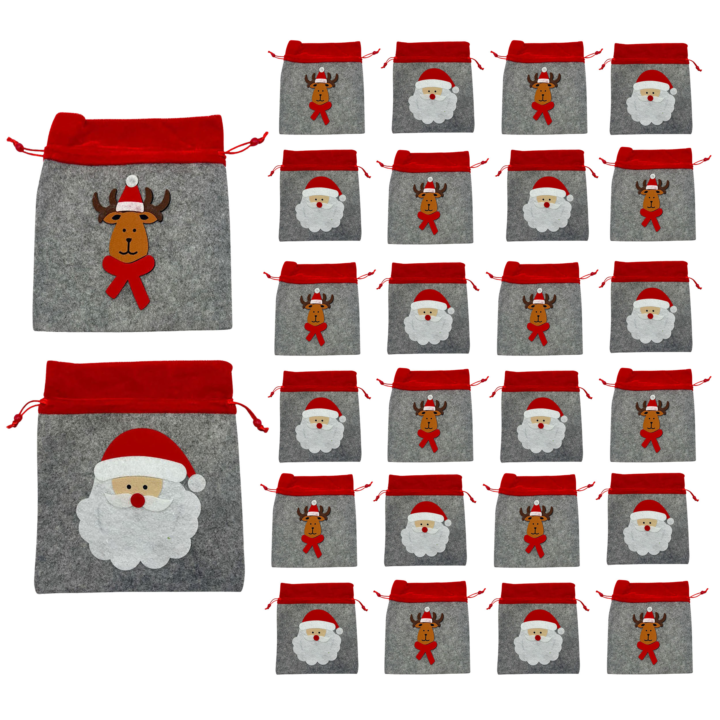 Entdecken Sie die zauberhaften Filzbeutel, die Ihre Geschenke in ein ganz besonderes Licht tauchen! Mit diesen stilvollen Beuteln setzen Sie nicht nur auf eine ansprechende Verpackung, sondern bringen auch ein Lächeln auf die Gesichter Ihrer Liebsten. Die Kombination aus hochwertigem Filz und einem festlichen roten Organzaband sorgt dafür, dass Ihre Geschenke nicht nur schön verpackt sind, sondern auch die Vorfreude auf das Fest steigern. Stellen Sie sich vor, wie Ihre Freunde und Familie beim Öffnen der Beutel in Staunen geraten. Der Anblick der liebevoll gestalteten Motive mit Nikolaus und Rentier versetzt jeden in eine fröhliche Weihnachtsstimmung. Diese Beutel sind mehr als nur eine Verpackung – sie sind ein Teil des Geschenkerlebnisses. Unsere einzigartigen Verkaufsargumente sprechen für sich: Die Beutel haben die ideale Größe von 21 x 23 cm, um kleine bis mittelgroße Geschenke stilvoll zu präsentieren. Ob für selbstgemachte Plätzchen, kleine Spielzeuge oder persönliche Überraschungen – diese Filzbeutel bieten ausreichend Platz und einen charmanten Look. Erhältlich im praktischen 6er oder 24er Set, sind sie perfekt für jede Gelegenheit. Die Anwendungsmöglichkeiten sind vielfältig. Nutzen Sie die Beutel für den Adventskalender, als kreative Tischdekoration oder als originelle Geschenkverpackung bei Feiern. Ihrer Fantasie sind keine Grenzen gesetzt. Vertrauen Sie auf die Qualität unserer Produkte – wir legen großen Wert auf sorgfältige Verarbeitung und nachhaltige Materialien. Jedes Detail ist durchdacht, damit Sie lange Freude an Ihren Filzbeuteln haben. Lassen Sie sich von der festlichen Atmosphäre inspirieren und verwandeln Sie Ihre Geschenke in unvergessliche Überraschungen. Bestellen Sie noch heute Ihr Set und bereiten Sie Ihren Liebsten eine Freude, die von Herzen kommt.