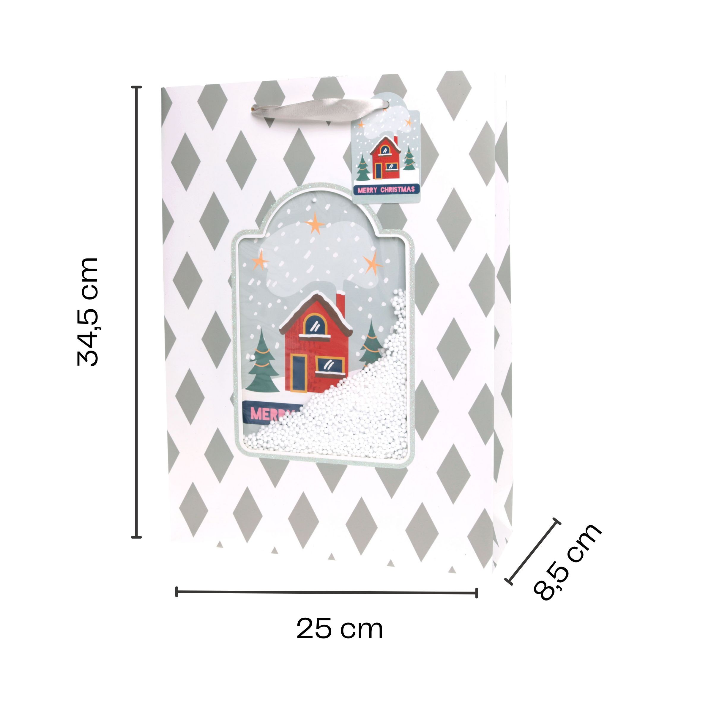 Produktinformationen "Geschenktüten Weihnachten mit 3-D-Sichtfenster und Kunstschnee"