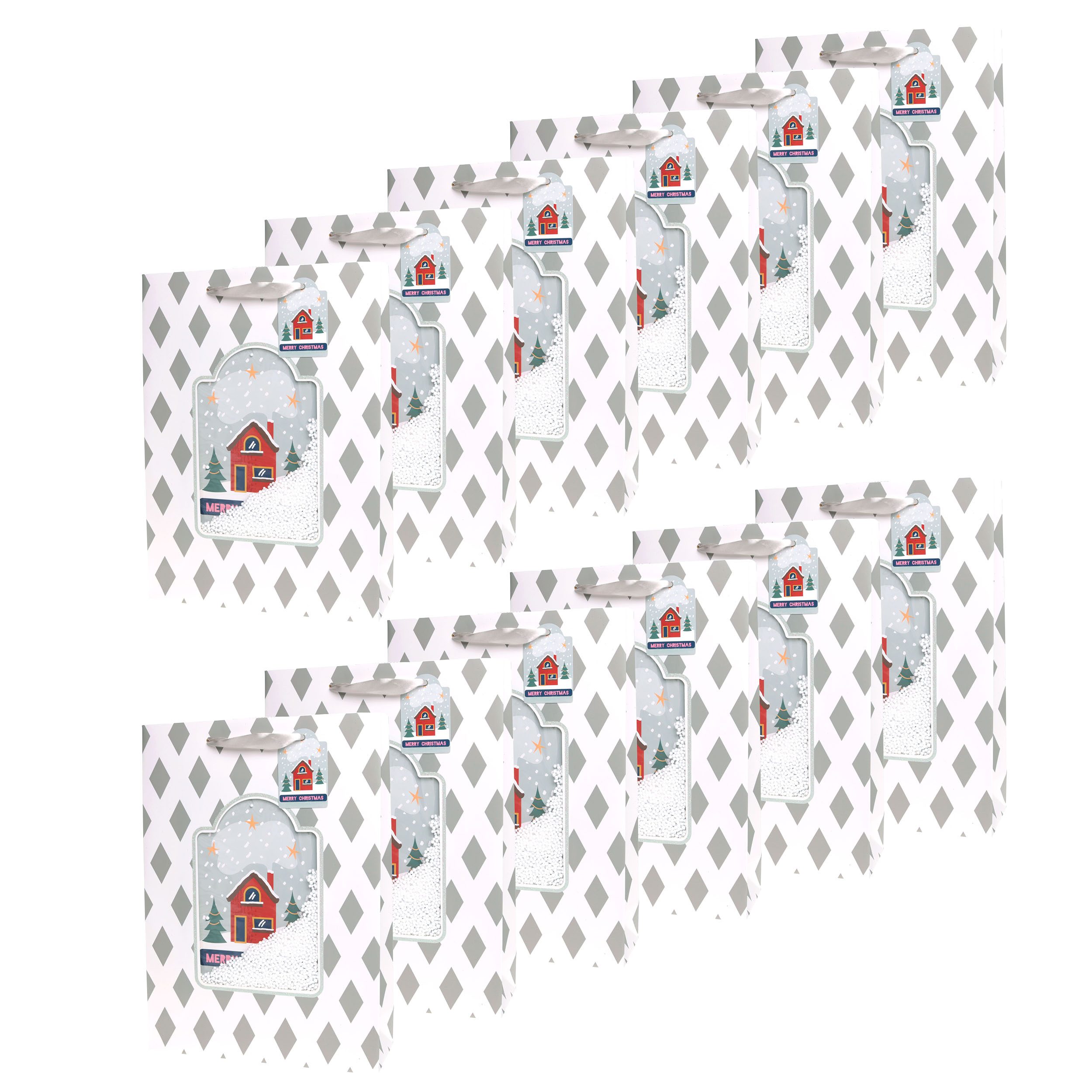 Entdecken Sie unsere unbeschreiblich schönen Geschenktüten aus hochwertigem Papier, perfekt geeignet für Weihnachten. Jede Tüte kommt mit einem passenden Geschenkanhänger, auf dem Sie persönliche Grußbotschaften hinterlassen können. Die Geschenkanhänger sind farblich abgestimmt und die Tragegriffe bestehen aus elegantem Organzaband. Das Besondere an diesen Weihnachtsgeschenktüten ist das integrierte 3-D-Sichtfenster, durch das Sie entweder eine Tanne oder ein Haus sehen können. Zudem sind in diesem Fenster Kunststoff-Schnee-Mikroperlen eingearbeitet, die sich beim Bewegen der Tüte im Fenster bewegen. Diese kunstvoll gestalteten Weihnachtstüten sind in zwei Motiven und zwei Größen erhältlich und eignen sich perfekt für Ihre bezaubernden Geschenke. Machen Sie Ihre Präsente zu etwas ganz Besonderem mit unseren einzigartigen Weihnachtstüten.