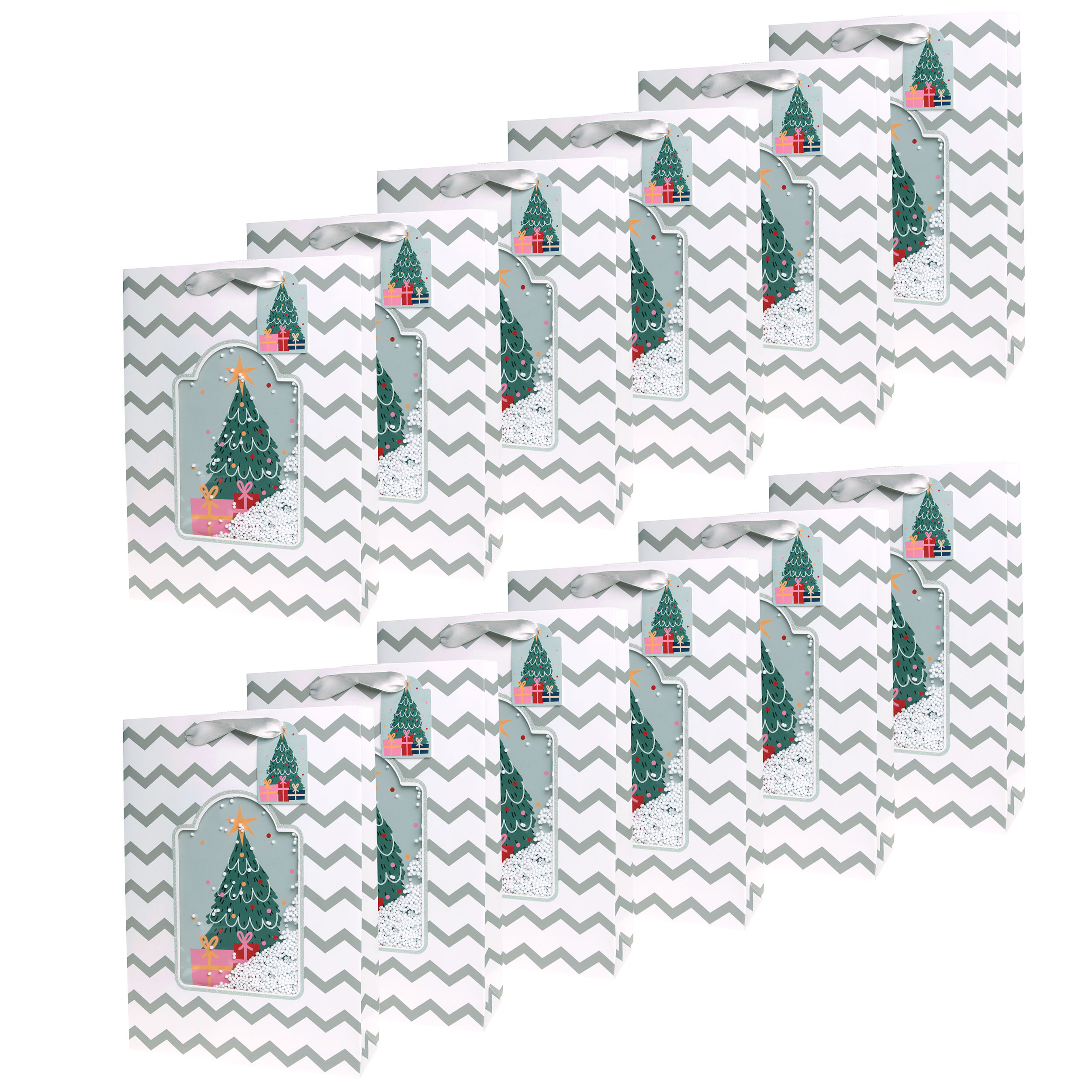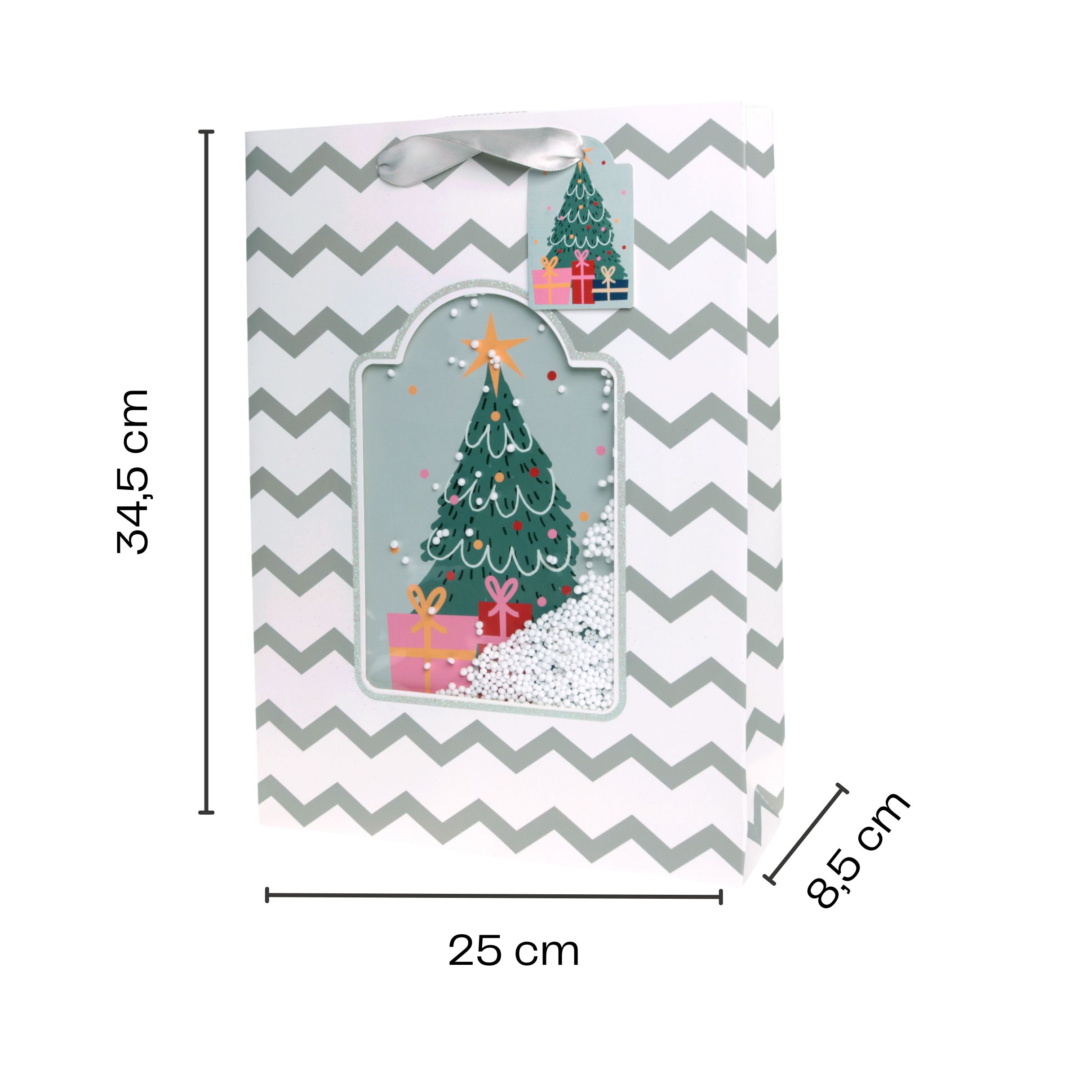 Entdecken Sie unsere unbeschreiblich schönen Geschenktüten aus hochwertigem Papier, perfekt geeignet für Weihnachten. Jede Tüte kommt mit einem passenden Geschenkanhänger, auf dem Sie persönliche Grußbotschaften hinterlassen können. Die Geschenkanhänger sind farblich abgestimmt und die Tragegriffe bestehen aus elegantem Organzaband. Das Besondere an diesen Weihnachtsgeschenktüten ist das integrierte 3-D-Sichtfenster, durch das Sie entweder eine Tanne oder ein Haus sehen können. Zudem sind in diesem Fenster Kunststoff-Schnee-Mikroperlen eingearbeitet, die sich beim Bewegen der Tüte im Fenster bewegen. Diese kunstvoll gestalteten Weihnachtstüten sind in zwei Motiven und zwei Größen erhältlich und eignen sich perfekt für Ihre bezaubernden Geschenke. Machen Sie Ihre Präsente zu etwas ganz Besonderem mit unseren einzigartigen Weihnachtstüten.
