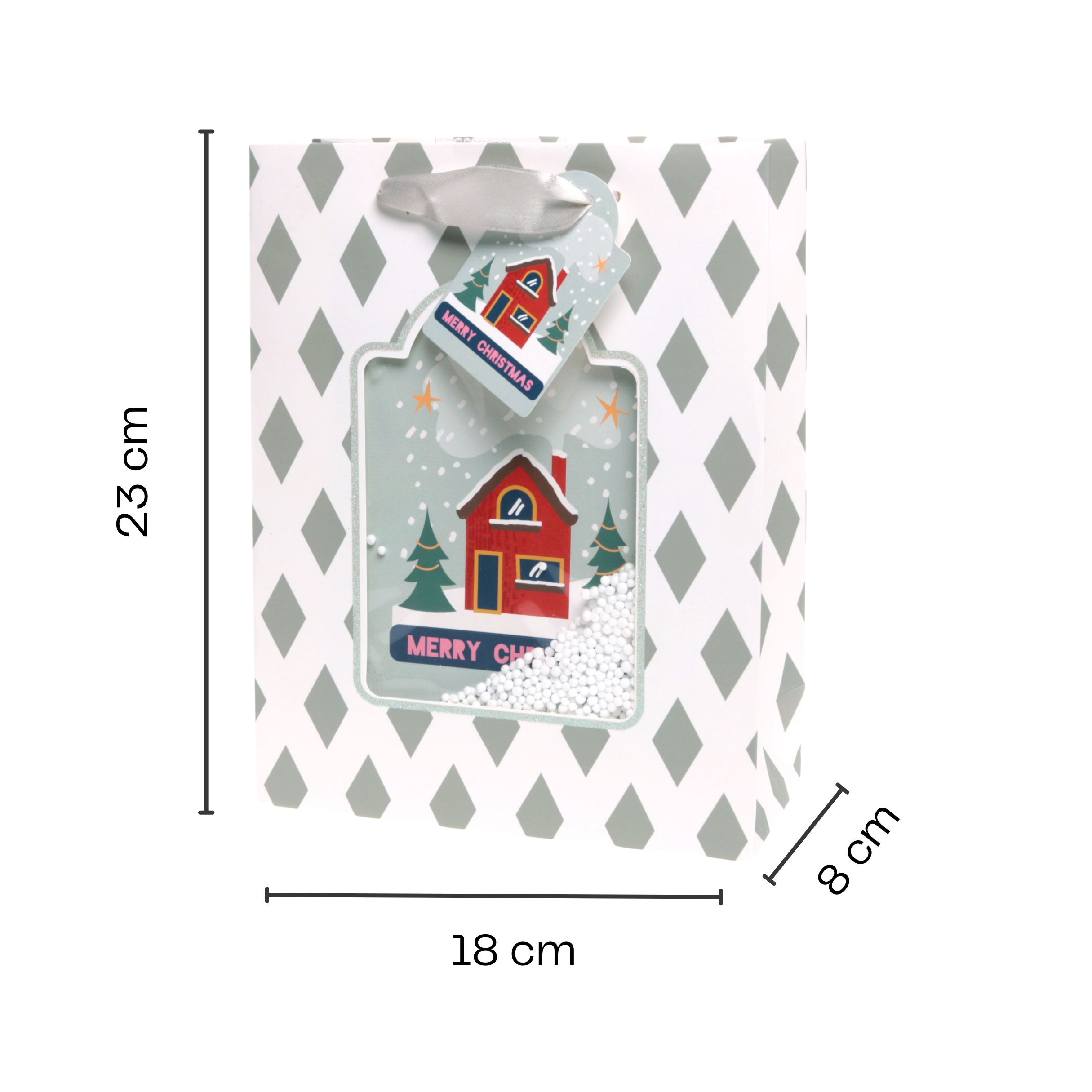 Produktinformationen "Geschenktüten Weihnachten mit 3-D-Sichtfenster und Kunstschnee"