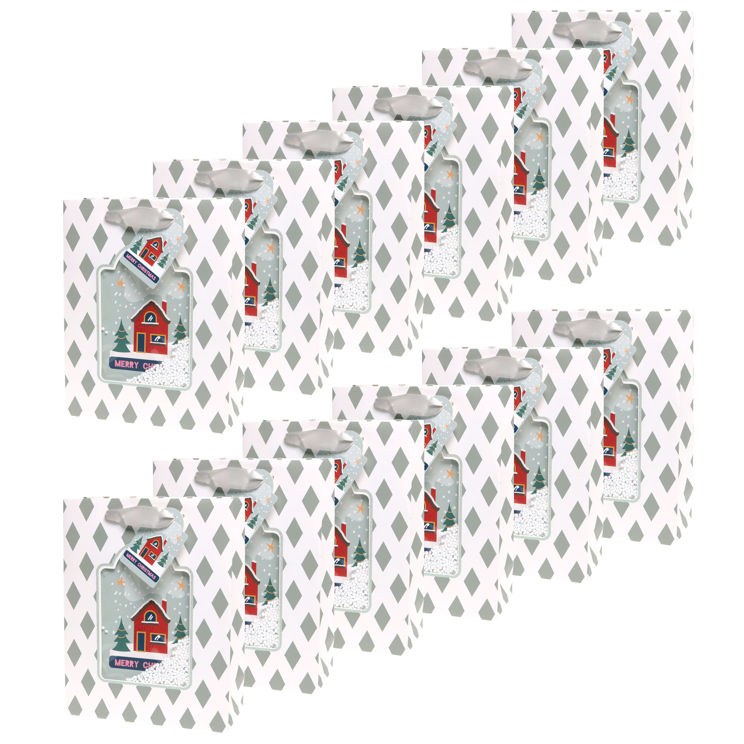 Entdecken Sie unsere unbeschreiblich schönen Geschenktüten aus hochwertigem Papier, perfekt geeignet für Weihnachten. Jede Tüte kommt mit einem passenden Geschenkanhänger, auf dem Sie persönliche Grußbotschaften hinterlassen können. Die Geschenkanhänger sind farblich abgestimmt und die Tragegriffe bestehen aus elegantem Organzaband. Das Besondere an diesen Weihnachtsgeschenktüten ist das integrierte 3-D-Sichtfenster, durch das Sie entweder eine Tanne oder ein Haus sehen können. Zudem sind in diesem Fenster Kunststoff-Schnee-Mikroperlen eingearbeitet, die sich beim Bewegen der Tüte im Fenster bewegen. Diese kunstvoll gestalteten Weihnachtstüten sind in zwei Motiven und zwei Größen erhältlich und eignen sich perfekt für Ihre bezaubernden Geschenke. Machen Sie Ihre Präsente zu etwas ganz Besonderem mit unseren einzigartigen Weihnachtstüten.