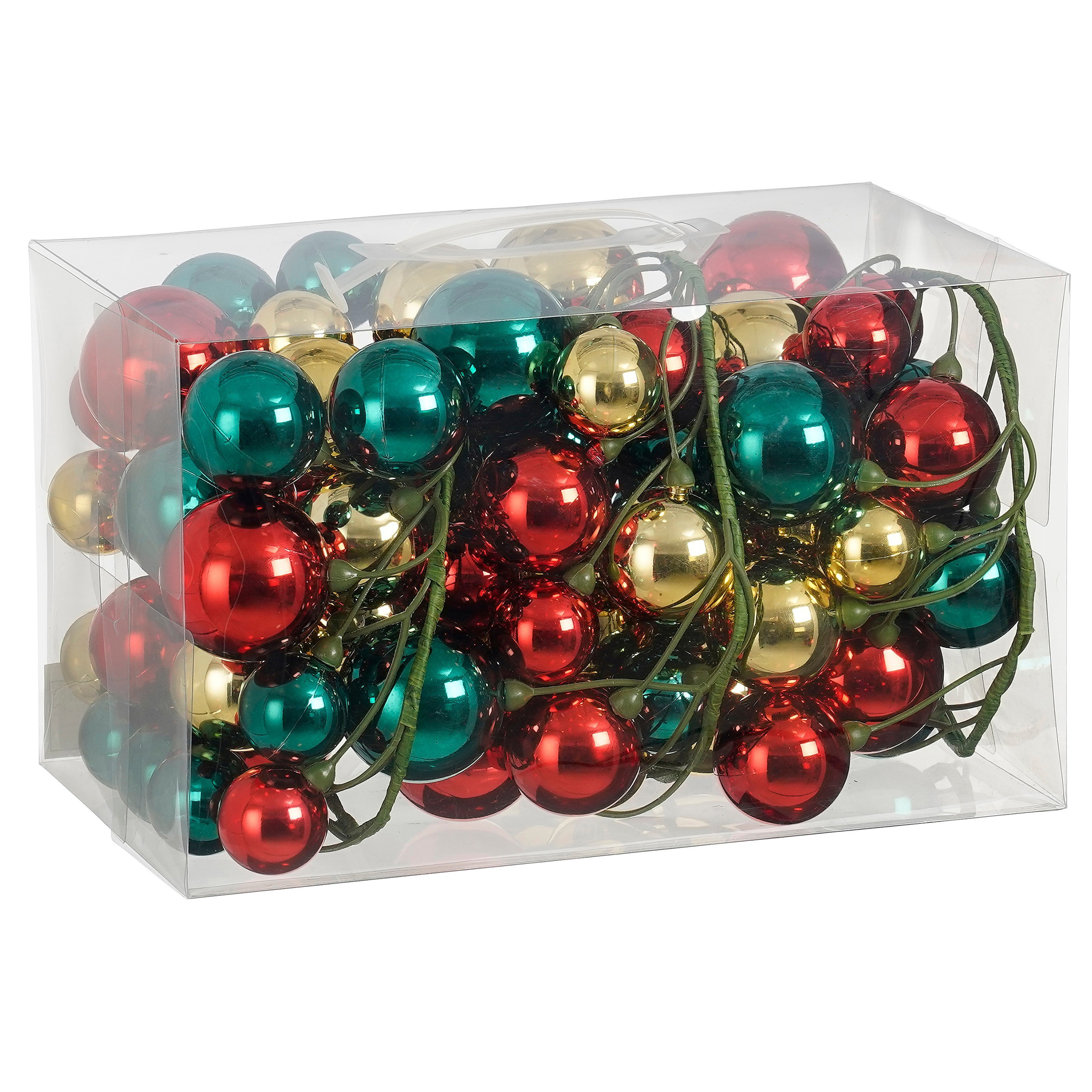 Diese bezaubernde Weihnachtsgirlande mit einer beeindruckenden Länge von 1180 cm verleiht jedem Raum oder Außenbereich festlichen Glanz und eine stimmungsvolle Atmosphäre. Die Girlande ist liebevoll mit kleinen Weihnachtskugeln in verschiedenen Oberflächen gestaltet – glänzend, matt sowie mit funkelndem Glittereffekt –, wodurch sie besonders vielseitig und ansprechend wirkt. Dank des hochwertigen Materials ist die Girlande nicht nur für den Innenbereich, sondern auch für den Außenbereich bestens geeignet und trotzt somit problemlos winterlichen Witterungsbedingungen. Ob zur Dekoration von Fenstern, Treppen, Geländern oder als festlicher Akzent im Garten: Dieses dekorative Element bringt weihnachtliche Freude und eleganten Charme in jede Umgebung. Ein unverzichtbarer Blickfang für die festliche Jahreszeit!