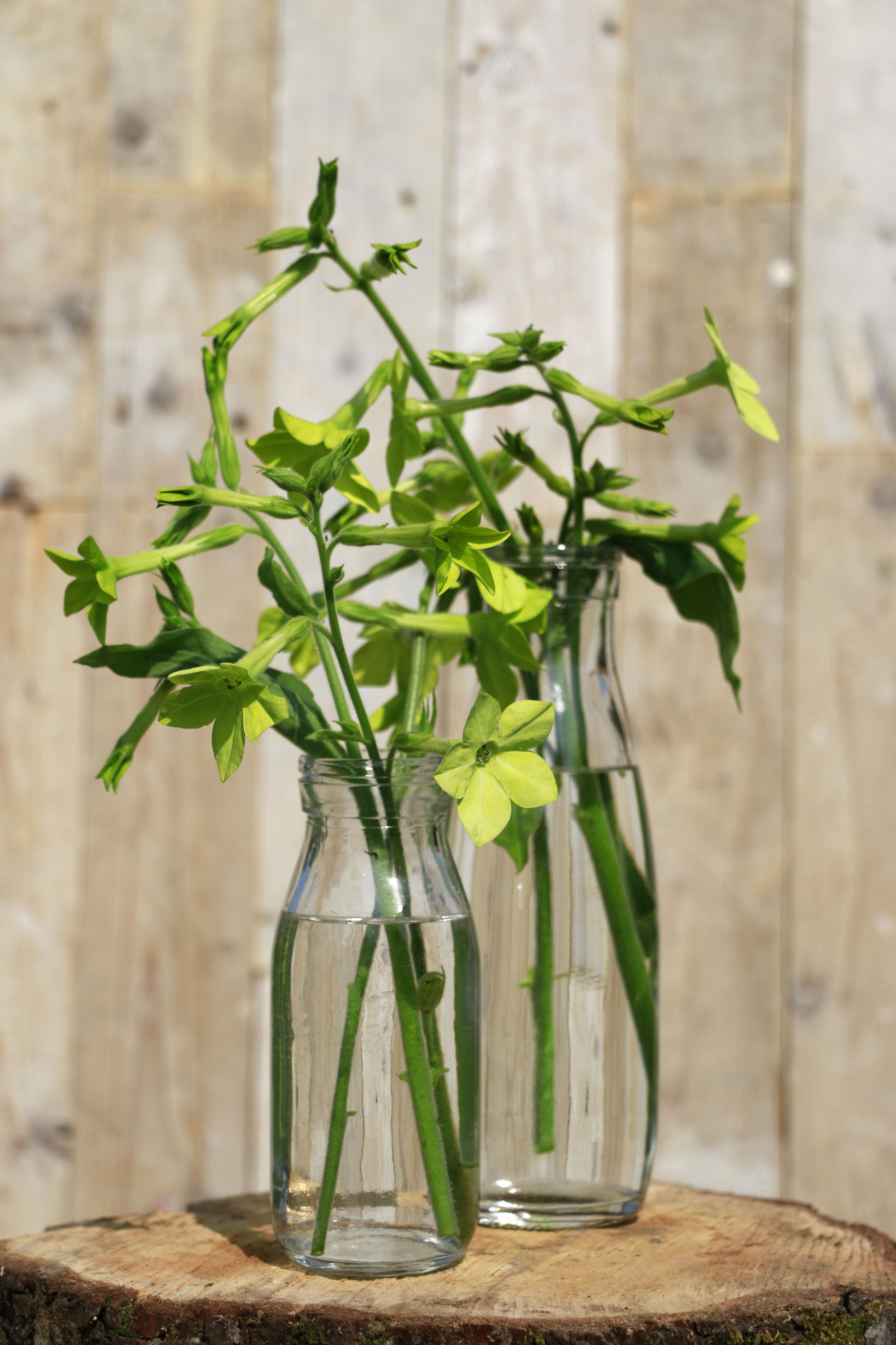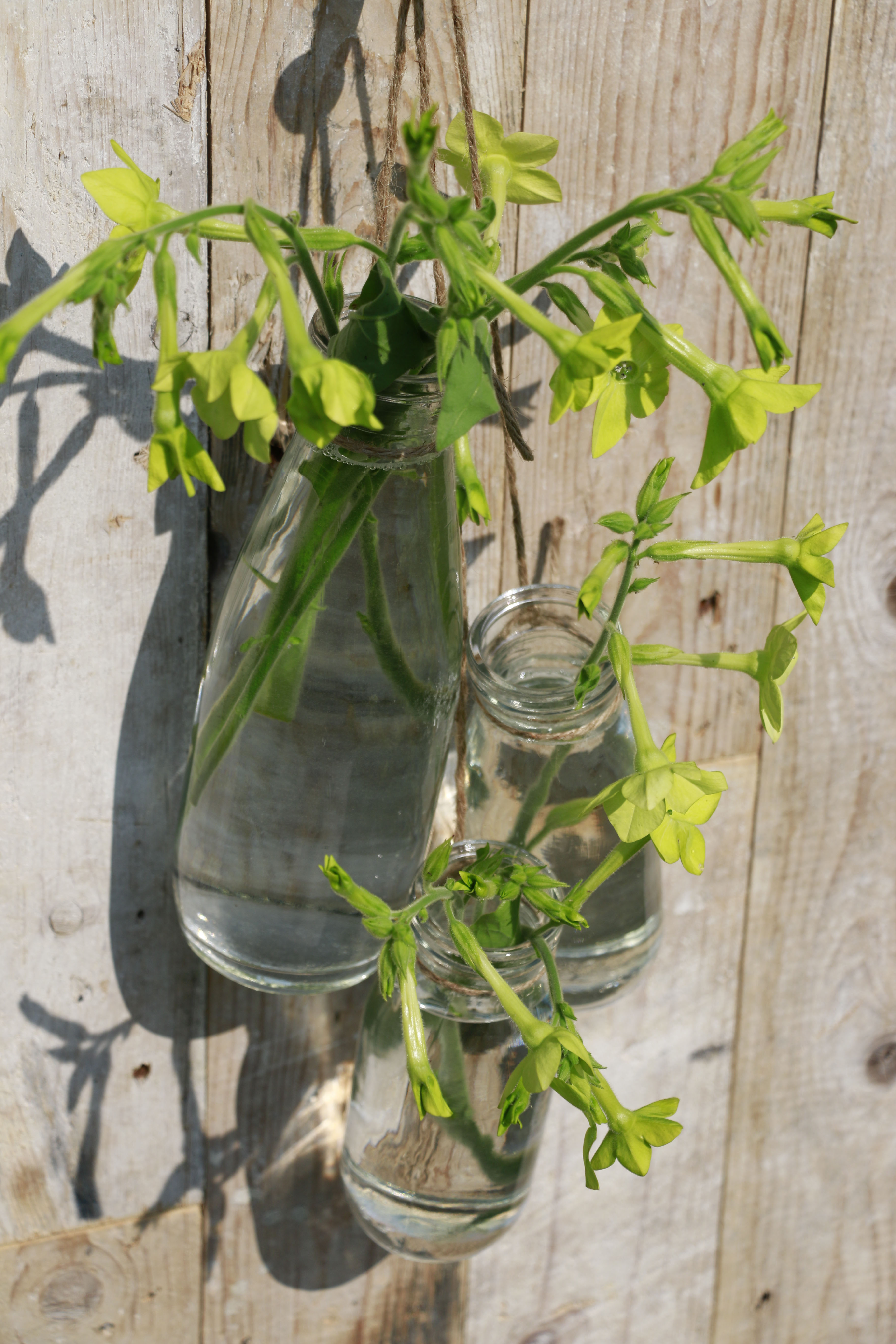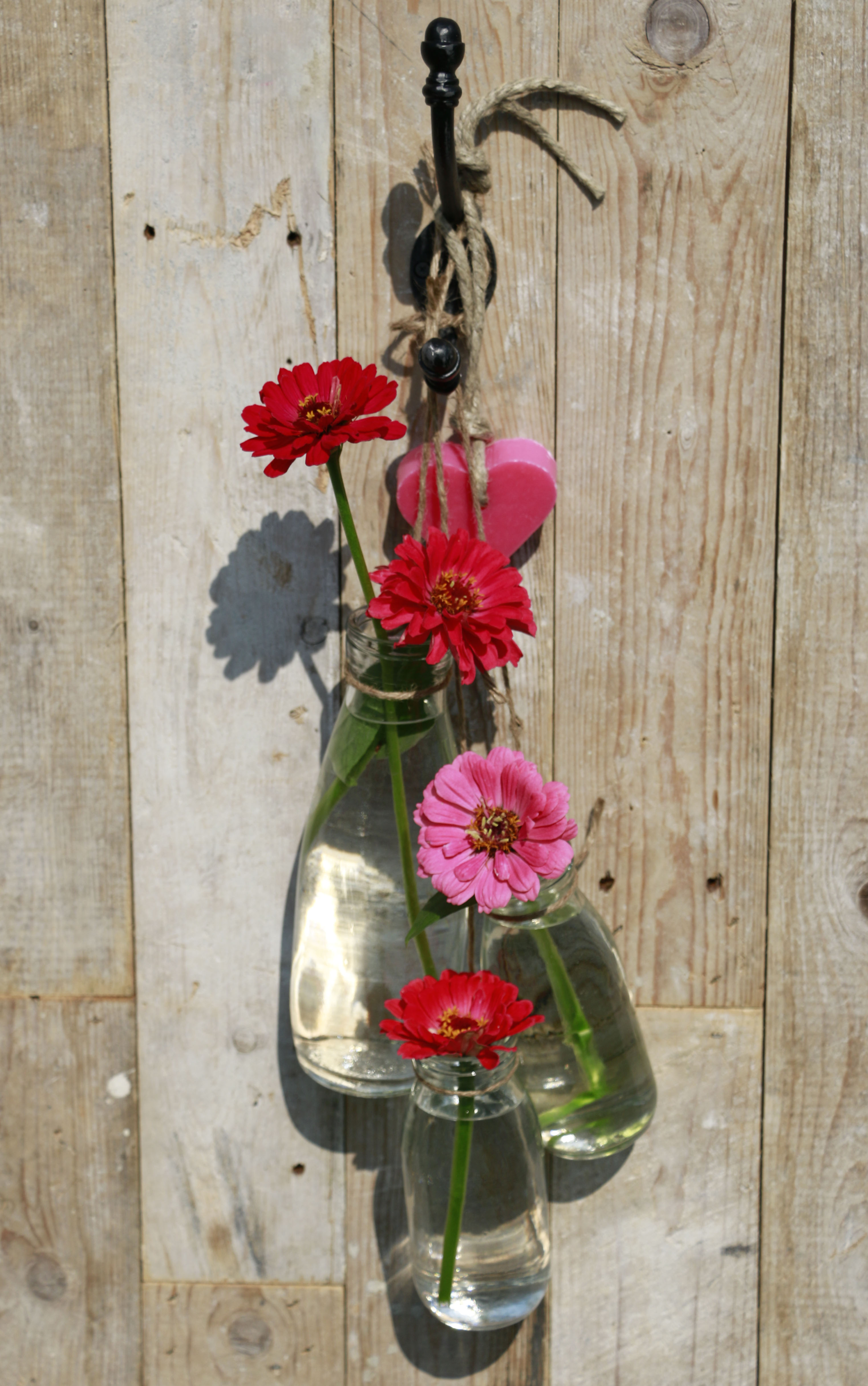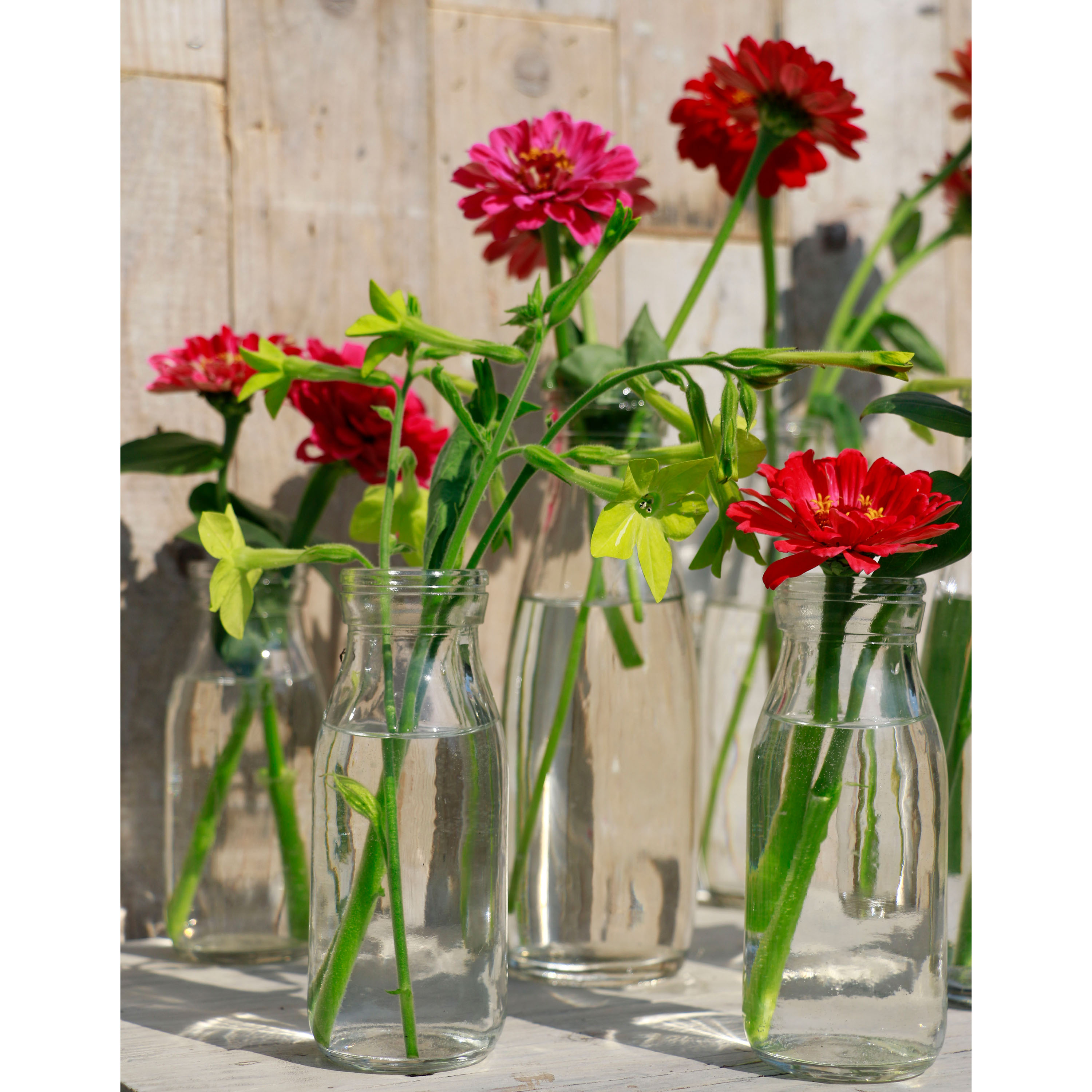 Glasflaschen im Landhausstil als hübsche Blumenvasen