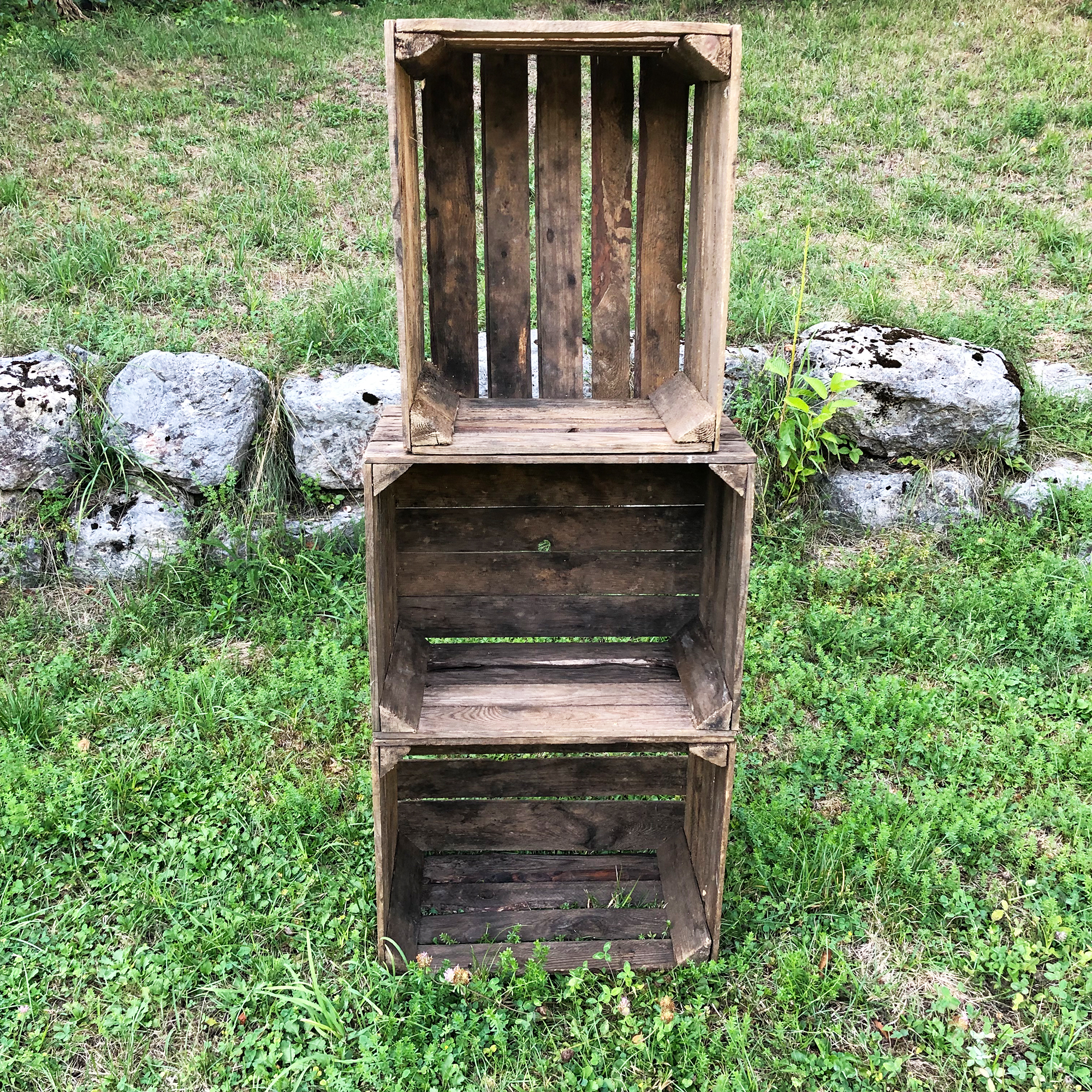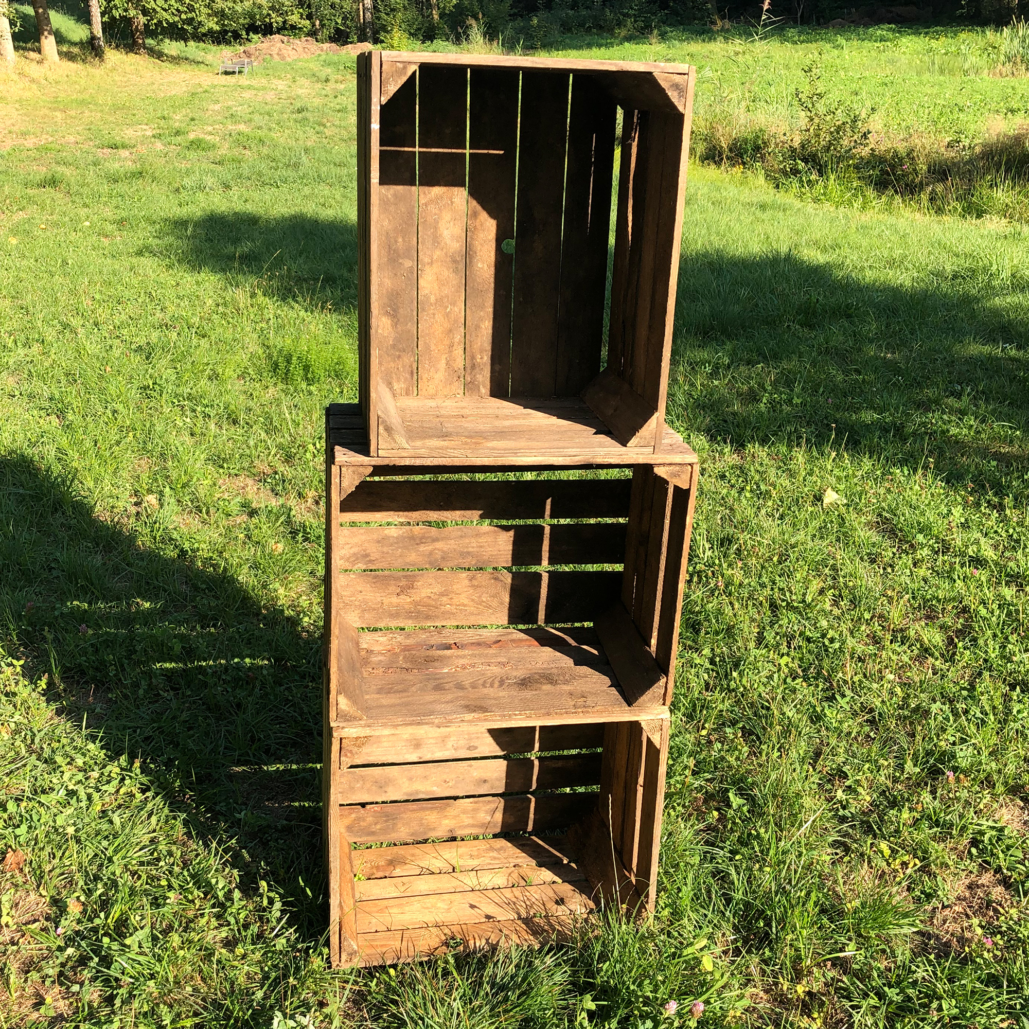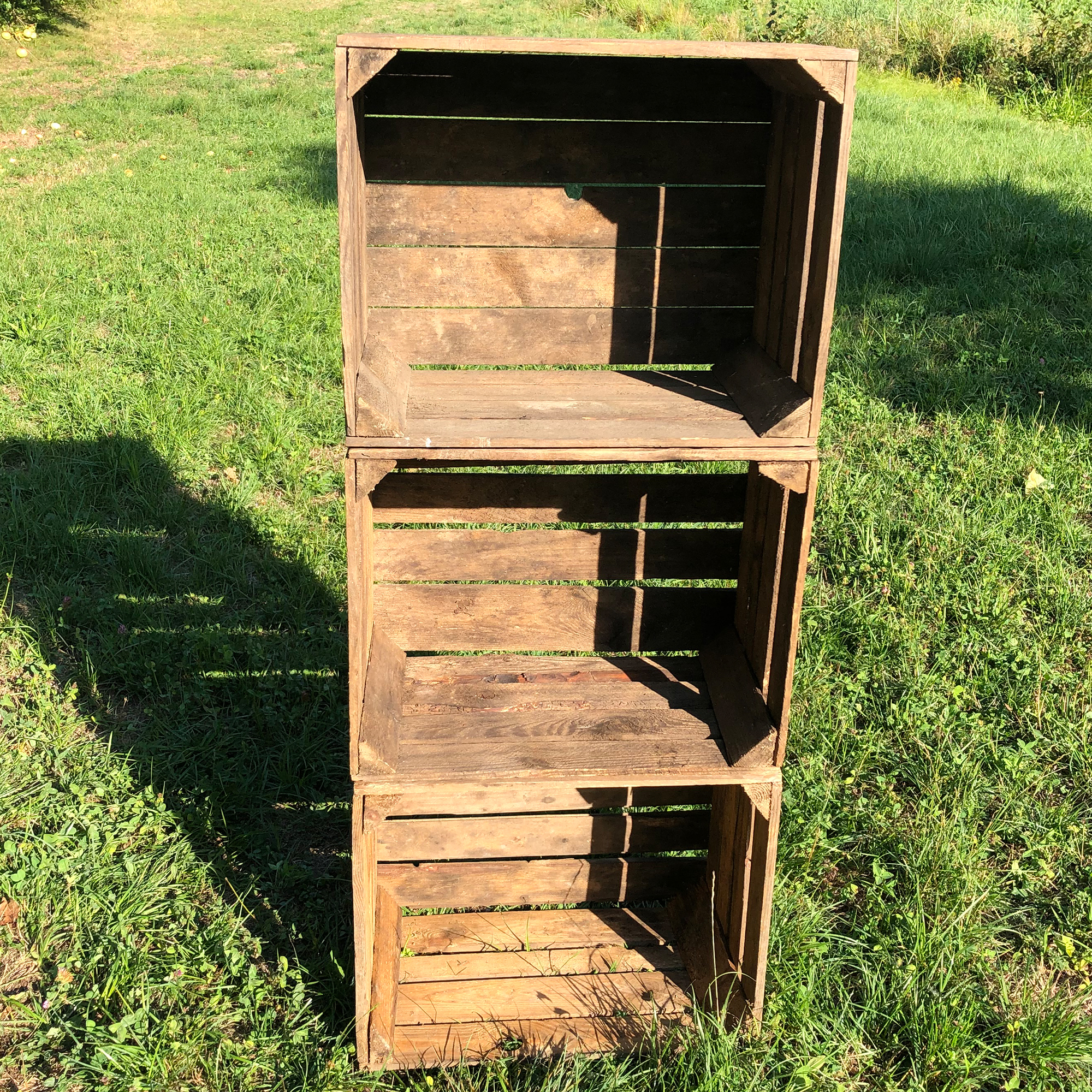 Urige und originale Obstkisten welche tatsächlich für den Obstanbau im Einsatz waren. Daher ist einfach jede Holzkiste ein echtes UNIKAT und die Kisten können in Farbe, Beschaffenheit und auch in der Größe minimal variieren. Die Kisten werden nach Lieferung sortiert und gereinigt, nicht jedes Staubkorn wird entfernt, wir geben uns aber die größte Mühe nahezu alle Rückstände zu beseitigen. Die Kisten aus nachhaltigem und massiven Kiefernholz bieten eine Vielzahl von Möglichkeiten, lassen Sie Ihrer Fantansie freien Lauf. Die Vintage-Kisten sind praktisch als Aufbewahrungsboxen für Schallplatten, Weinflaschen u.v.m. Ideal zum Möbelbau, als Schuhschrank im Flur, Weinkisten-Regal oder auch als Couchtisch. Stylisch als individuelles Vintage Möbelstück im Shabby-Chic-Look ein toller Eyecatcher, auch als Transportbox oder zur Aufbewahrung ideal.