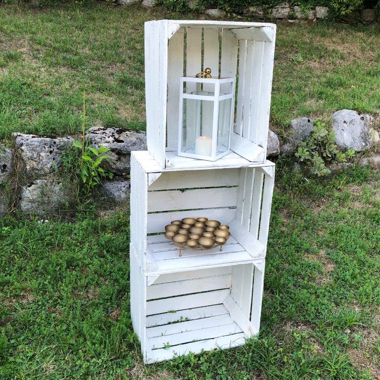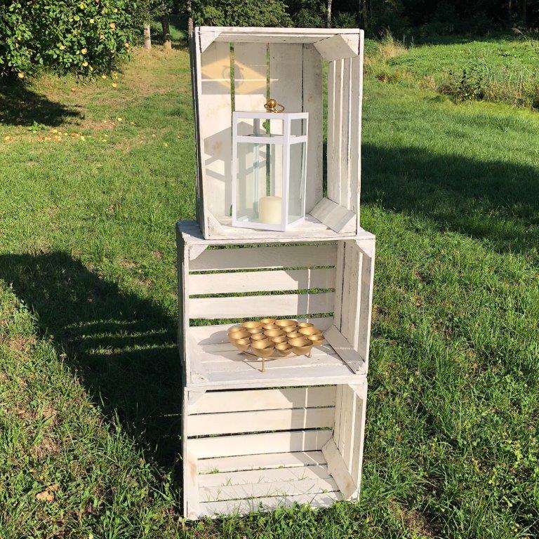 Urige und originale Obstkisten welche tatsächlich für den Obstanbau im Einsatz waren. Daher ist einfach jede Holzkiste ein echtes UNIKAT und die Kisten können in Farbe, Beschaffenheit und auch in der Größe minimal variieren. Die Kisten werden nach Lieferung sortiert und gereinigt, nicht jedes Staubkorn wird entfernt, wir geben uns aber die größte Mühe nahezu alle Rückstände zu beseitigen. Die Kisten aus nachhaltigem und massivem Kiefernholz wurden weiß lackiert und passen so in Ihr tolles Interieur. Die Kisten bieten eine Vielzahl von Möglichkeiten, lassen Sie Ihrer Fantansie freien Lauf. Die Vintage-Kisten sind praktisch als Aufbewahrungsboxen für Schallplatten, Weinflaschen u.v.m. Ideal zum Möbelbau, als Schuhschrank im Flur, Weinkisten-Regal oder auch als Couchtisch. Stylisch als individuelles Vintage Möbelstück im Shabby-Chic-Look ein toller Eyecatcher, auch als Transportbox oder zur Aufbewahrung ideal.