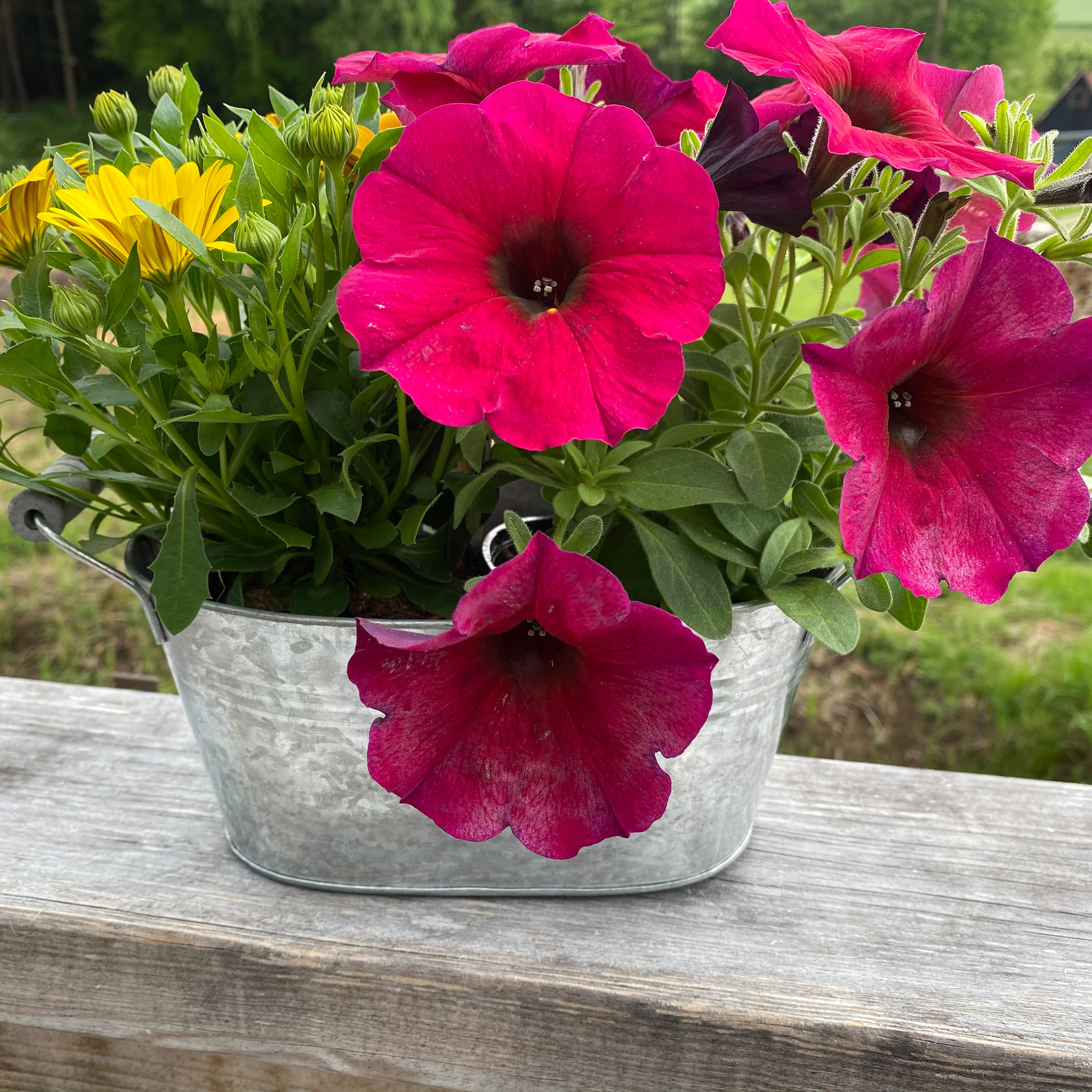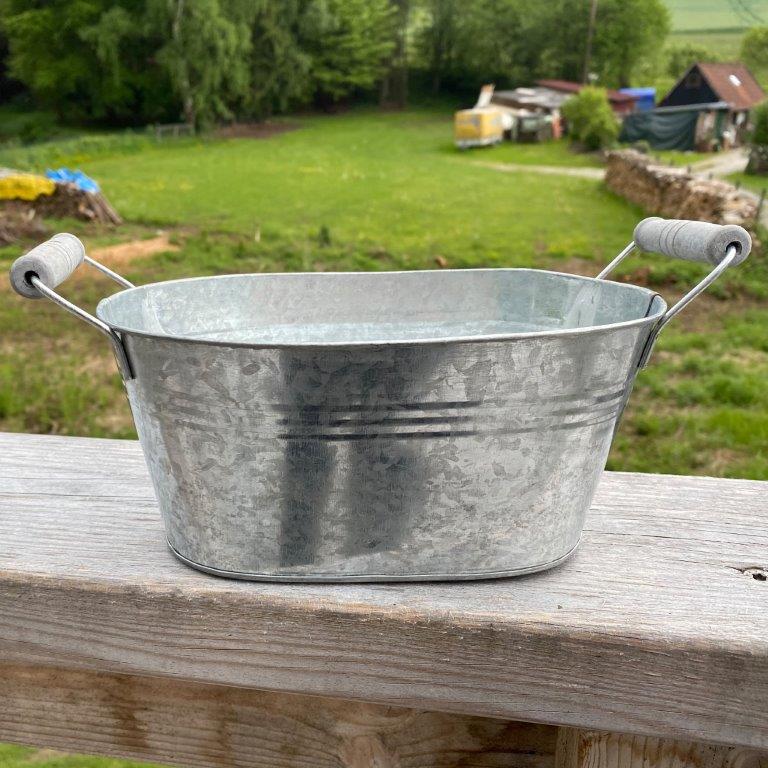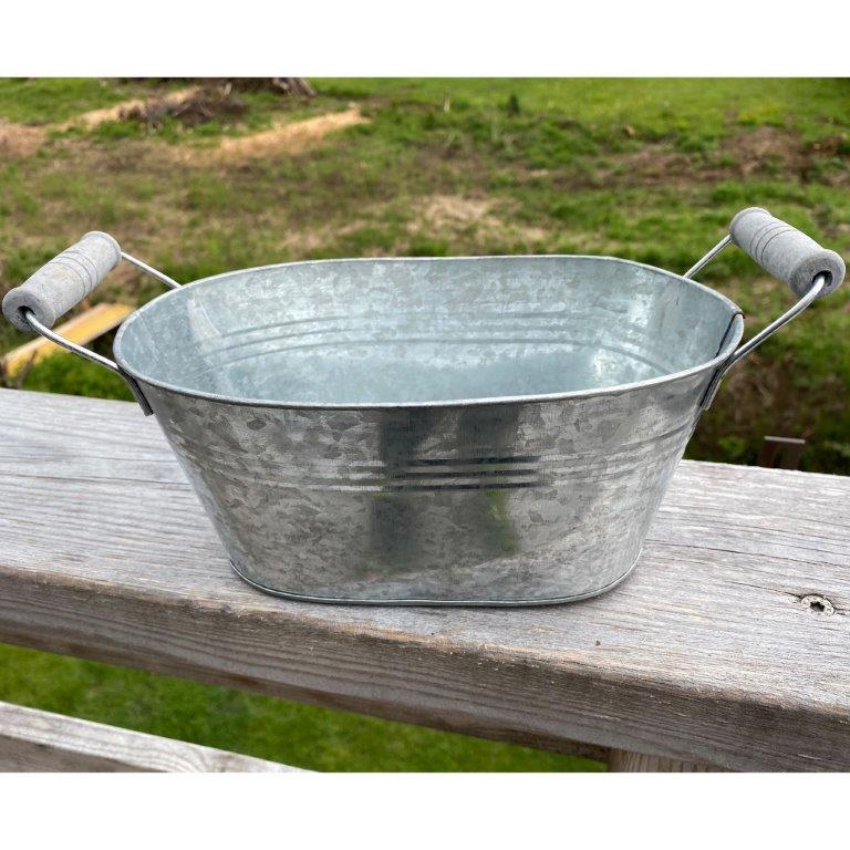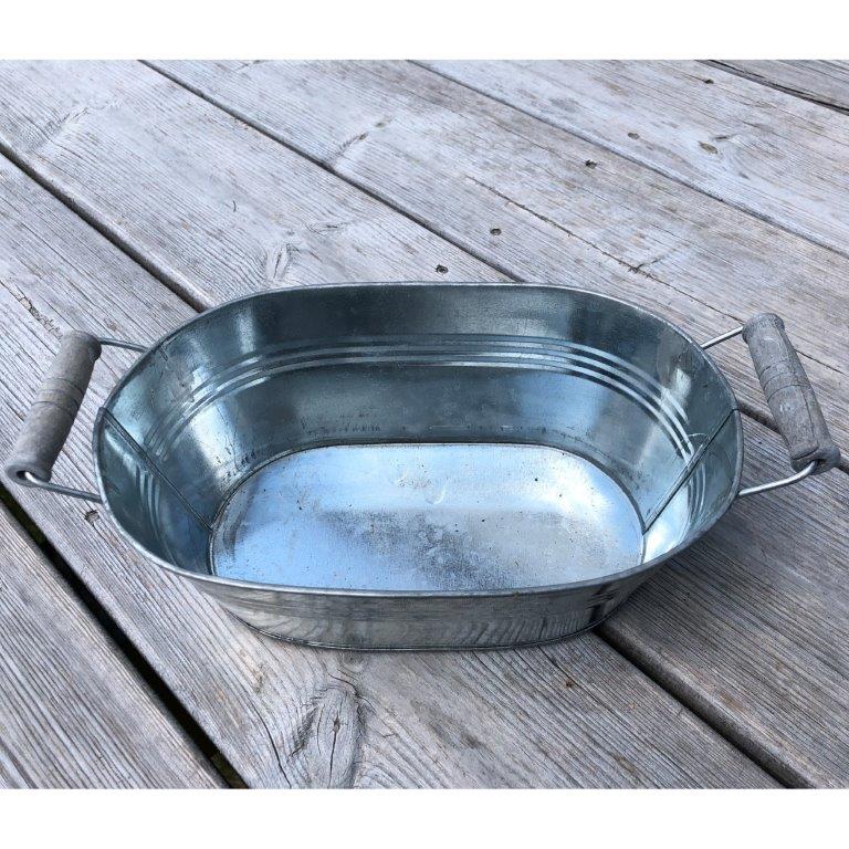 Bezaubernde Wannen aus verzinktem Metall mit Holzgriffen im Landhausstil. In verschiedenen Größen erhältlich. Wunderschön als Blumenübertopf oder als Blumenschale für echte oder künstliche Blumen. Ein besonderer Eyecatcher für Ihre Tafel bei den verschiedensten Feiern. Auch zum Bepflanzen mit verschiedenen Kräutern bestens geeignet.