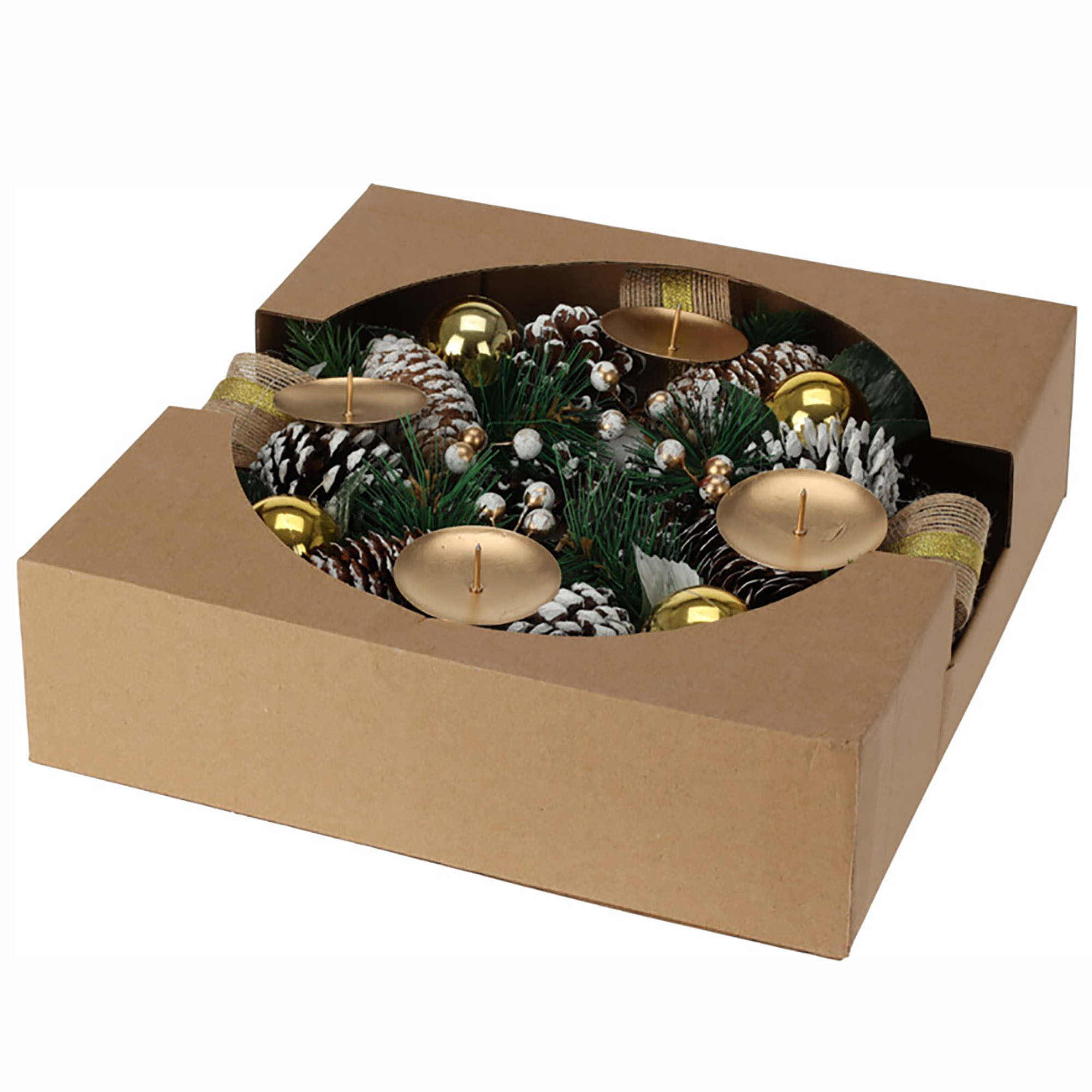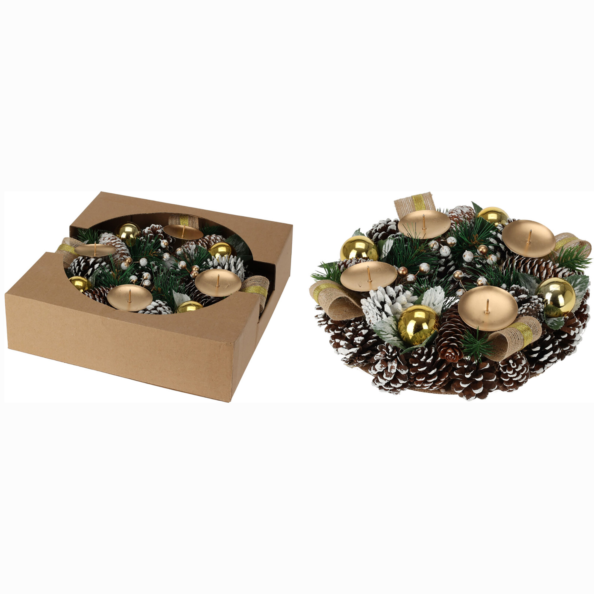 Produktinformationen "Künstlicher Adventskranz mit Kerzenhaltern fertig dekoriert"
