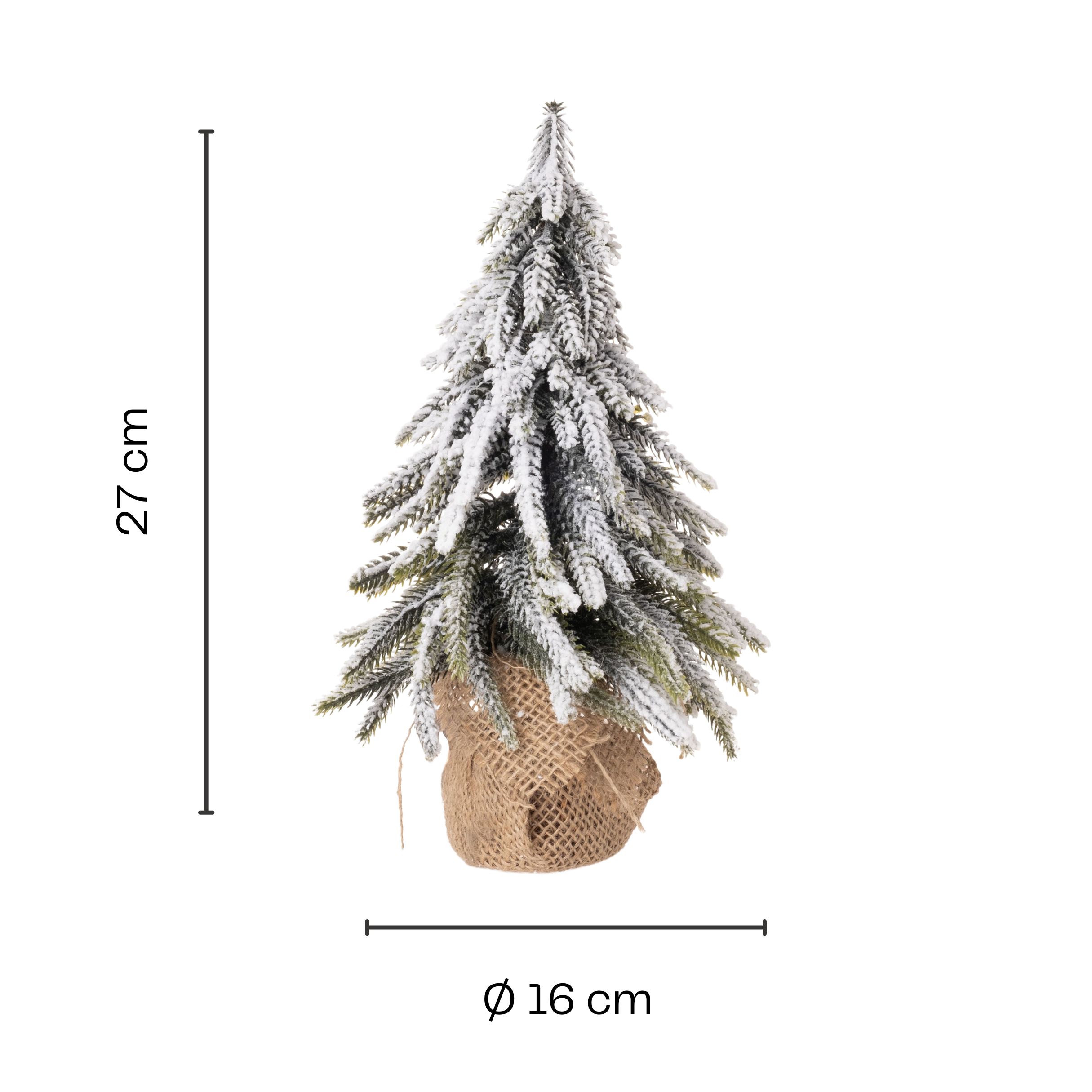 Tauche ein in die zauberhafte Welt der Weihnachtszeit mit unserem künstlichen Tannenbaum "Wintermärchen". Dieser kleine Baum ist in den Höhen 20 oder 27 cm erhältlich und eignet sich perfekt für eine stimmungsvolle Dekoration in deinem Zuhause. Die kunstvoll gestaltete Schneebeflockung verleiht ihm einen Hauch von Wintermagie und lässt ihn strahlen. Der rustikale Topf, ummantelt mit Jute, verleiht dem Baum einen nostalgischen Charme und macht ihn zu einem echten Blickfang in jedem Raum. Ob auf dem Tisch, im Regal oder als Teil deiner festlichen Tischdekoration - dieser stimmungsvolle Tannenbaum mit Schnee-Finish sorgt für eine gemütliche Atmosphäre und verbreitet die Vorfreude auf das Fest. Freue dich auf die Feiertage mit diesem bezaubernden kleinen Baum.