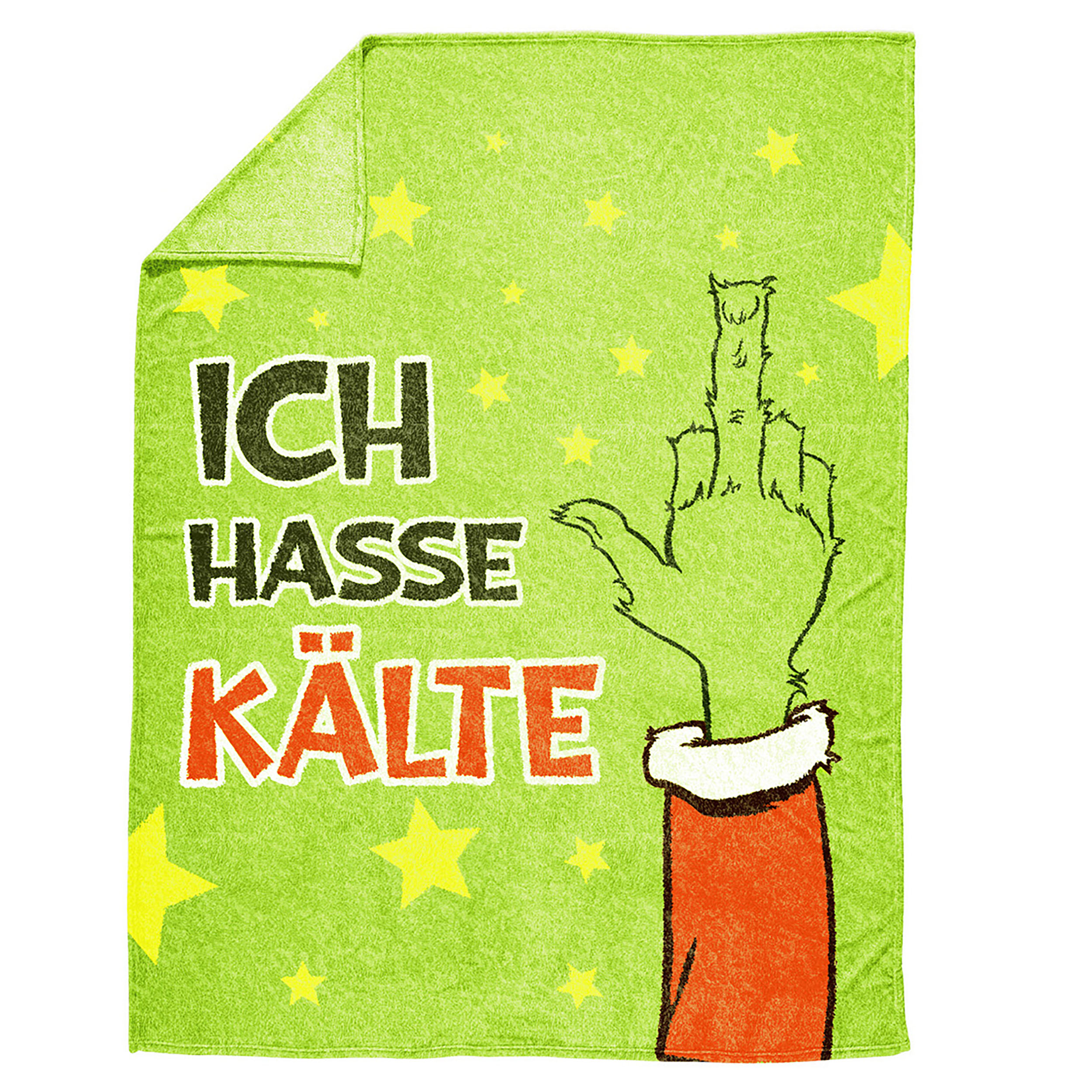 Mit unserer super frechen und witzigen Kuscheldecke mit dem bekannten Festtags-Muffel-Design wirst Du nicht nur warm eingepackt, sondern sorgst auch für jede Menge gute Laune in der kalten Jahreszeit. Diese Decke ist perfekt für alle, die Weihnachten nicht ganz so ernst nehmen und trotzdem nicht auf Gemütlichkeit verzichten wollen. Stell Dir vor, wie Du Dich an einem verschneiten Abend mit dieser megakuscheligen Decke einkuschelst und dabei ein schelmisches Lächeln im Gesicht trägst – so macht die kalte Jahreszeit gleich viel mehr Spaß. Was diese Decke wirklich einzigartig macht, ist ihr originelles Anti-Weihnachts-Design, das garantiert für Gesprächsstoff sorgt. Egal ob Du Dich selbst beschenkst oder einem lieben Menschen eine Freude machen möchtest, hier bekommst Du ein Accessoire, das sowohl durch seinen Humor als auch durch seine Qualität überzeugt. Die Decke ist in zwei coolen Modellen erhältlich, sodass Du genau das Design wählen kannst, das am besten zu Deinem Stil passt. Hergestellt aus besonders weichem und anschmiegsamem Material, ist die Kuscheldecke nicht nur ein echter Hingucker, sondern auch pflegeleicht – sie ist waschbar und behält auch nach mehreren Wäschen ihre Form und Farbe. Mit einer großzügigen Größe bietet sie ausreichend Wärme für gemütliche Stunden auf dem Sofa, beim Lesen oder einfach zum Relaxen. Ob beim Faulenzen vor dem Fernseher, beim Lesen Deines Lieblingsbuchs oder als witziges Highlight auf der Weihnachtsfeier mit Freunden – diese Decke bringt Stimmung und Komfort gleichermaßen in Dein Zuhause. Sie ist das perfekte Geschenk für alle Weihnachtsmuffel und Menschen mit Humor, die ihre eigene Art haben, die Festtage zu genießen. Vertraue auf ein Produkt, das nicht nur durch sein Design besticht, sondern auch qualitativ überzeugt. Zahlreiche begeisterte Kunden schätzen die Kombination aus Komfort, Langlebigkeit und einem frechen Statement. Warte nicht länger und sichere Dir jetzt Deine eigene Festtags-Muffel-Kuscheldecke – damit Du auch in der Weihnachtszeit entspannt bleibst und dabei noch gut aussiehst! Klick jetzt auf „In den Warenkorb“ und mach es Dir gemütlich!