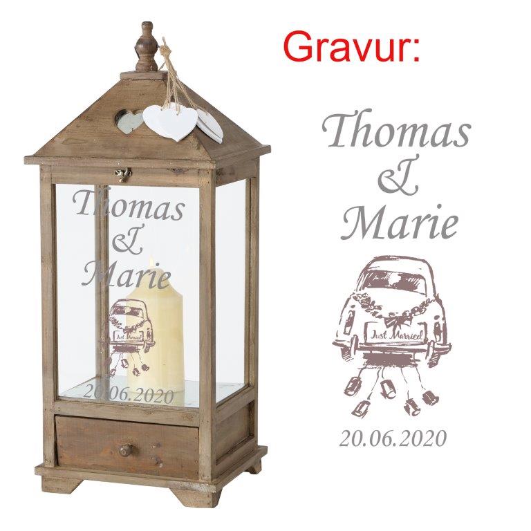 Produktinformationen "Laterne "Mirano" aus Holz mit persönlicher Gravur zur Hochzeit"