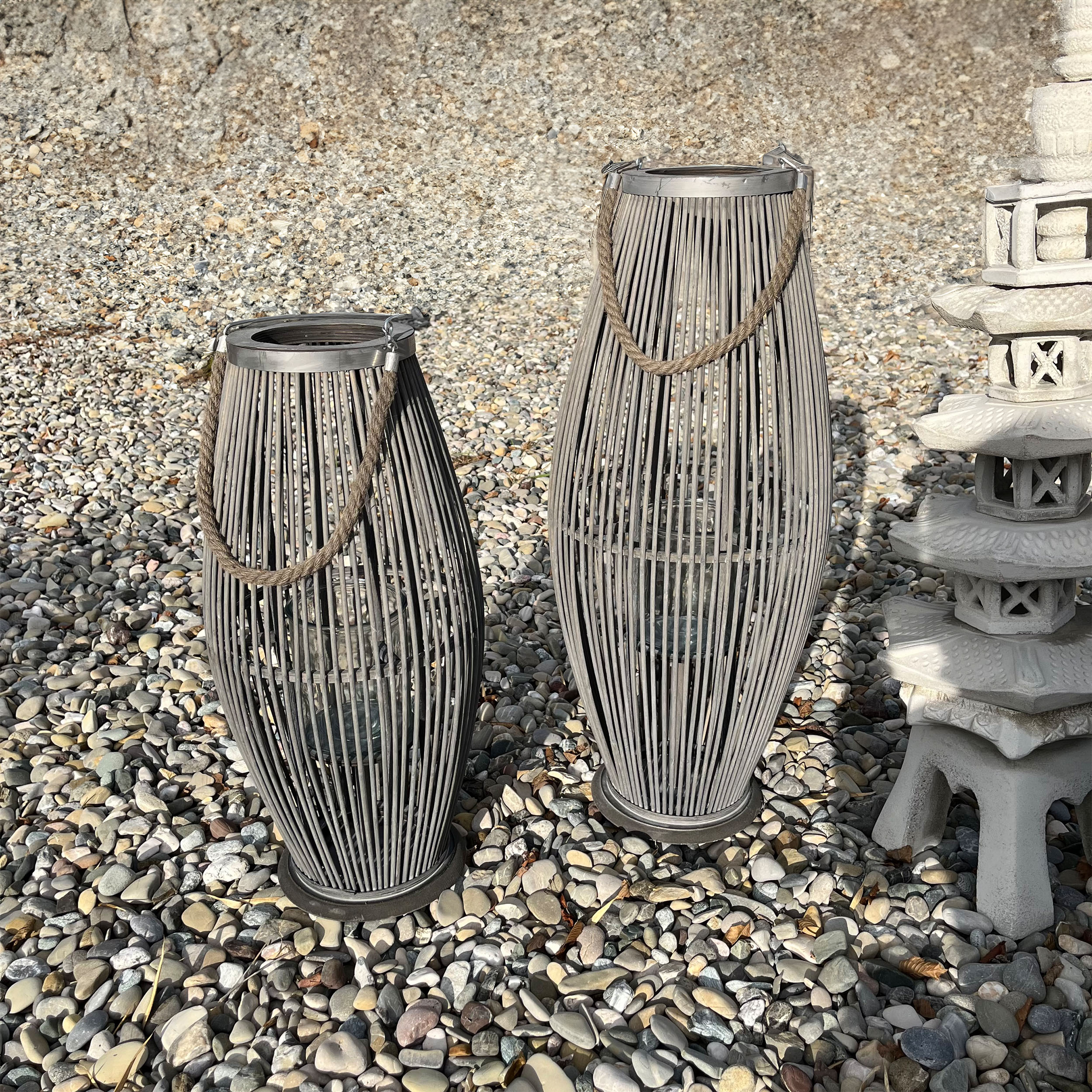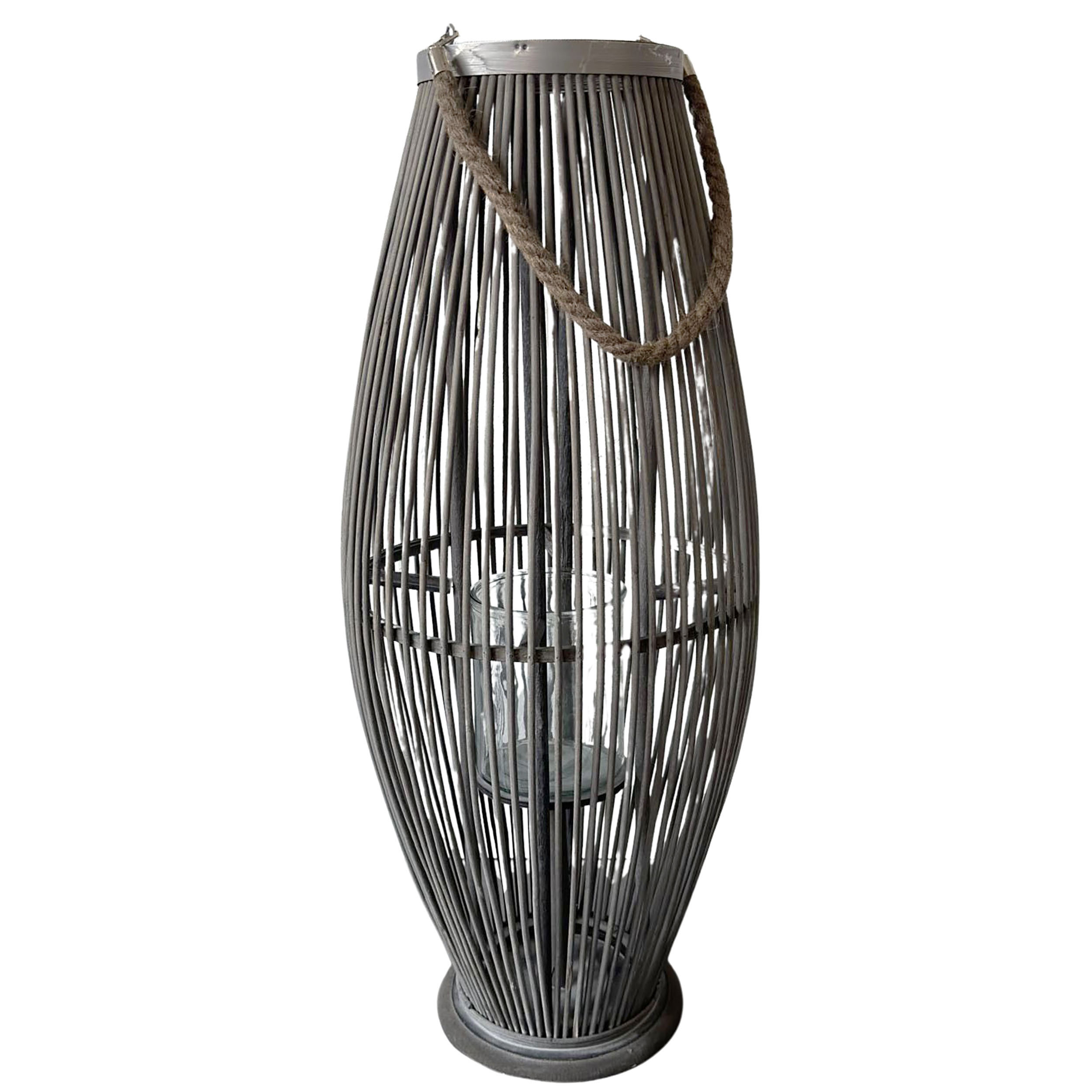 Laterne aus Bambus mit Henkel und Glaszylinder H 40 bis 74 cm