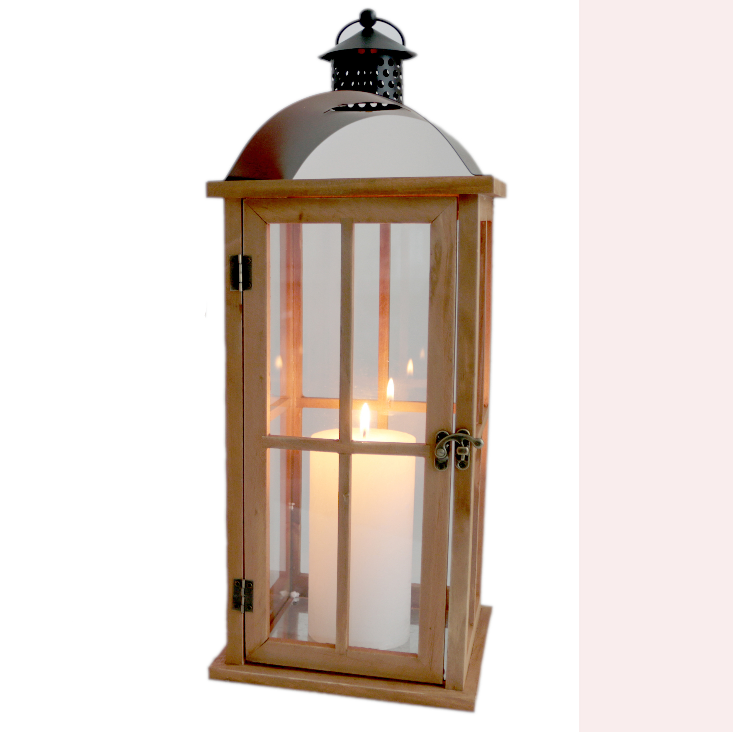 Produktinformationen "Laterne aus Holz mit Metalldach und Tragering"