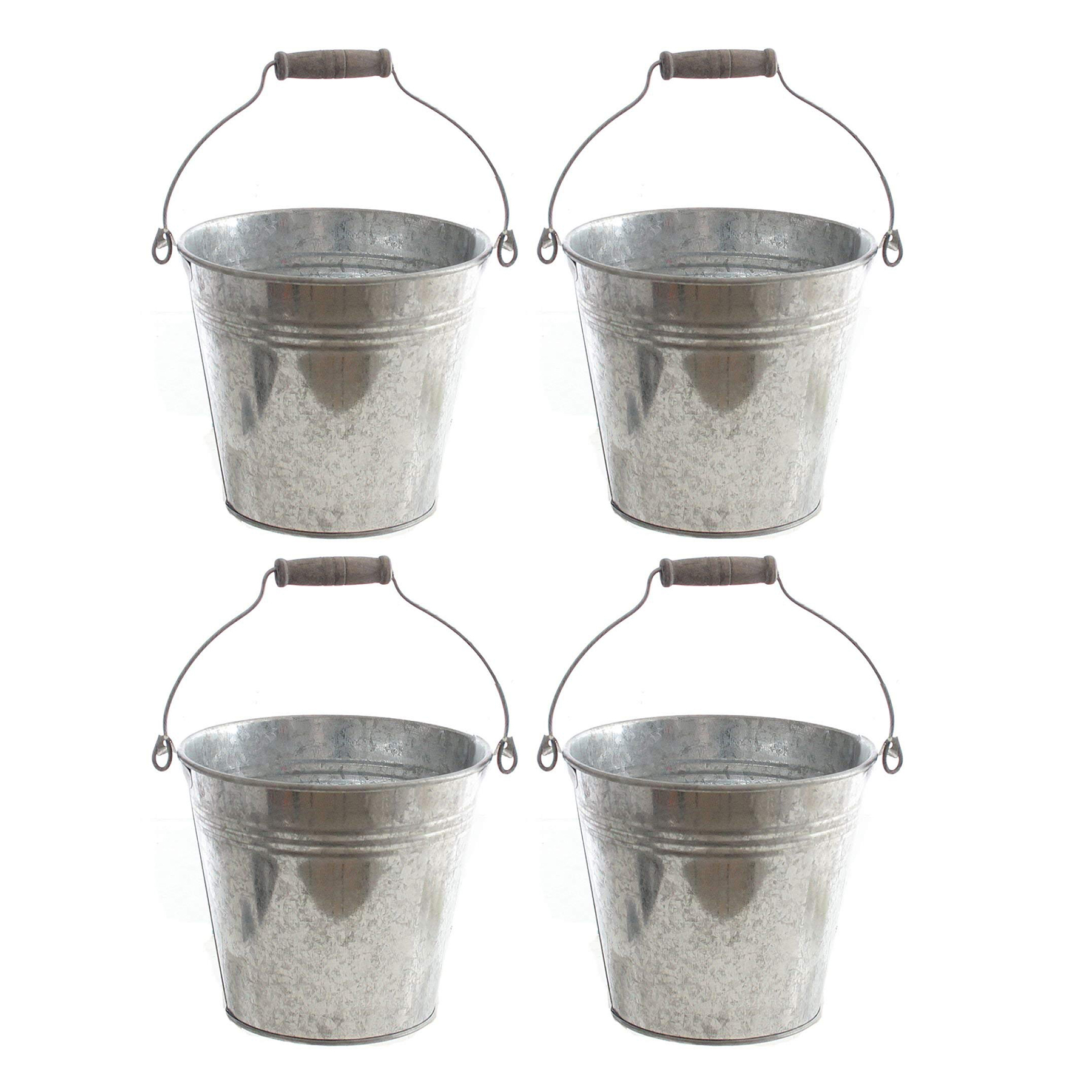 Süße Eimer mit Henkel aus verzinktem Metall. An dem Metallhenkel befindet sich ein kleiner, rustikaler Holzgriff. Der Metalleimer ist vielseitig einsetzbar, ob als Blumentopf, Übertopf oder als Windlicht mit Sand und Kerze. Ein stilvoller Eyecatcher im Garten oder Zuhause.