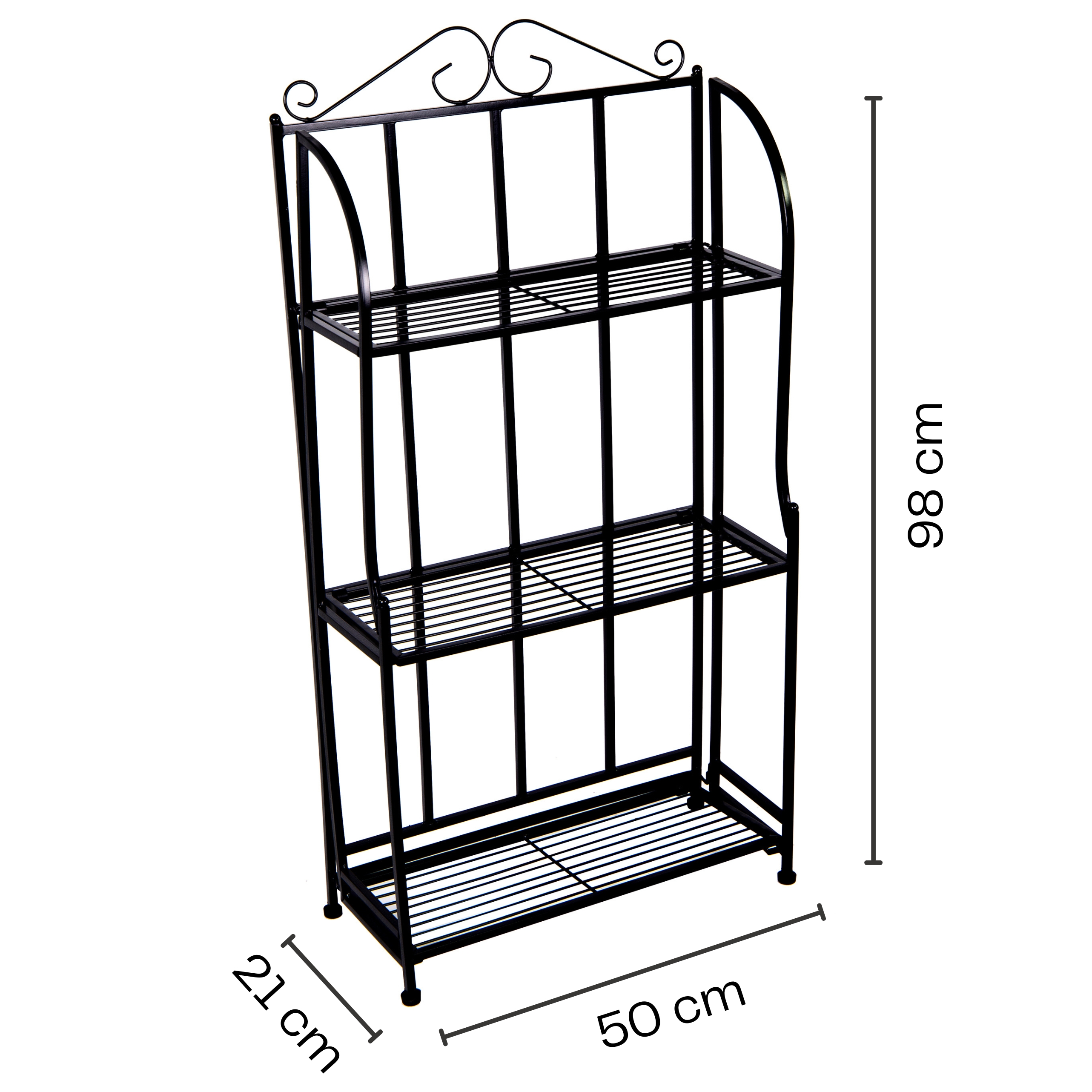 Unser stilvolles Regal "Mozart" aus Eisen im nostalgischen Vintage-Look vereint Design und Funktionalität auf höchstem Niveau. Mit seinem geschwungenen Rahmen verleiht es jedem Raum eine elegante Note und verbreitet einen Hauch von Retro-Eleganz. Das Regal ist mit zwei oder drei Ebenen erhältlich und eignet sich perfekt als Pflanztreppe für Kräuter und Blumen oder als stilvolle Ablage, drinnen oder draußen. Dank der Möglichkeit, die Regale zusammenzuklappen, sind sie auch platzsparend zu verstauen. Trotz seiner Vielseitigkeit bietet das Regal viel Stauraum und passt selbst in kleine Balkone oder schmale Flure. Die Montage ist unkompliziert und schnell erledigt, sodass du sofort die beeindruckende Wirkung dieses einzigartigen Möbelstücks genießen kannst. Gönn dir den Luxus und die Qualität unseres Retro-Metall-Regals – ein Must-Have für alle Liebhaber von exklusivem Design. Verleihe deinem Zuhause das gewisse Etwas mit unserem klappbaren Metallregal "Mozart".