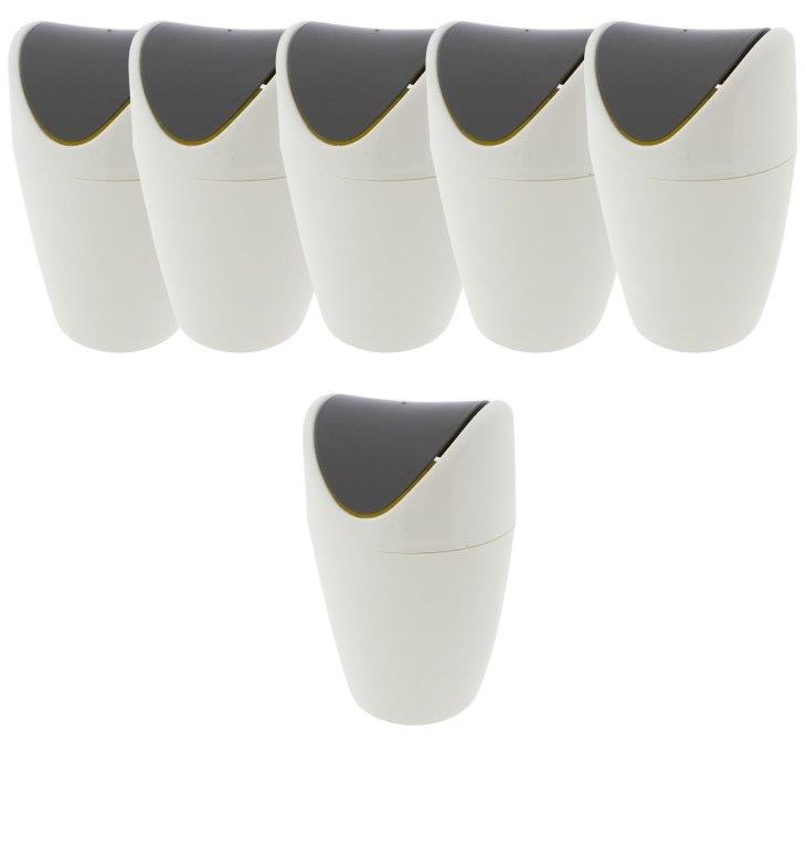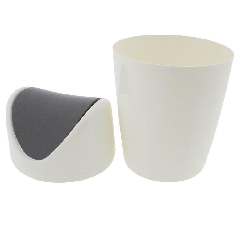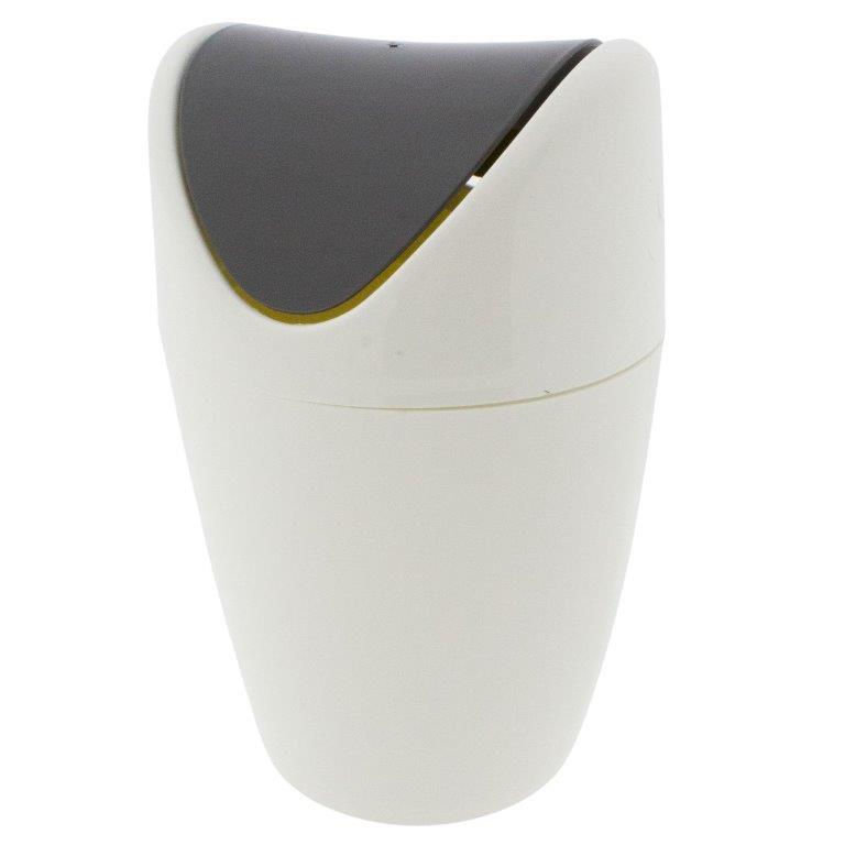 Praktischer, kleiner Abfalleimer für den gesamten Haushalt in stilvollem grau-weiß Farbton aus pflegeleichtem Kunststoff. Der komfortable Schwingdeckeleimer eignet sich für Küche, Bad und den gesamten Haushalt. Dank des Schwingdeckels bleibt der Inhalt stets verborgen, somit ist dieser kleine Abfalleimer mit Schwingdeckel auch als Tischmülleimer einfach ideal.