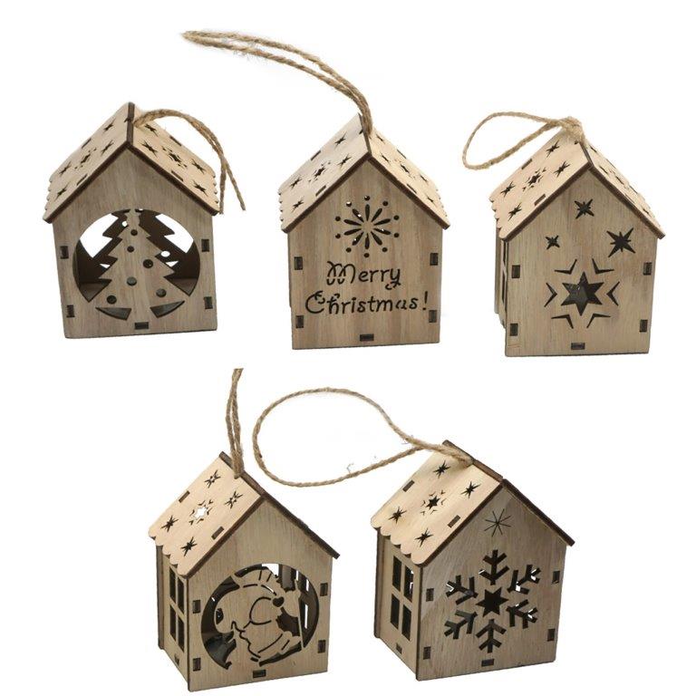 Nostalgische Weihnachtshänger aus Holz mit LED zum Hängen