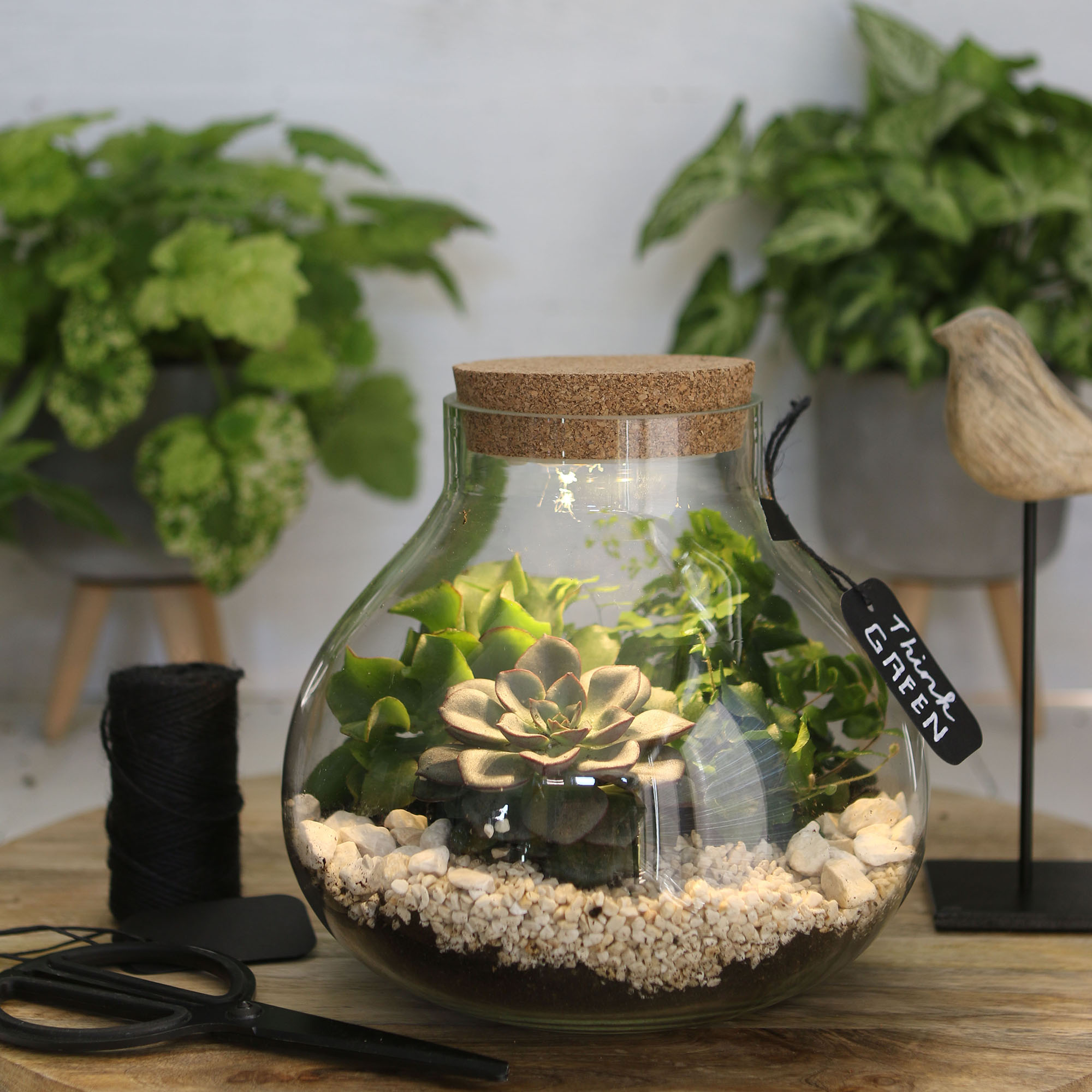 Pflanz-Terrarium mit Korken und LED-Beleuchtung
