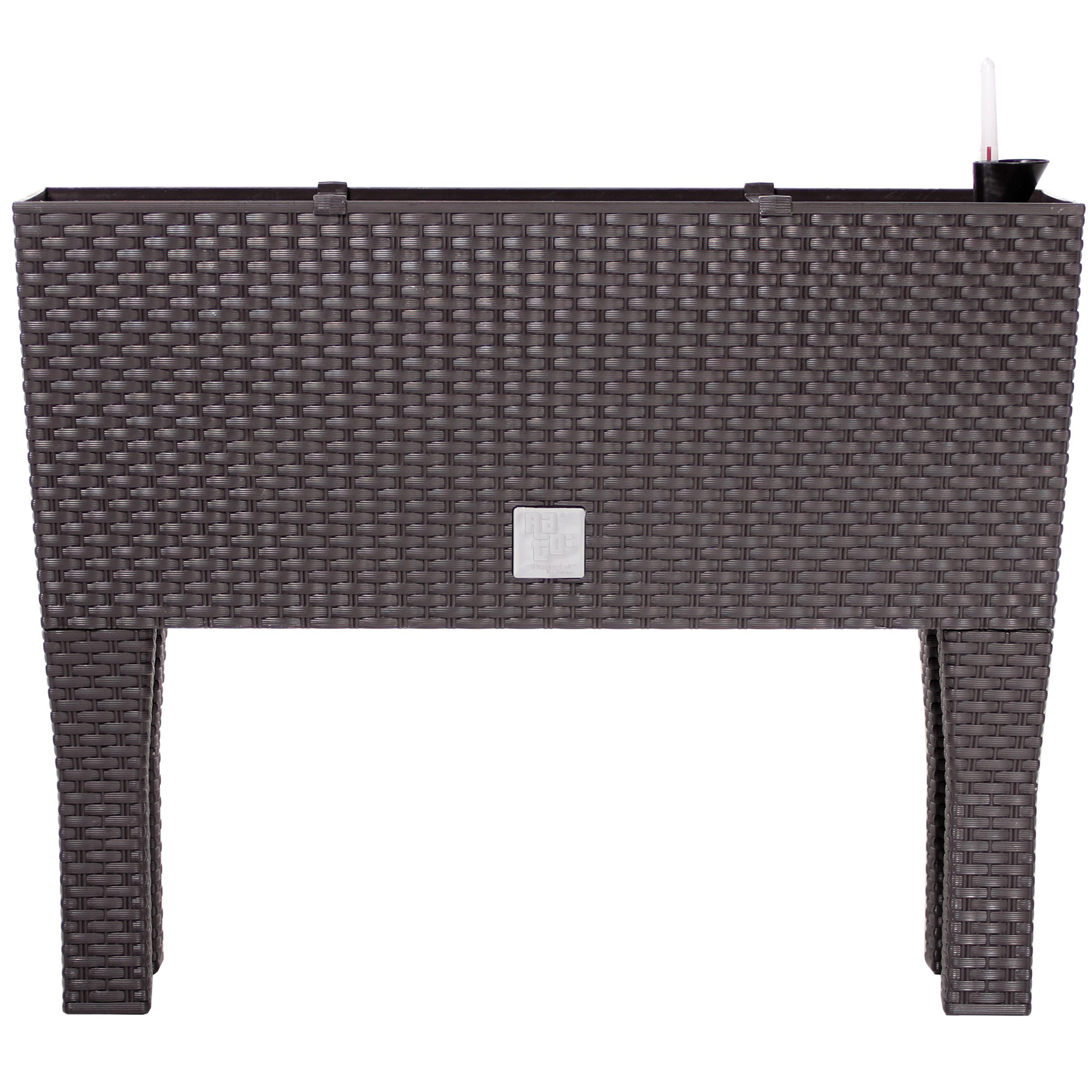 Stilvolle Blumenkästen mit Füßen in zeitlos schöner Rattan-Optik aus hochwertigem und sehr strapazierfähigem Kunststoff (Polypropylen). Mit dem durchdachten Bewässerungssystem ziehen sich die Blumen immer soviel Wasser, wie sie gerade benötigen. Auch im Hochsommer oder wenn Sie einmal im Urlaub sind, werden Ihre Blumen durch das vorhandene Wasser-Reservoir bestens vor einem Austrocknen geschützt. Der Bewässerungseinsatz wird am Boden des Blumenkastens eingesetzt, so bekommen ihre Pflanzen nie nasse Füße und sind dennoch optimal mit Wasser versorgt. Der Pflanzkasten ist aus äußerst robustem Material und UV-beständig, widerstandsfähig gegen Frost, Regen und Sonnenlicht, die XL Variante hat ein Fassungsvermögen von 72 Liter. Sie werden aufgrund der Qualität und des Designs viele Jahre Freude an diesen dekorativen Blumenkästen haben. Ein schicker Blickfang im Garten, auf Terrasse oder in Eingangsbereichen.