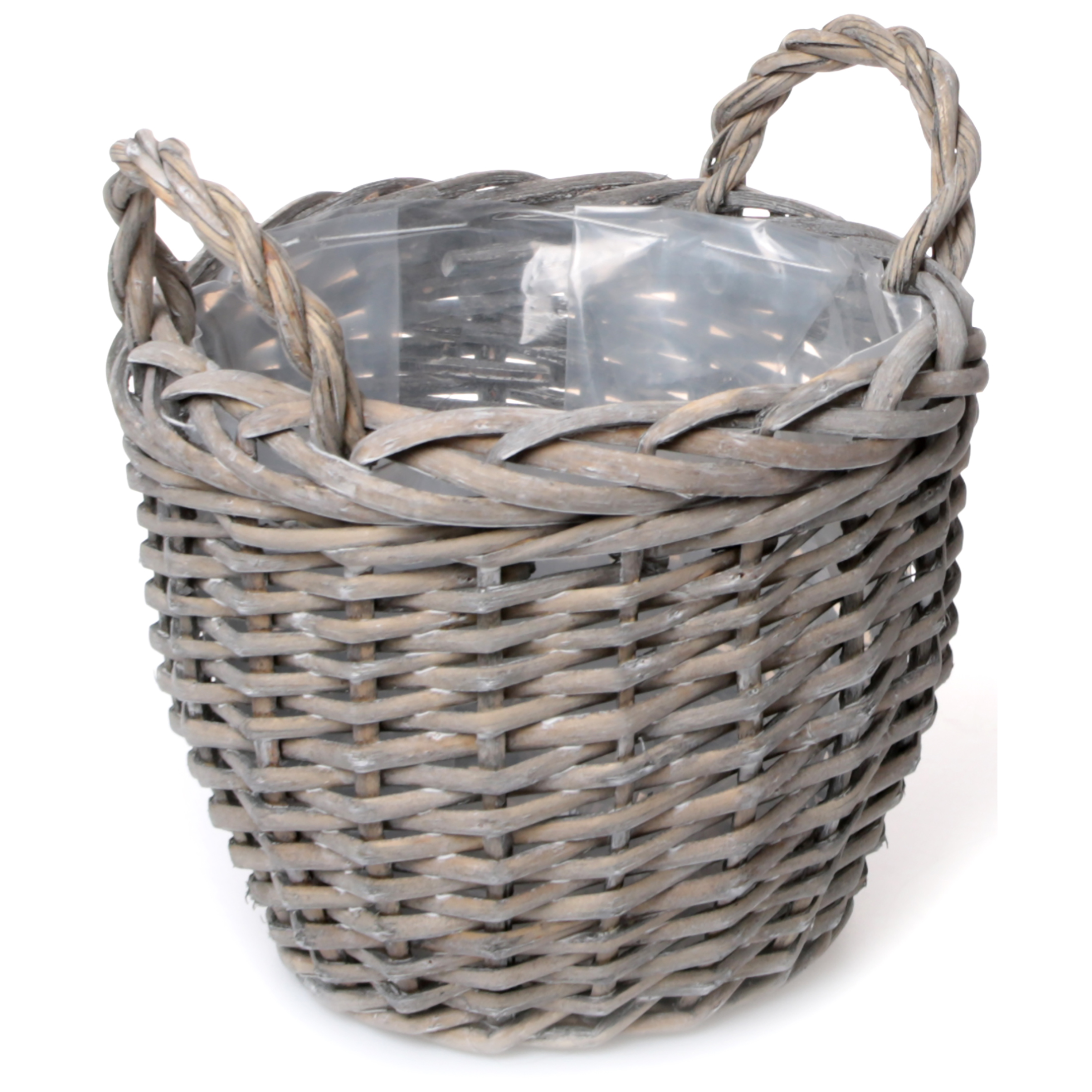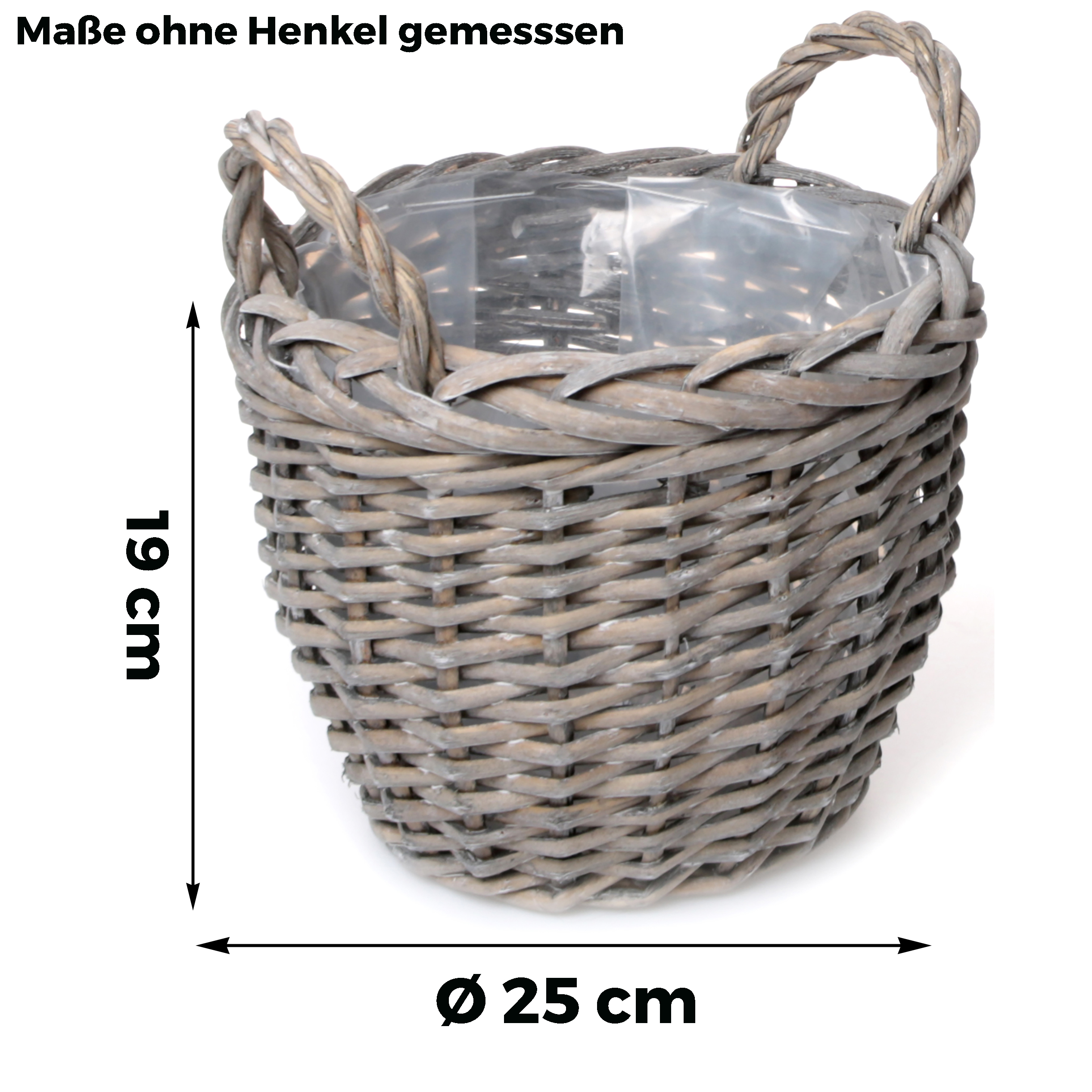 Pflanzkorb aus Weide mit Henkel und Innenfolie - H 16/19/22 cm (3 Größen)